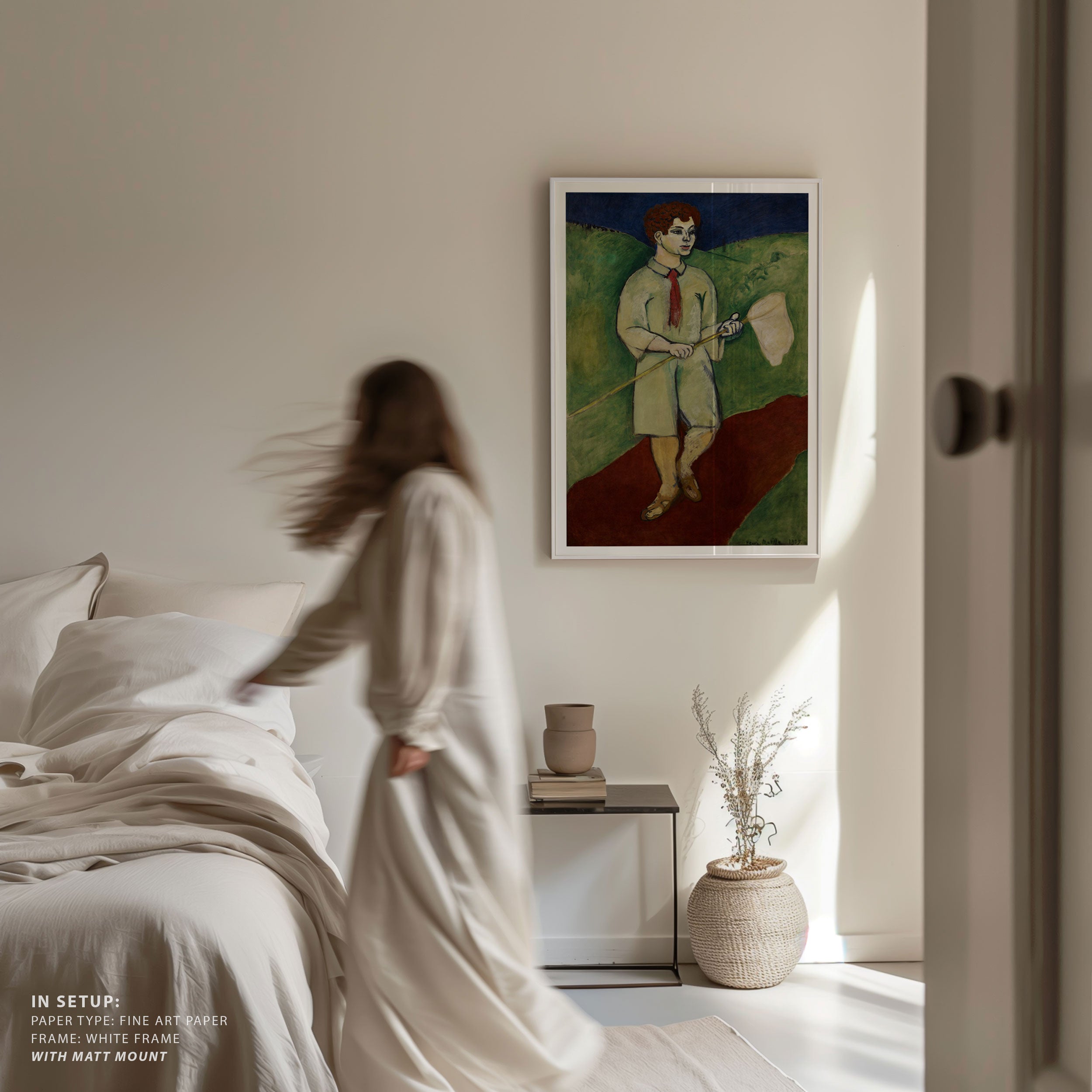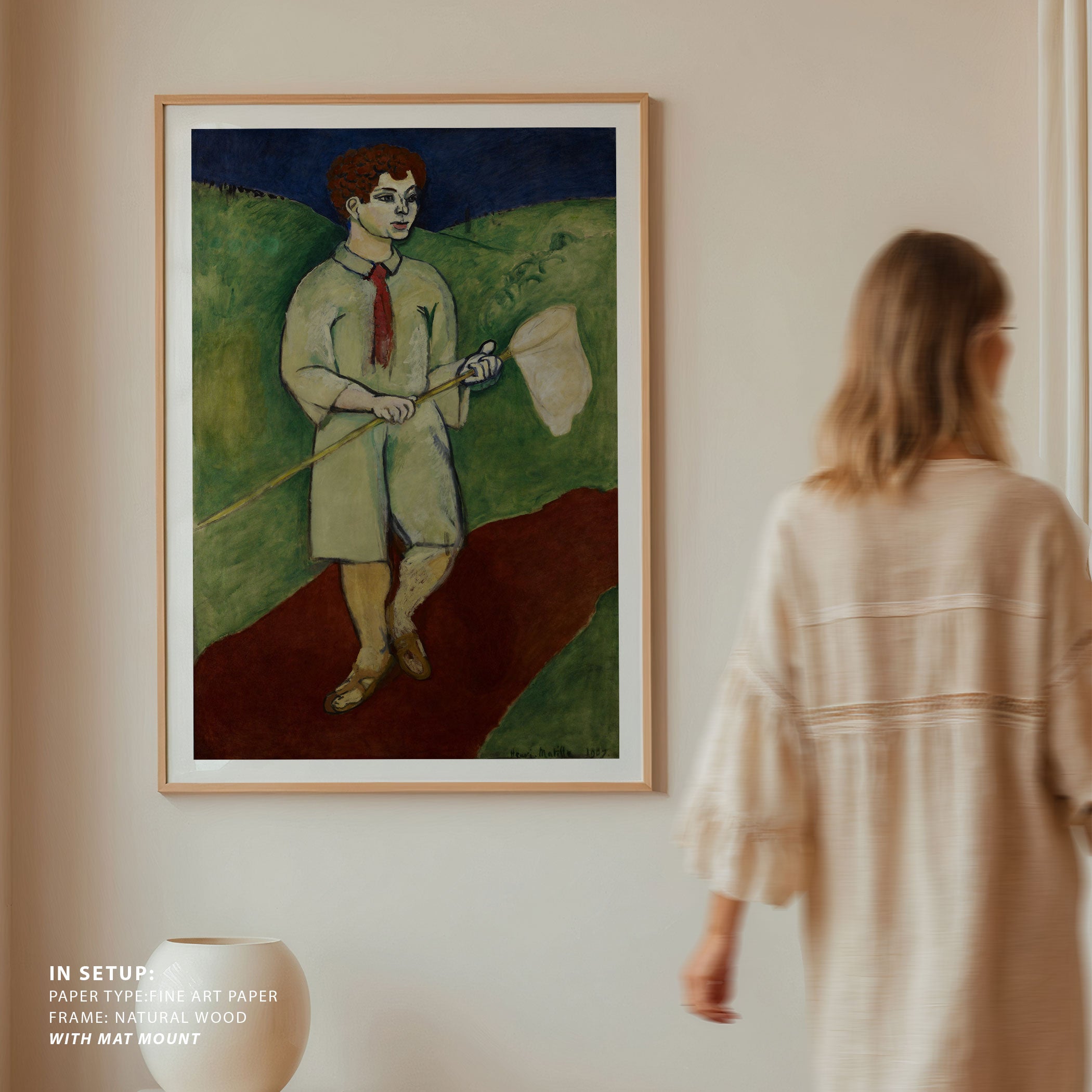 Bring elegance and harmony into your space with this beautiful artwork, Boy with Butterfly Net 1907, from our Henri Matisse Art collection. This piece reveals a quiet yet compelling interplay of deep tones, soft contours, and expressive brushwork that conveys both intimacy and strength. Its gentle contrasts and inviting atmosphere bring a refined and contemplative touch to any interior, enriching your space with the timeless poetry of this iconic artistic style.