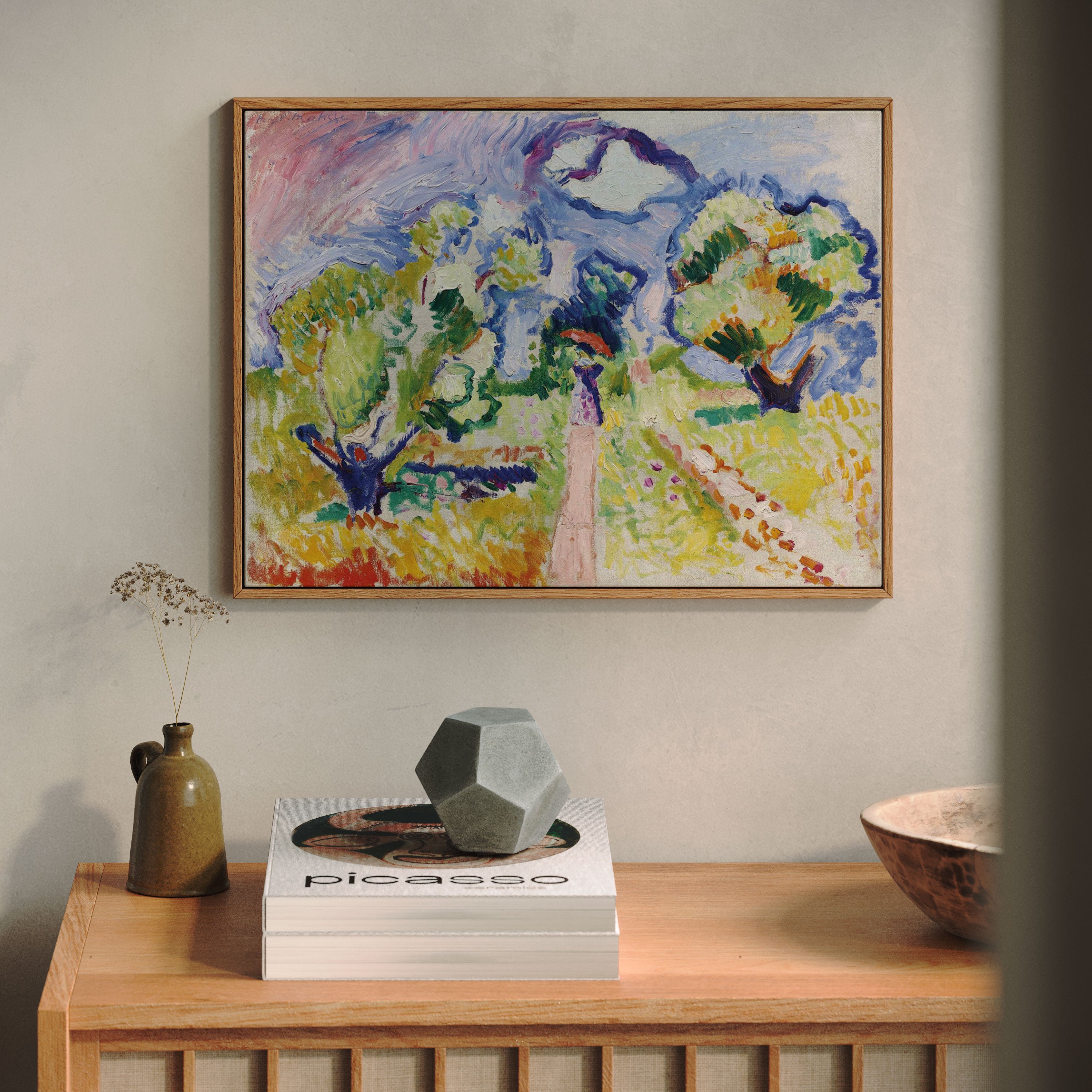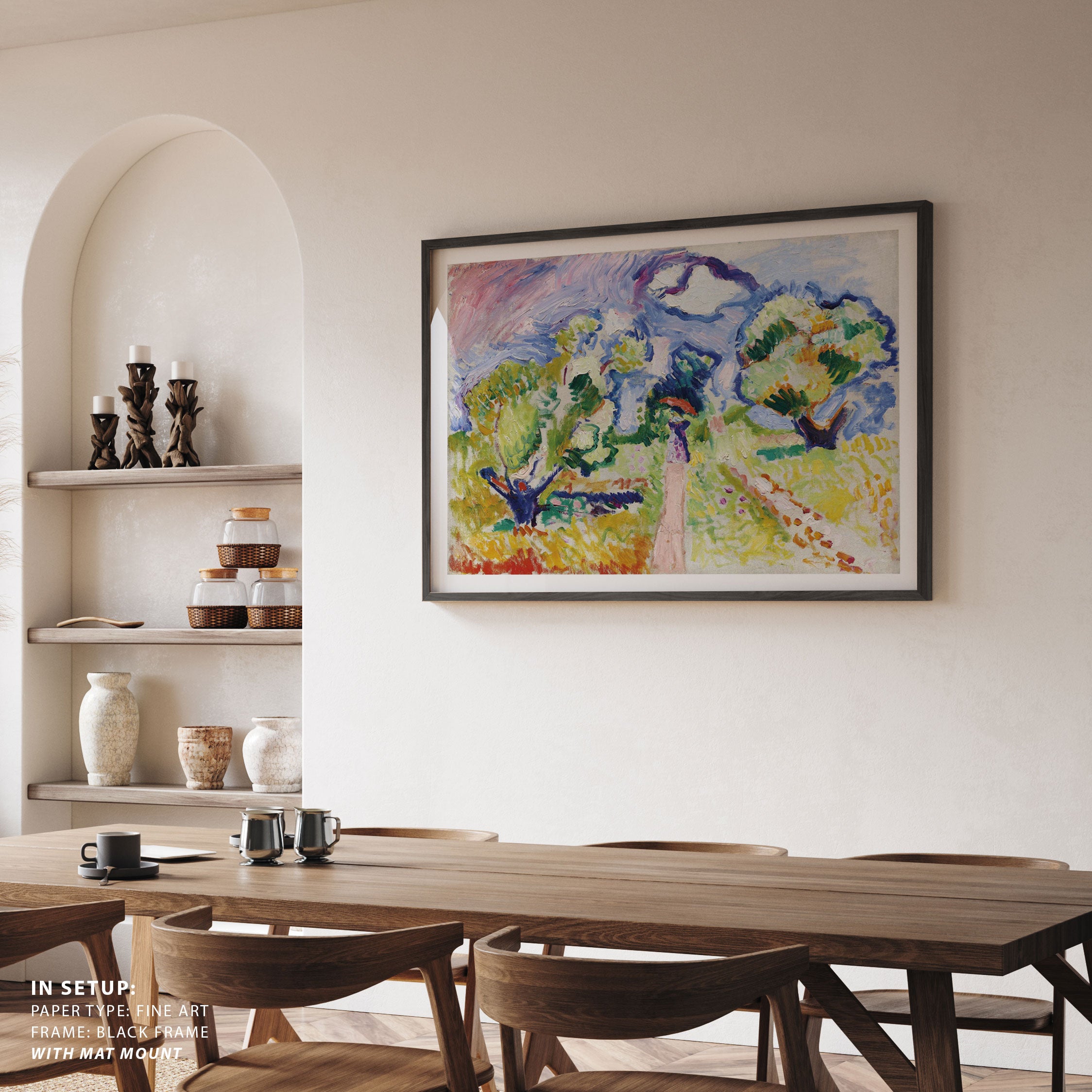 Bring elegance and harmony into your space with this beautiful artwork, The Promenade Des Oliviers 1905, from our Henri Matisse Art collection. This piece reveals a serene interplay of natural light, soft color transitions, and expressive brushstrokes that capture the essence of a fleeting moment. Its gentle textures and luminous atmosphere add a peaceful and sophisticated touch to any interior, enriching your space with the quiet poetry of this iconic artistic style.