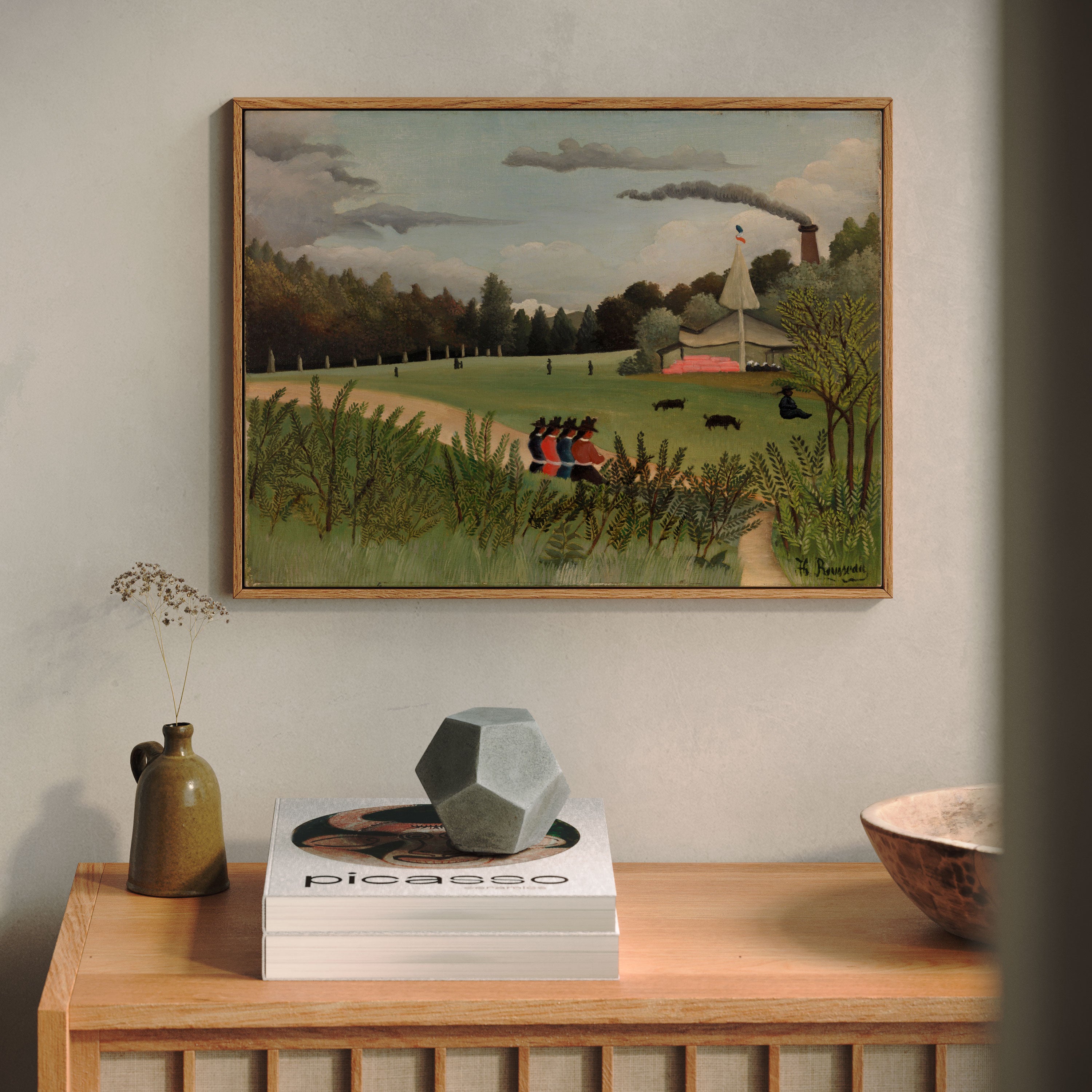 Bring elegance and harmony into your space with this beautiful artwork, Landscape and Four Young Girls (Paysage et Quatre Jjeunes Filles), from our Henri Rousseau Art Prints Collection. This piece reveals a quiet yet compelling interplay of deep tones, soft contours, and expressive brushwork that conveys both intimacy and strength. Subtle painting details, classic art textures, and refined color layering enhance its timeless appeal. Its gentle contrasts and inviting atmosphere bring a refined and contemplative touch to any interior, enriching your space with the timeless poetry of this iconic artistic style.
