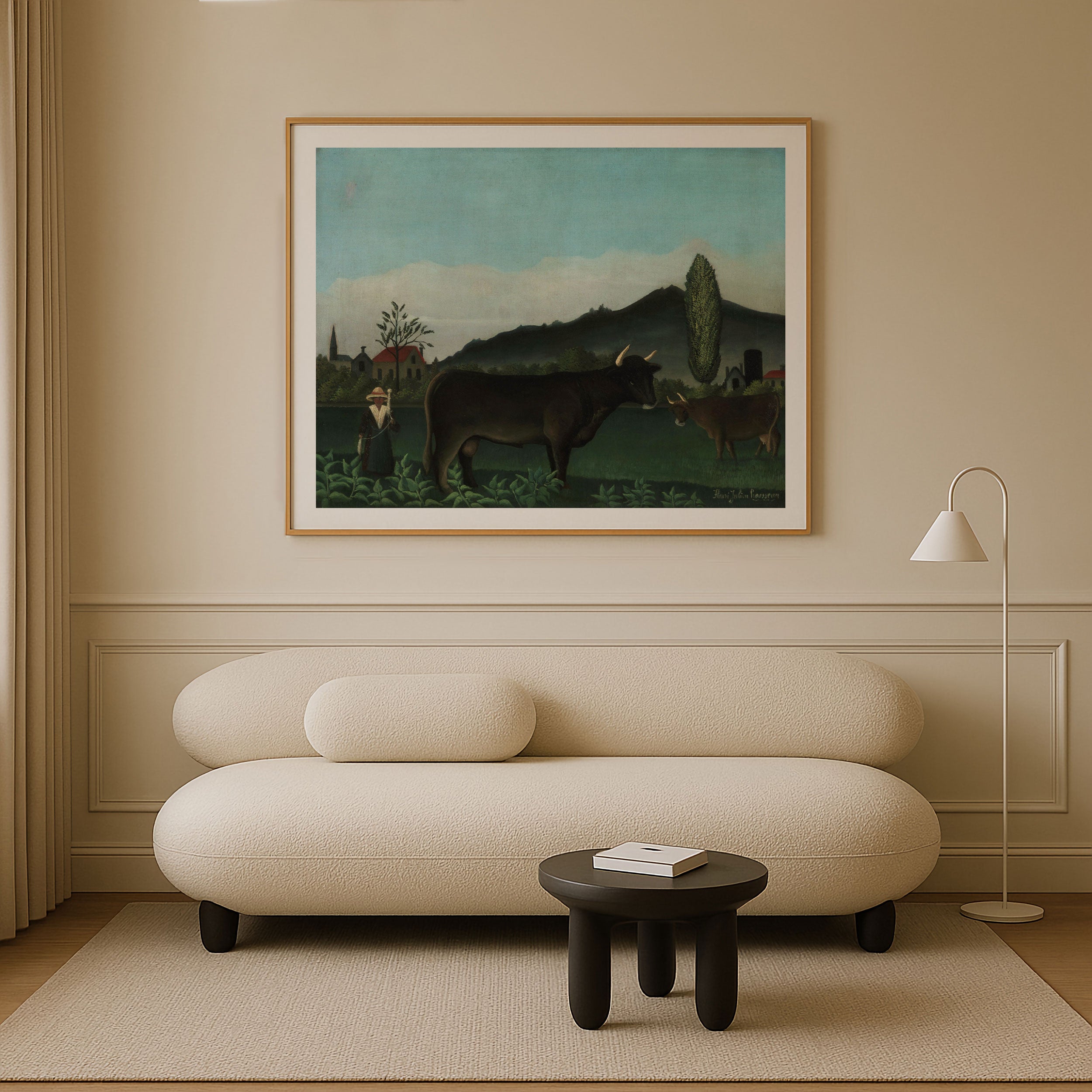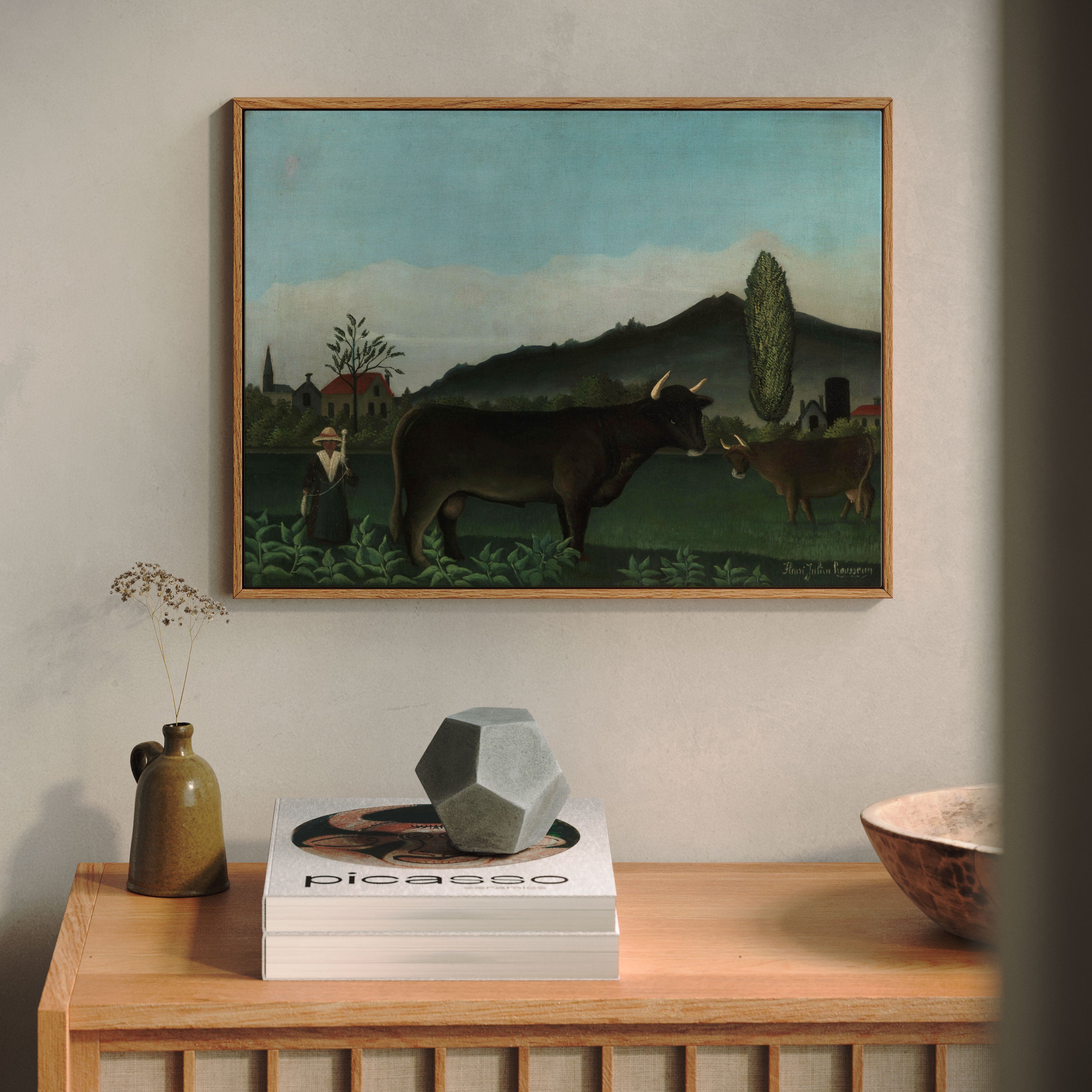 Bring elegance and harmony into your space with this beautiful artwork, Landscape with Cattle, 1895-1900, from our Henri Rousseau Art Prints Collection. This piece reveals a quiet yet compelling interplay of deep tones, soft contours, and expressive brushwork that conveys both intimacy and strength. Subtle painting details, classic art textures, and refined color layering enhance its timeless appeal. Its gentle contrasts and inviting atmosphere bring a refined and contemplative touch to any interior, enriching your space with the timeless poetry of this iconic artistic style.