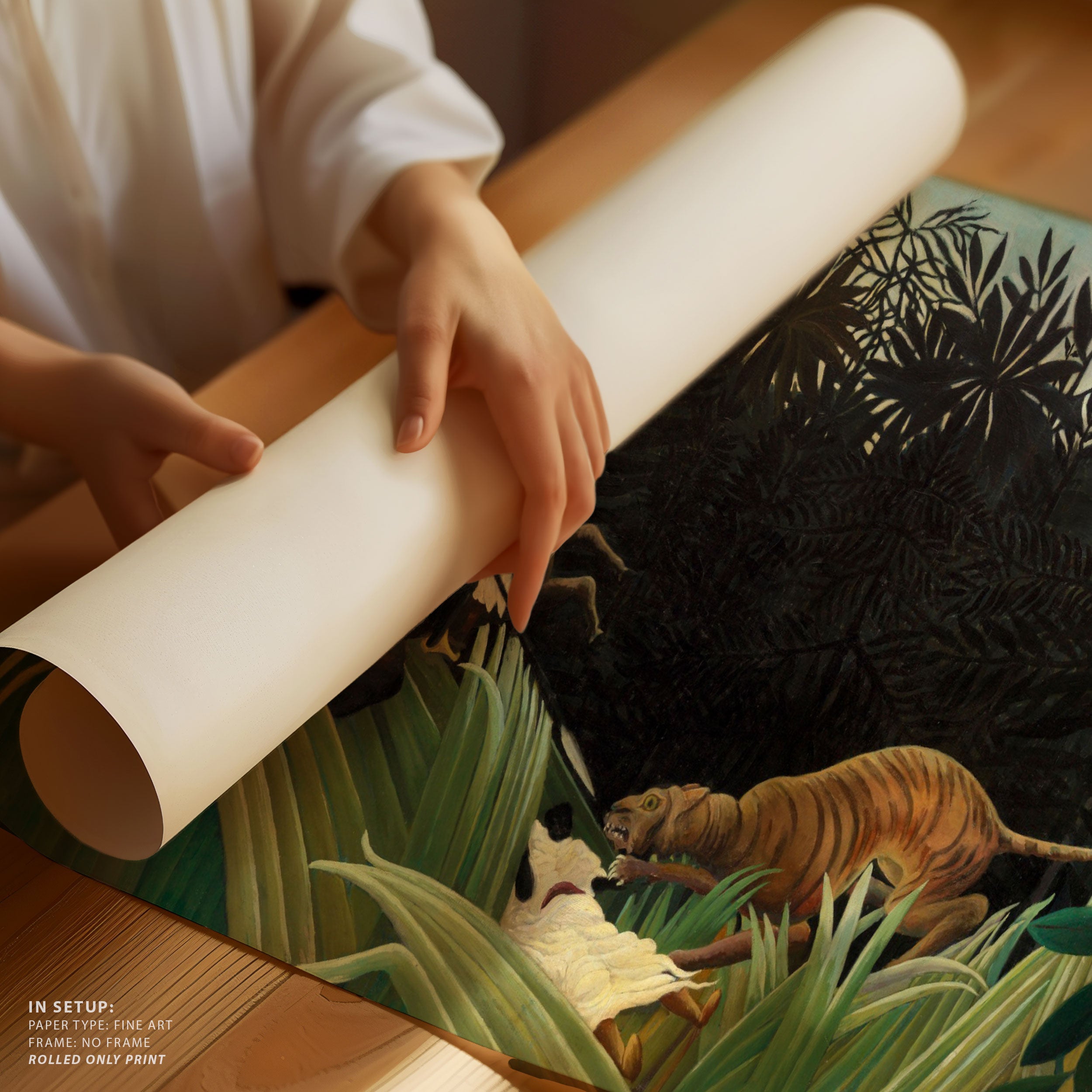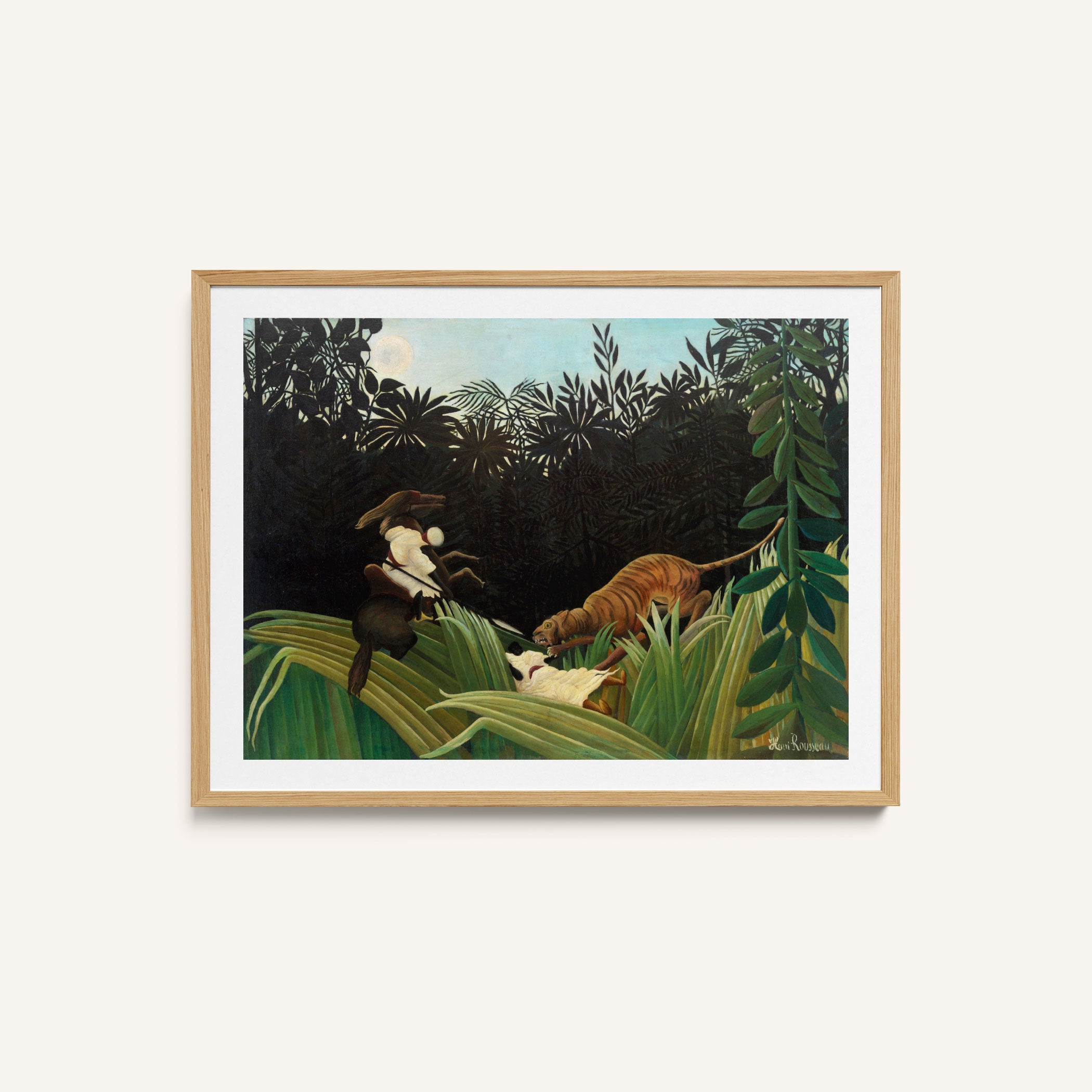 Bring elegance and harmony into your space with this beautiful artwork, Scouts Attacked by a Tiger, from our Henri Rousseau Art Prints Collection. This piece reveals a quiet yet compelling interplay of deep tones, soft contours, and expressive brushwork that conveys both intimacy and strength. Subtle painting details, classic art textures, and refined color layering enhance its timeless appeal. Its gentle contrasts and inviting atmosphere bring a refined and contemplative touch to any interior, enriching your space with the timeless poetry of this iconic artistic style.
