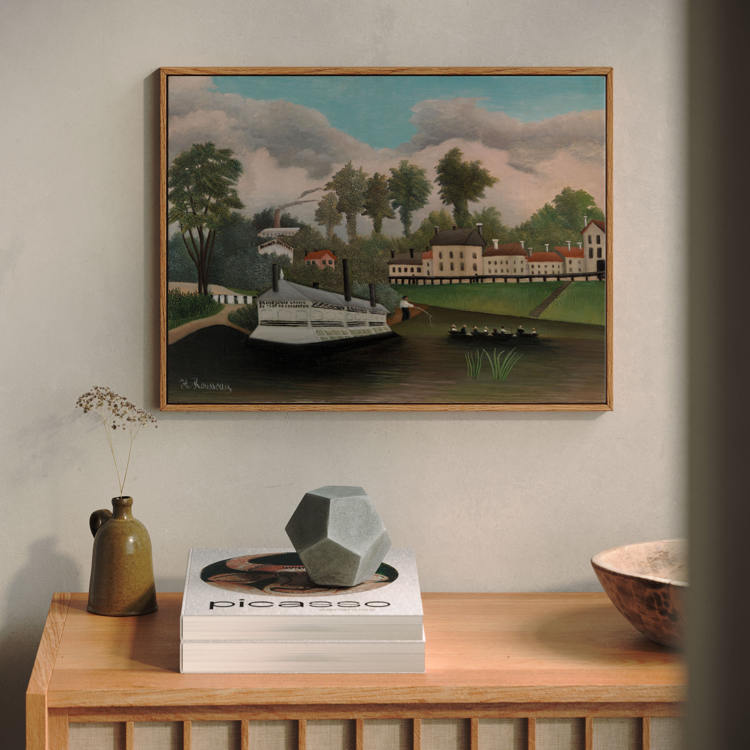 Bring elegance and harmony into your space with this beautiful artwork, The Laundry Boat of Charenton Bridge, from our Henri Rousseau Art Prints Collection. This piece reveals a quiet yet compelling interplay of deep tones, soft contours, and expressive brushwork that conveys both intimacy and strength. Subtle painting details, classic art textures, and refined color layering enhance its timeless appeal. Its gentle contrasts and inviting atmosphere bring a refined and contemplative touch to any interior, enriching your space with the timeless poetry of this iconic artistic style.