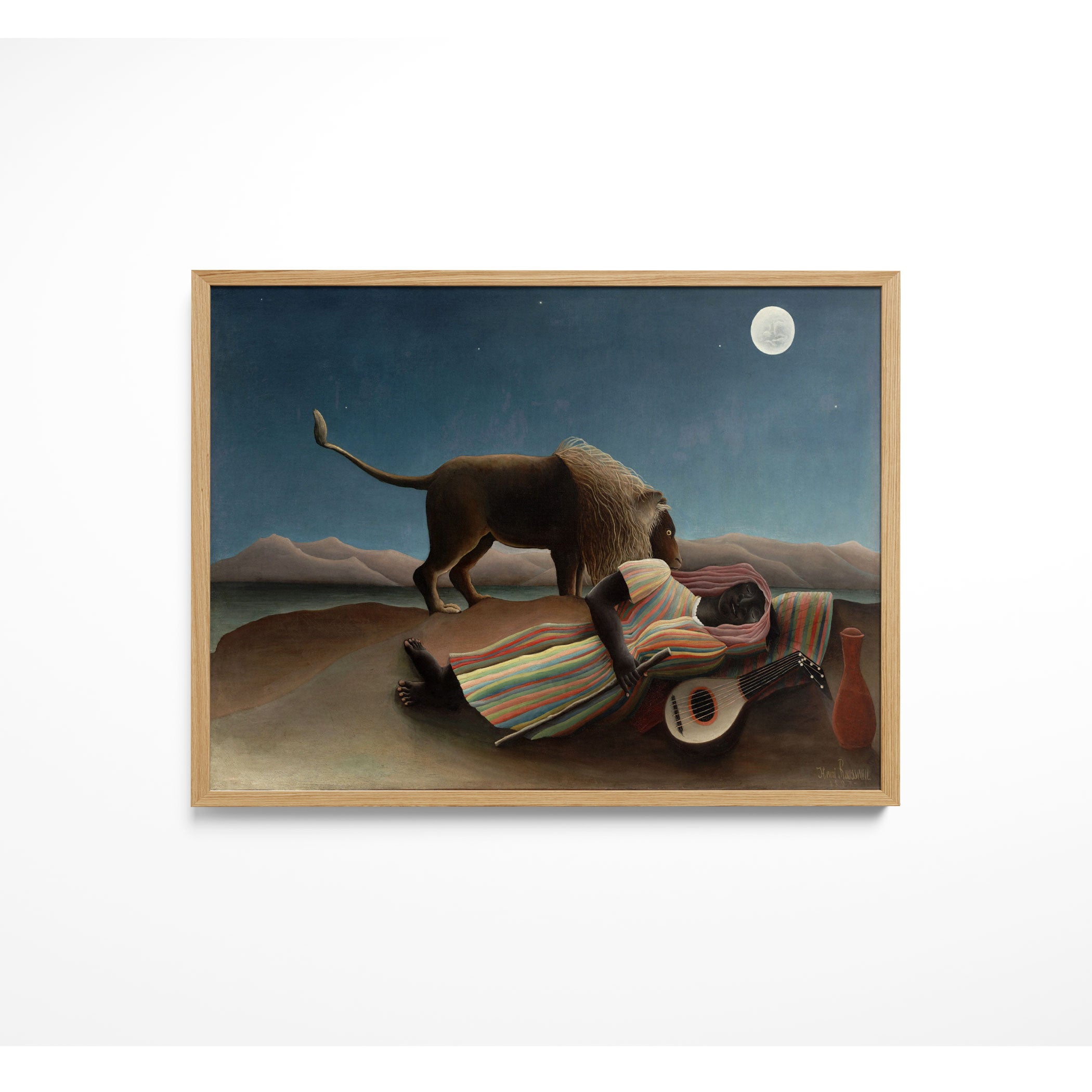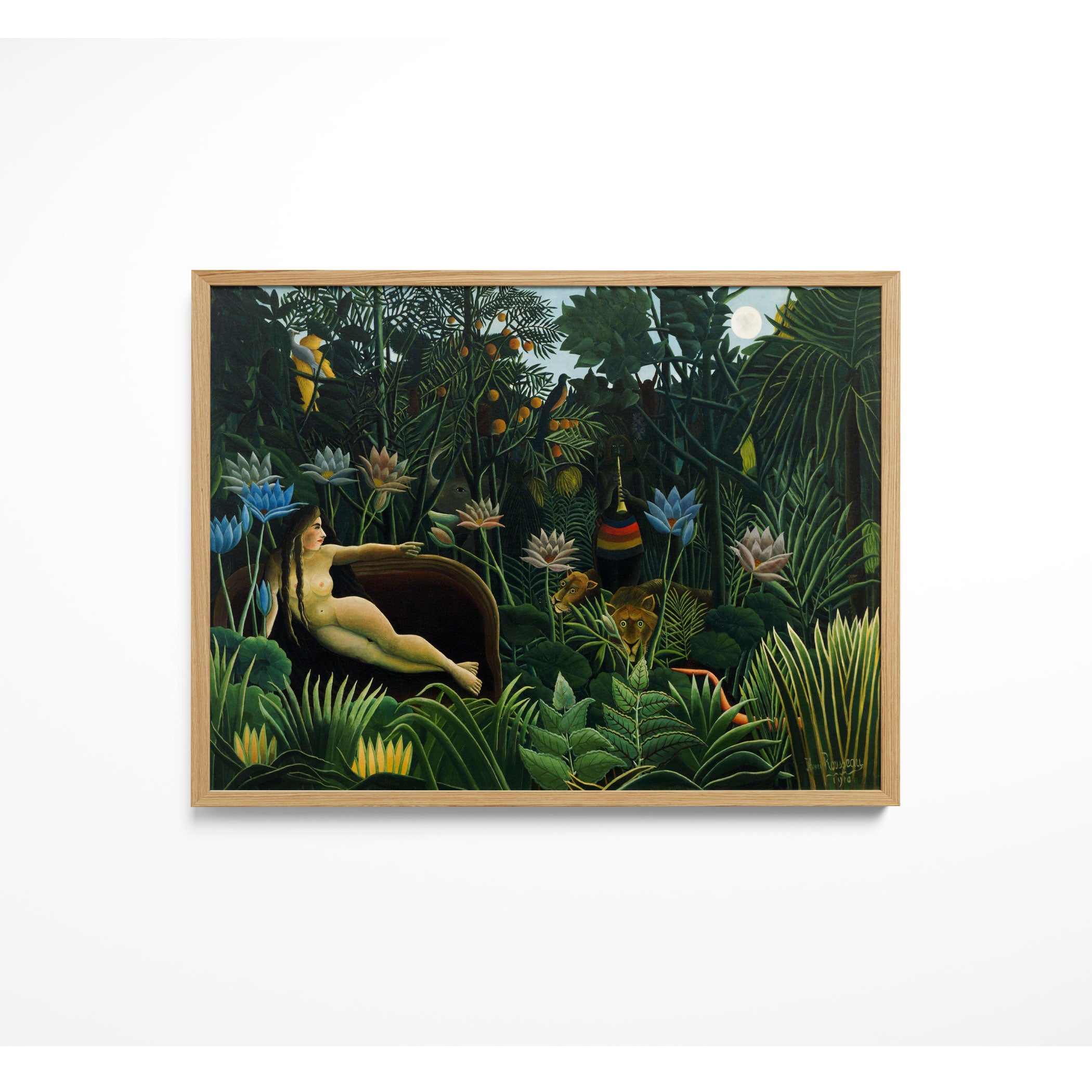 Rousseau’s art is celebrated for its imaginative, dreamlike quality, vivid colours, and intricate detail, making each print a visually captivating experience.