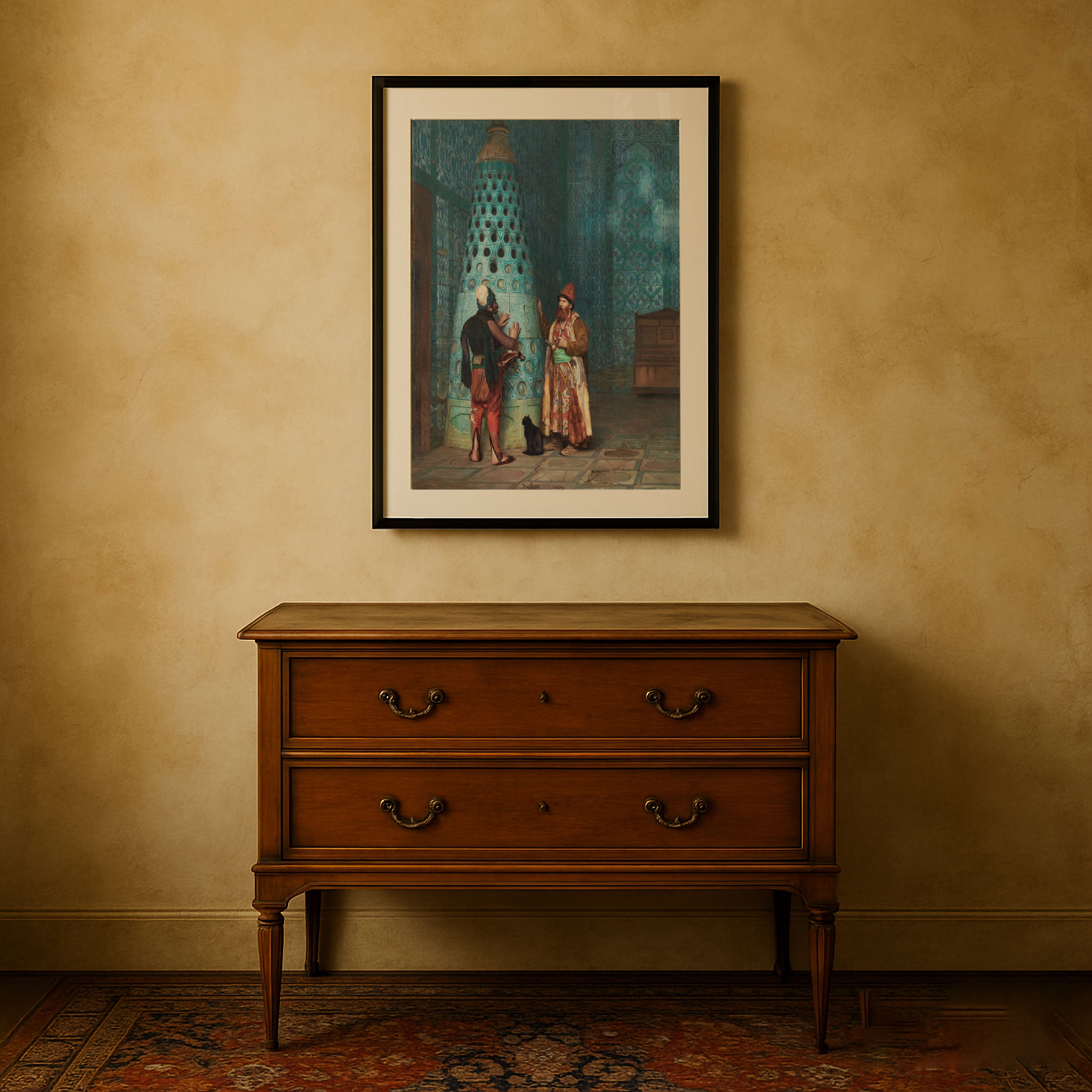 Bring elegance and harmony into your space with this beautiful artwork, A Sultan at Prayer, from our Jean Leone Gerome Art Prints Collection. This piece reveals a quiet yet compelling interplay of deep tones, soft contours, and expressive brushwork that conveys both intimacy and strength. Subtle painting details, classic art textures, and refined color layering enhance its timeless appeal. Its gentle contrasts and inviting atmosphere bring a refined and contemplative touch to any interior, enriching your space with the timeless poetry of this iconic artistic style.