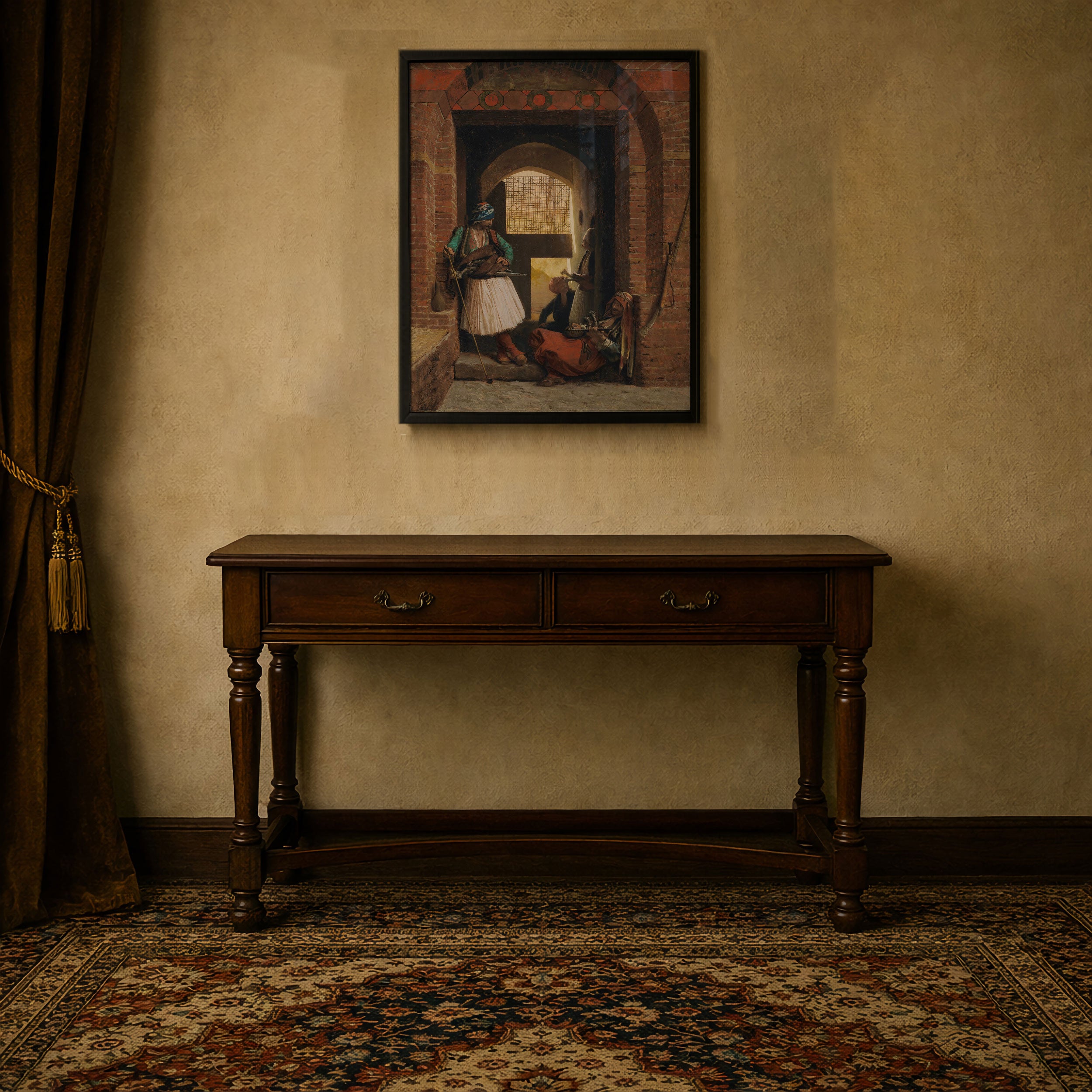 Bring elegance and harmony into your space with this beautiful artwork, Corps De Garde, from our Jean Leone Gerome Art Prints Collection. This piece reveals a quiet yet compelling interplay of deep tones, soft contours, and expressive brushwork that conveys both intimacy and strength. Subtle painting details, classic art textures, and refined color layering enhance its timeless appeal. Its gentle contrasts and inviting atmosphere bring a refined and contemplative touch to any interior, enriching your space with the timeless poetry of this iconic artistic style.