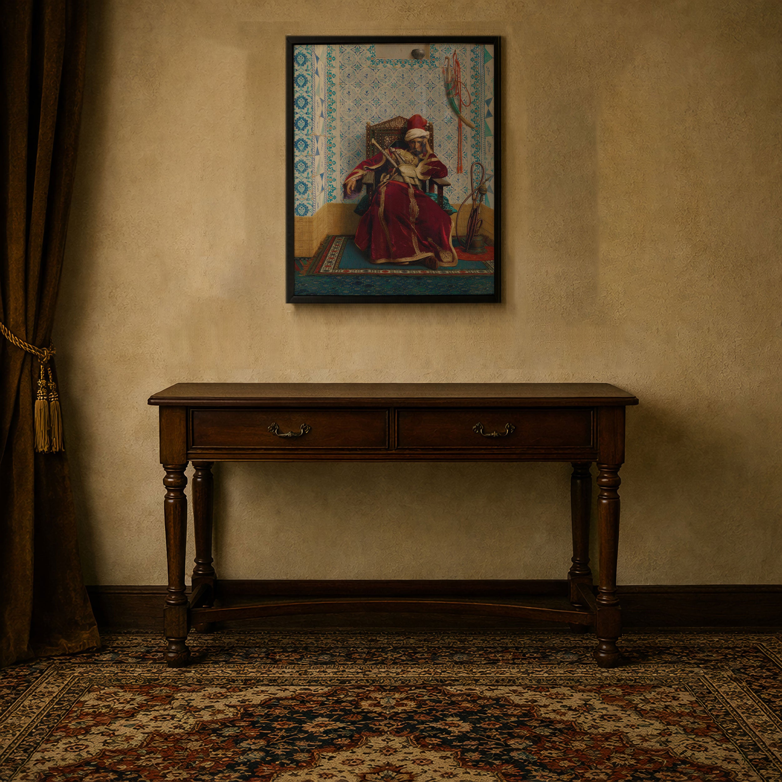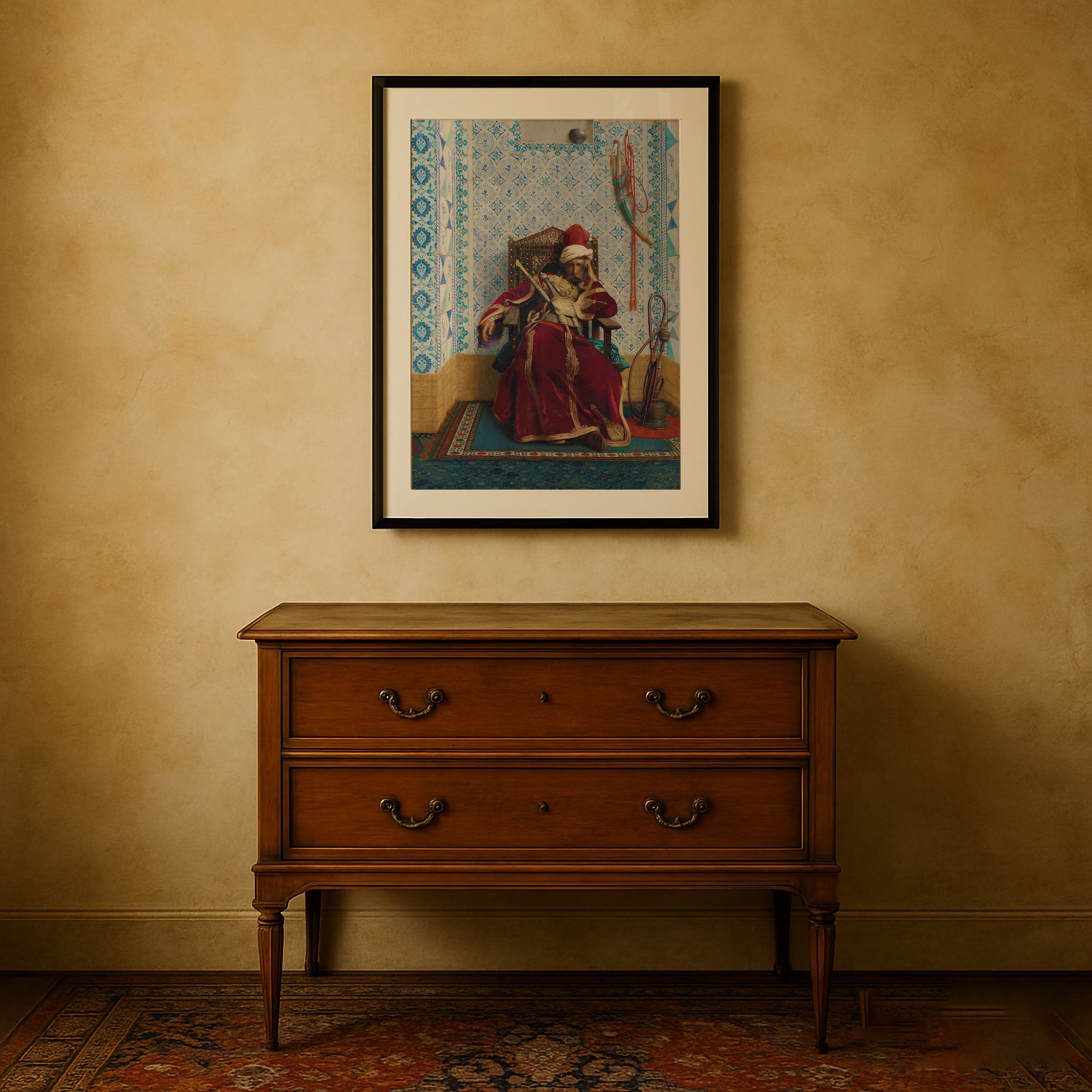 Bring elegance and harmony into your space with this beautiful artwork, Markos Botsaris, from our Jean Leone Gerome Art Prints Collection. This piece reveals a quiet yet compelling interplay of deep tones, soft contours, and expressive brushwork that conveys both intimacy and strength. Subtle painting details, classic art textures, and refined color layering enhance its timeless appeal. Its gentle contrasts and inviting atmosphere bring a refined and contemplative touch to any interior, enriching your space with the timeless poetry of this iconic artistic style.