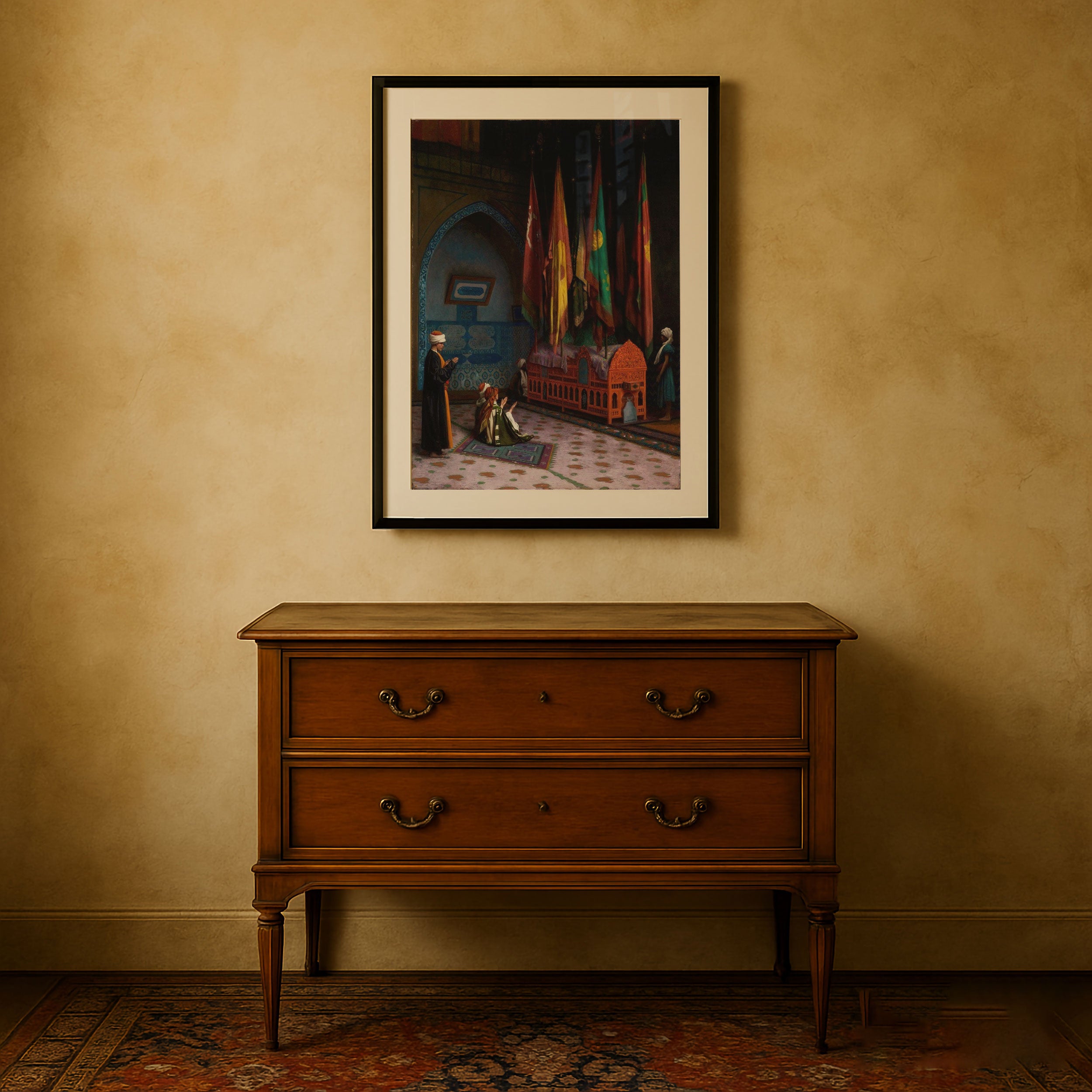 Bring elegance and harmony into your space with this beautiful artwork, Prayer at Shrine, from our Jean Leone Gerome Art Prints Collection. This piece reveals a quiet yet compelling interplay of deep tones, soft contours, and expressive brushwork that conveys both intimacy and strength. Subtle painting details, classic art textures, and refined color layering enhance its timeless appeal. Its gentle contrasts and inviting atmosphere bring a refined and contemplative touch to any interior, enriching your space with the timeless poetry of this iconic artistic style.