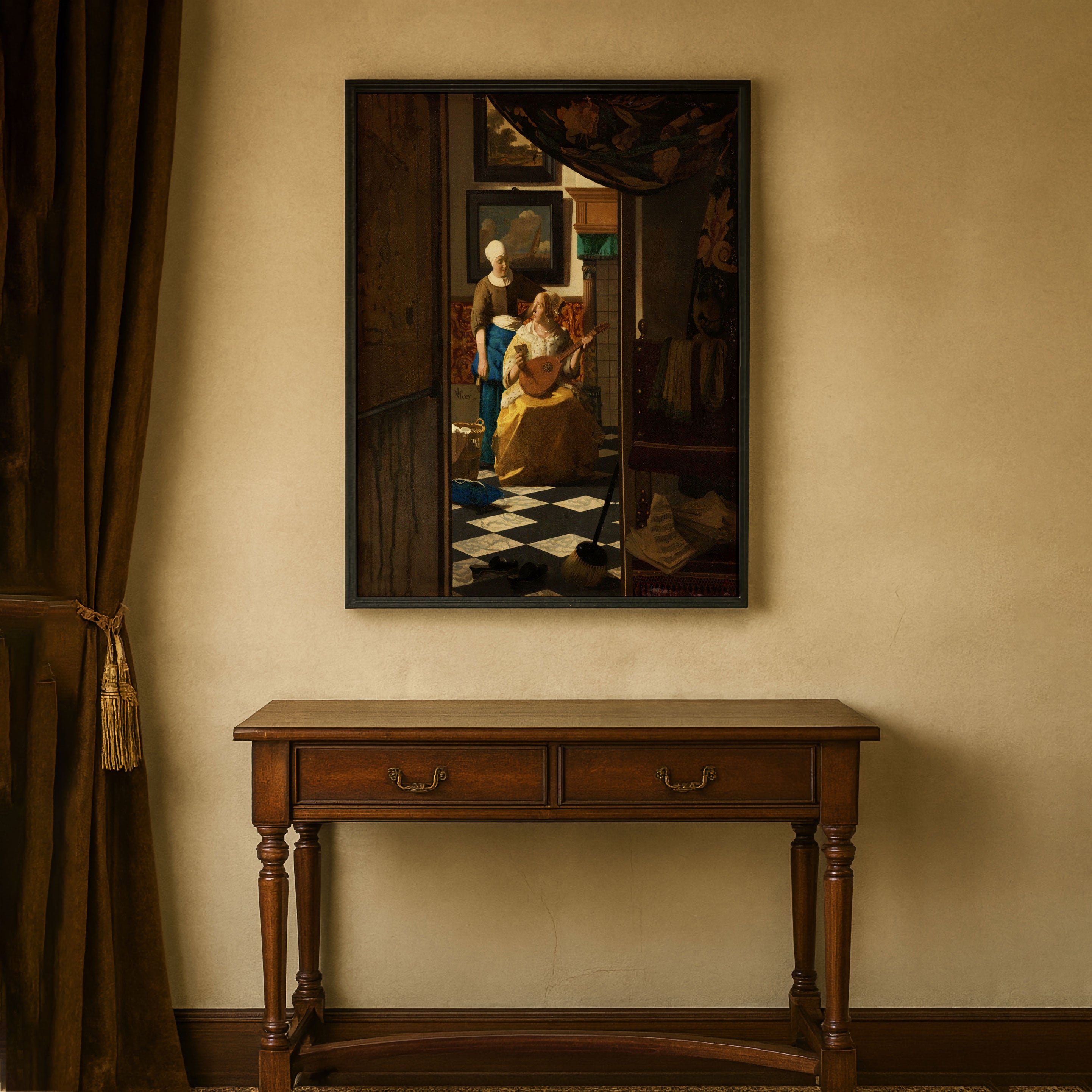 Bring elegance and harmony into your space with this beautiful artwork, De Liefdesbrief, from our Johannes Vermeer Art Prints Collection. This piece reveals a quiet yet compelling interplay of deep tones, soft contours, and expressive brushwork that conveys both intimacy and strength. Subtle painting details, classic art textures, and refined color layering enhance its timeless appeal. Its gentle contrasts and inviting atmosphere bring a refined and contemplative touch to any interior, enriching your space with the timeless poetry of this iconic artistic style.