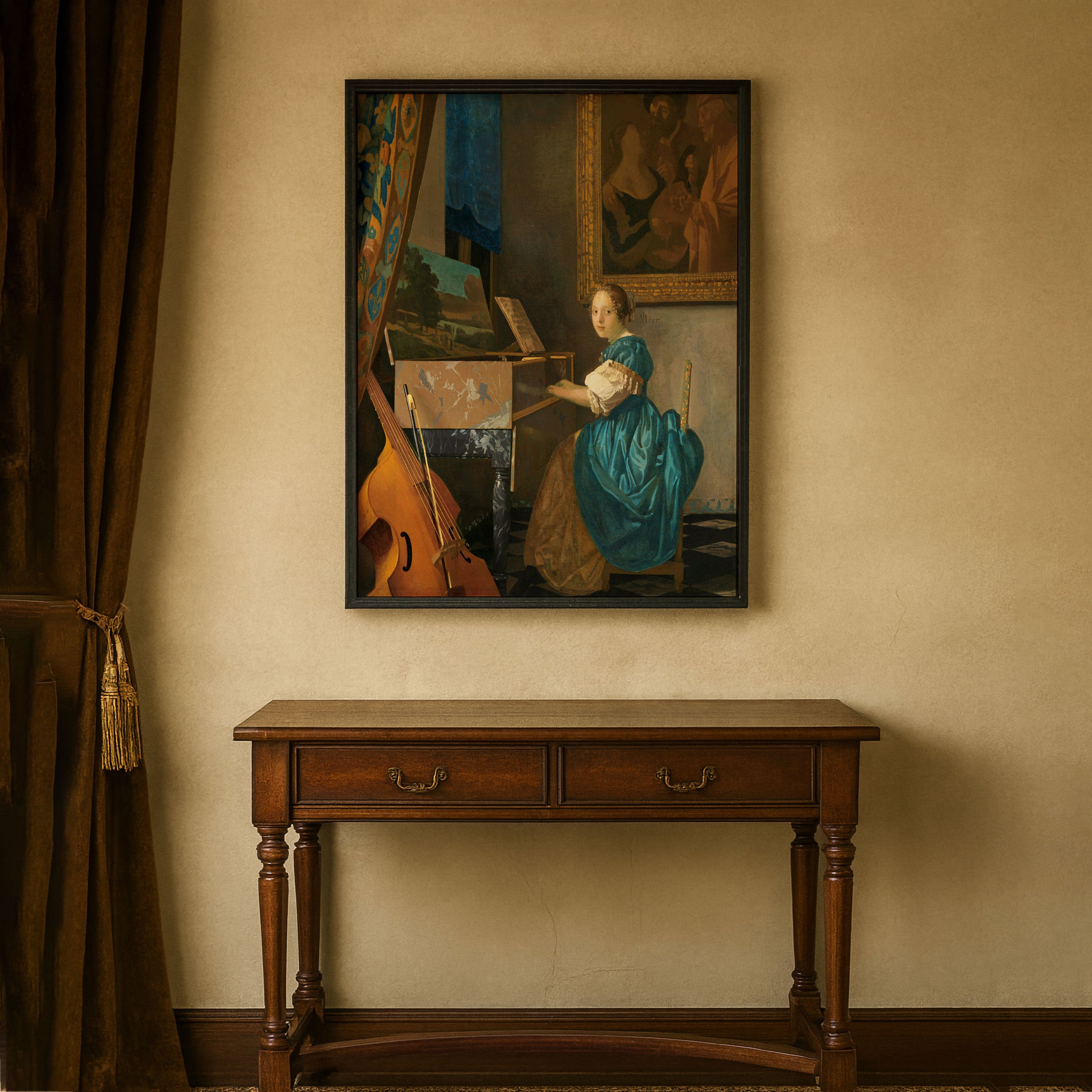 Bring elegance and harmony into your space with this beautiful artwork, Jonge Vrouw Aan Een Virginaal 1670-72, from our Johannes Vermeer Art Prints Collection. This piece reveals a quiet yet compelling interplay of deep tones, soft contours, and expressive brushwork that conveys both intimacy and strength. Subtle painting details, classic art textures, and refined color layering enhance its timeless appeal. Its gentle contrasts and inviting atmosphere bring a refined and contemplative touch to any interior, enriching your space with the timeless poetry of this iconic artistic style.