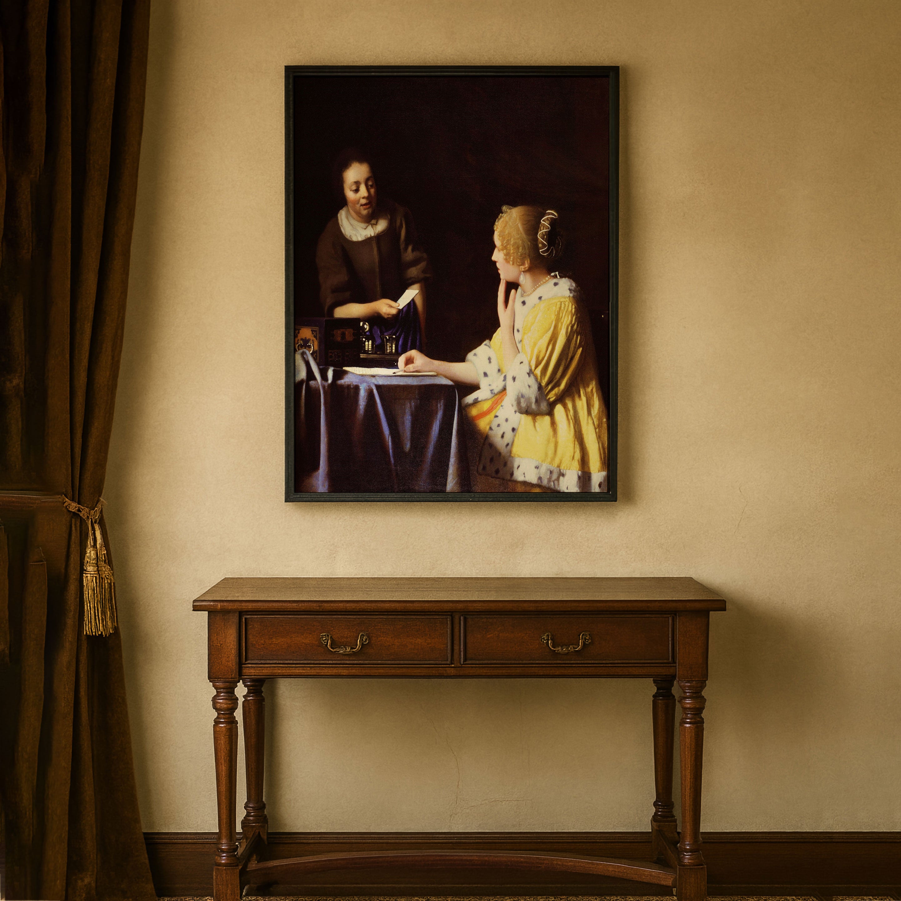 Bring elegance and harmony into your space with this beautiful artwork, Lady Maidservant Holding Letter, from our Johannes Vermeer Art Prints Collection. This piece reveals a quiet yet compelling interplay of deep tones, soft contours, and expressive brushwork that conveys both intimacy and strength. Subtle painting details, classic art textures, and refined color layering enhance its timeless appeal. Its gentle contrasts and inviting atmosphere bring a refined and contemplative touch to any interior, enriching your space with the timeless poetry of this iconic artistic style.