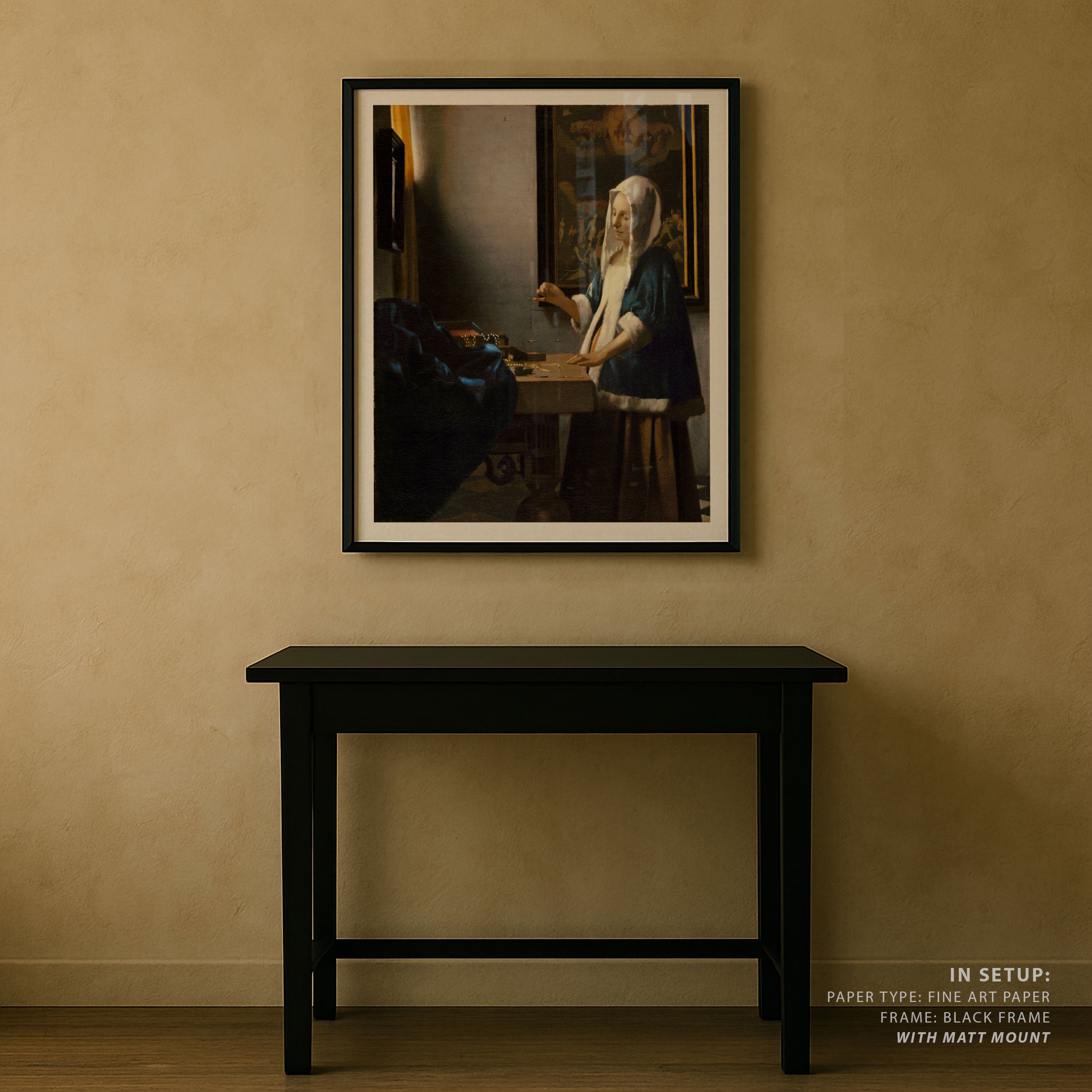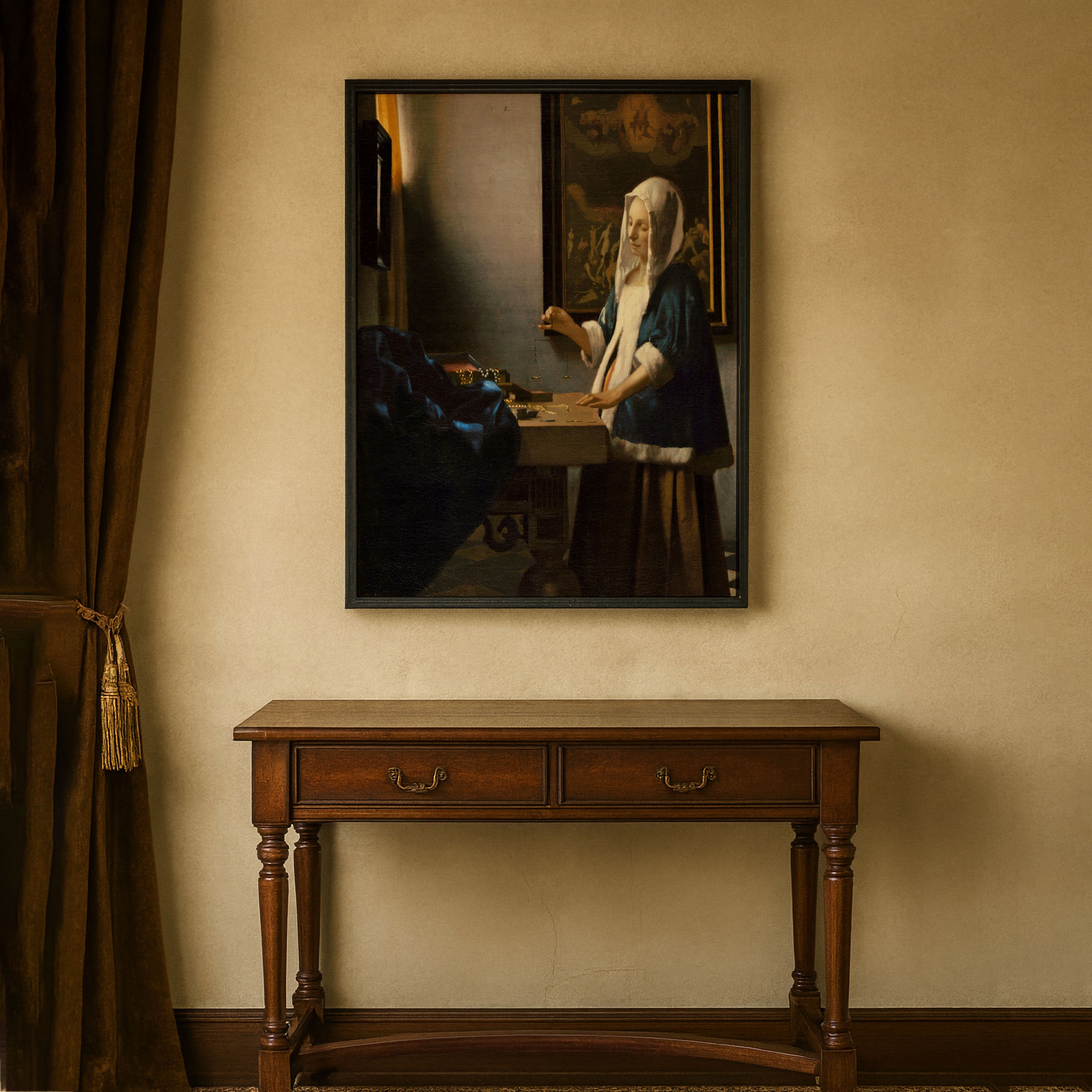 Bring elegance and harmony into your space with this beautiful artwork, Woman Holding a Balance, from our Johannes Vermeer Art Prints Collection. This piece reveals a quiet yet compelling interplay of deep tones, soft contours, and expressive brushwork that conveys both intimacy and strength. Subtle painting details, classic art textures, and refined color layering enhance its timeless appeal. Its gentle contrasts and inviting atmosphere bring a refined and contemplative touch to any interior, enriching your space with the timeless poetry of this iconic artistic style.