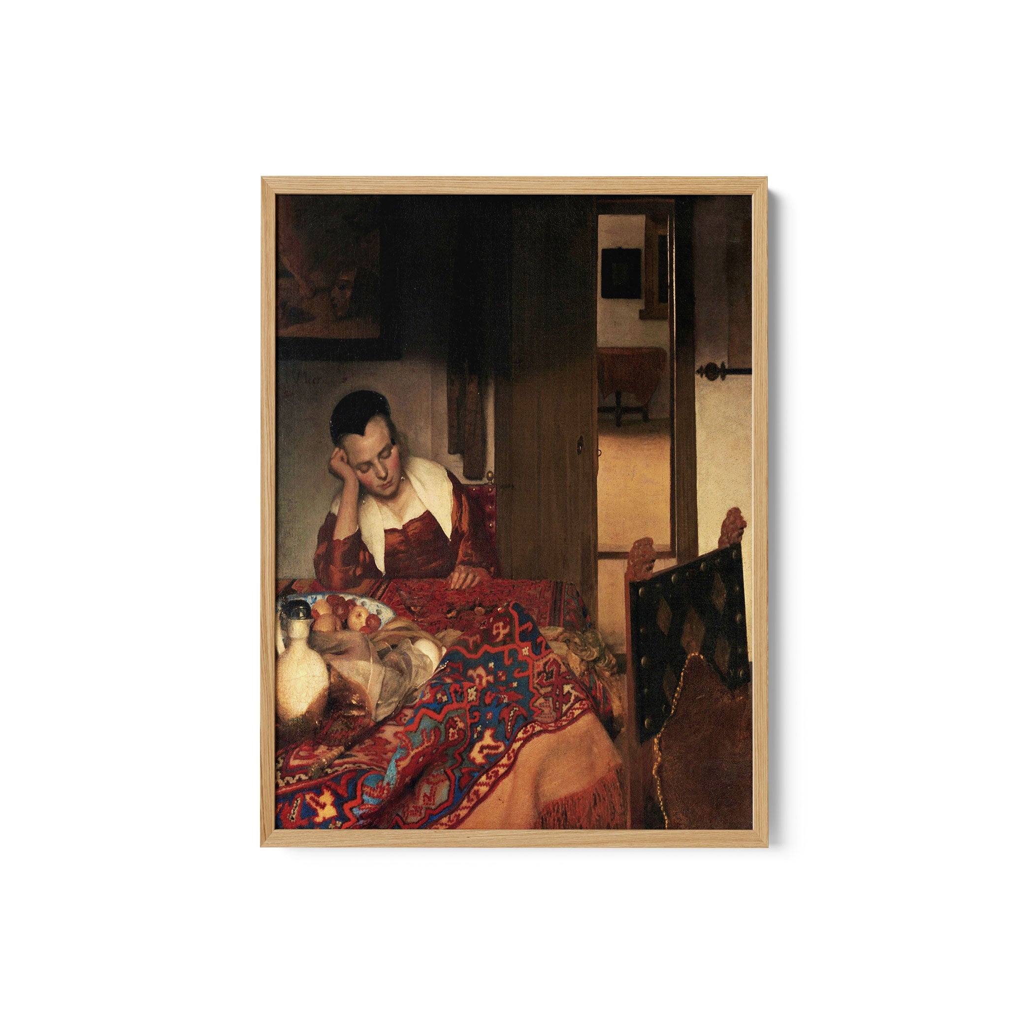 Bring elegance and harmony into your space with this beautiful artwork, Young Women Sleeping, from our Johannes Vermeer Art Prints Collection. This piece reveals a quiet yet compelling interplay of deep tones, soft contours, and expressive brushwork that conveys both intimacy and strength. Subtle painting details, classic art textures, and refined color layering enhance its timeless appeal. Its gentle contrasts and inviting atmosphere bring a refined and contemplative touch to any interior, enriching your space with the timeless poetry of this iconic artistic style.