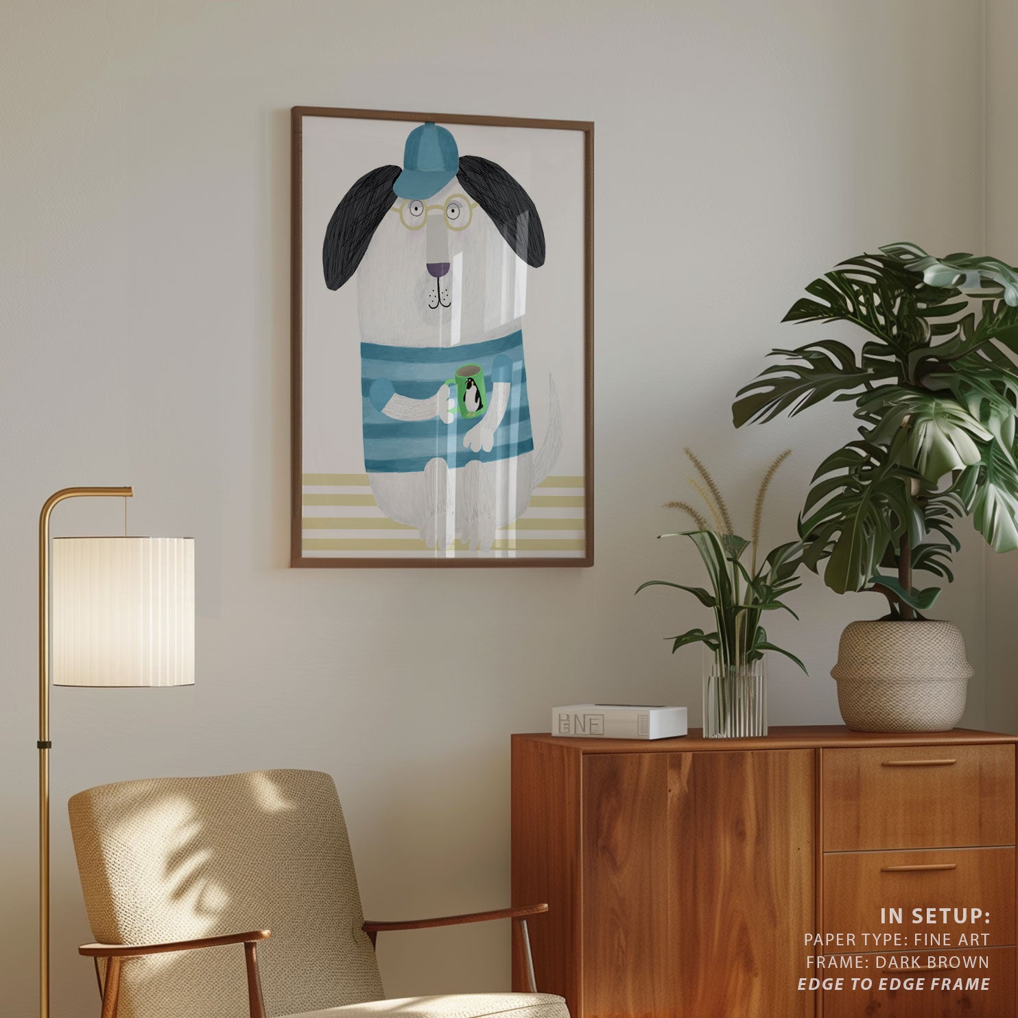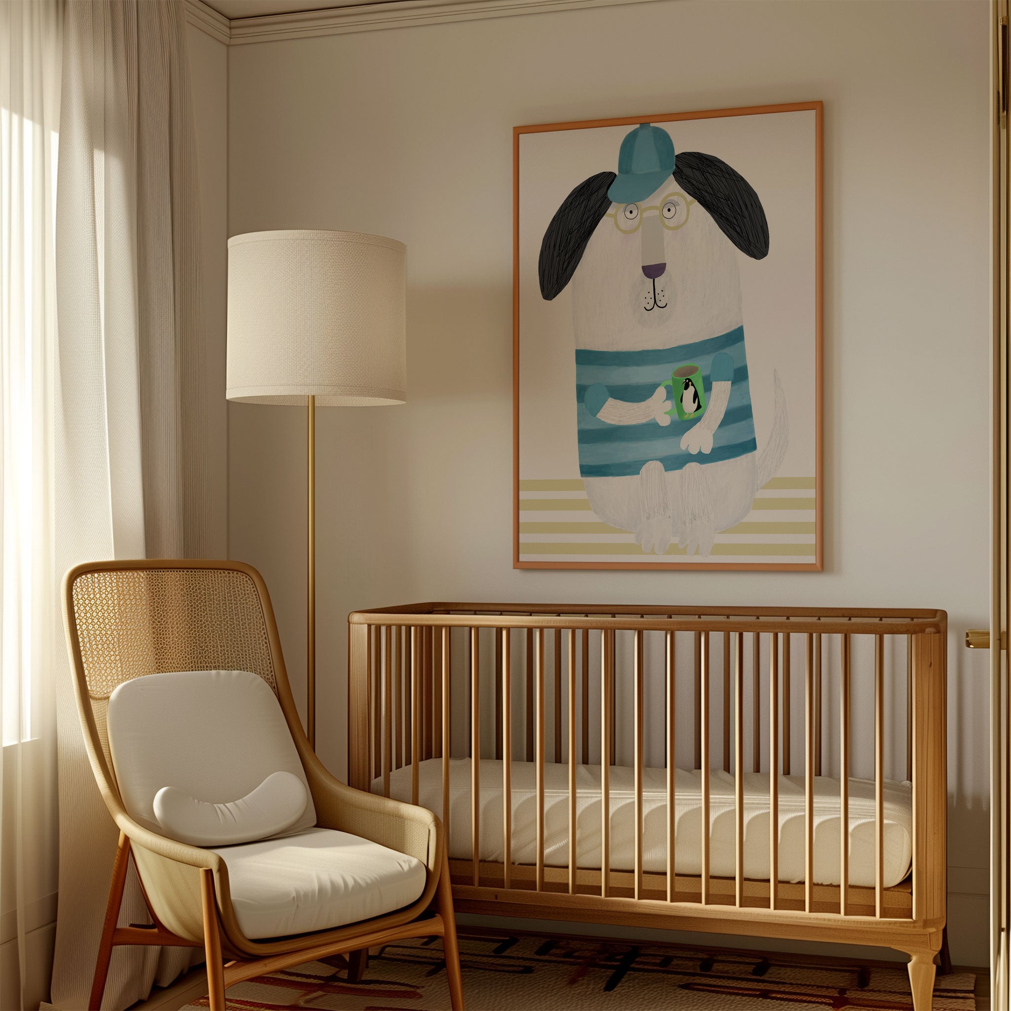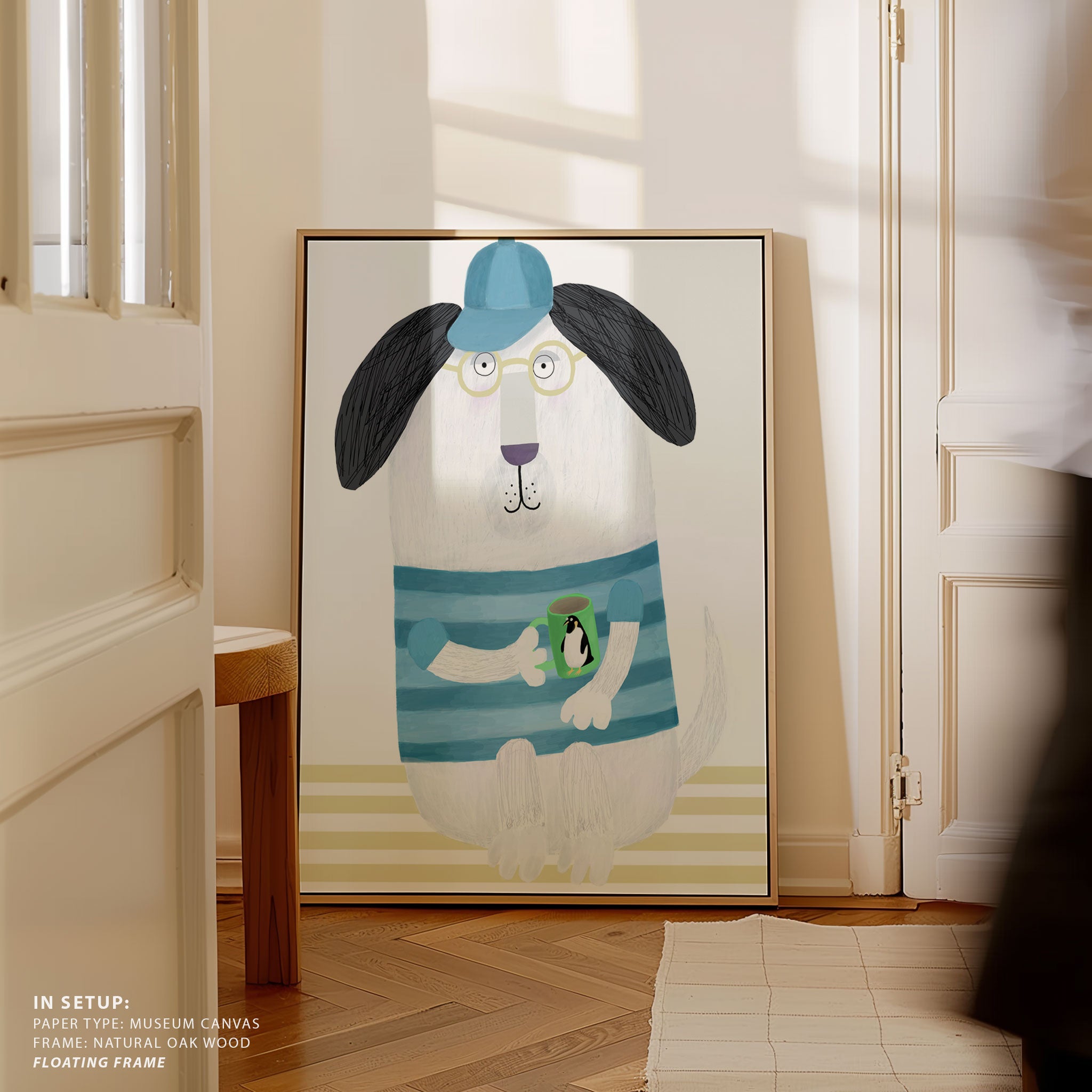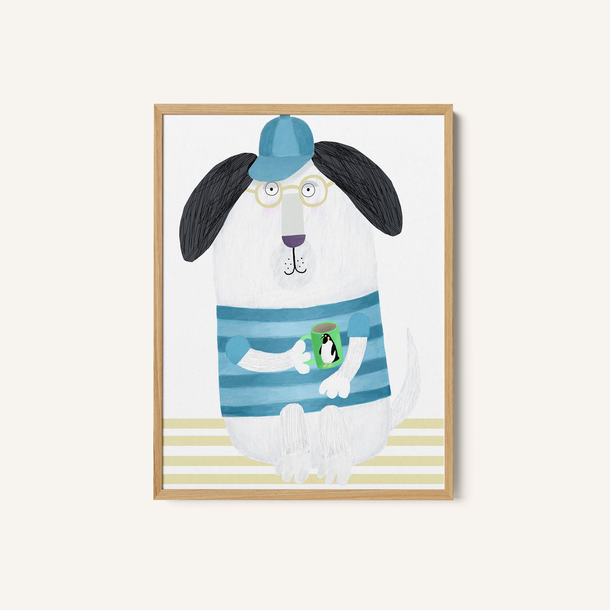Funny Dog with Penguin Mug by Artist Carla Daly