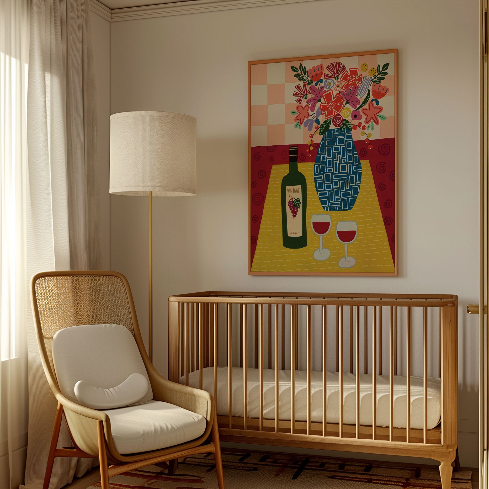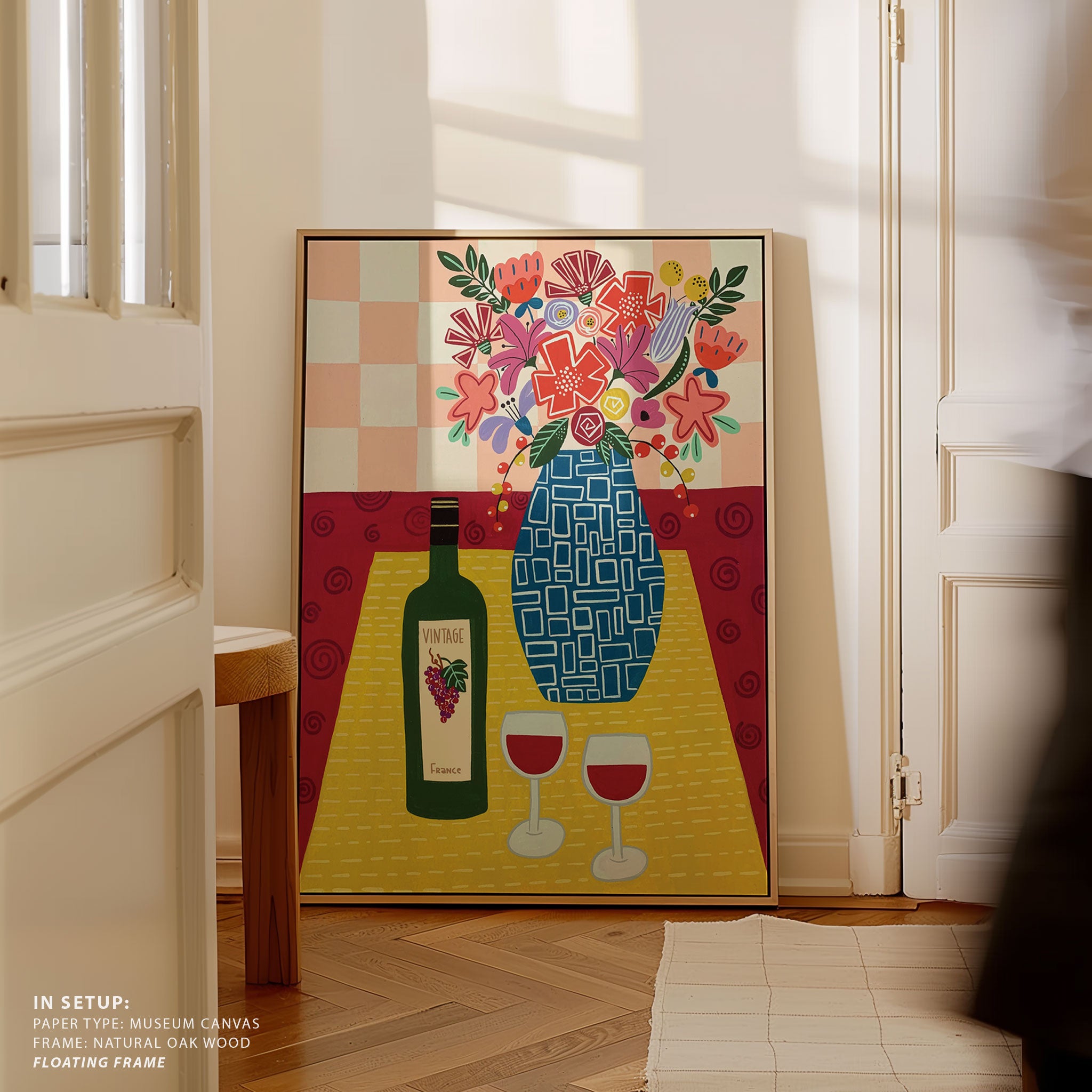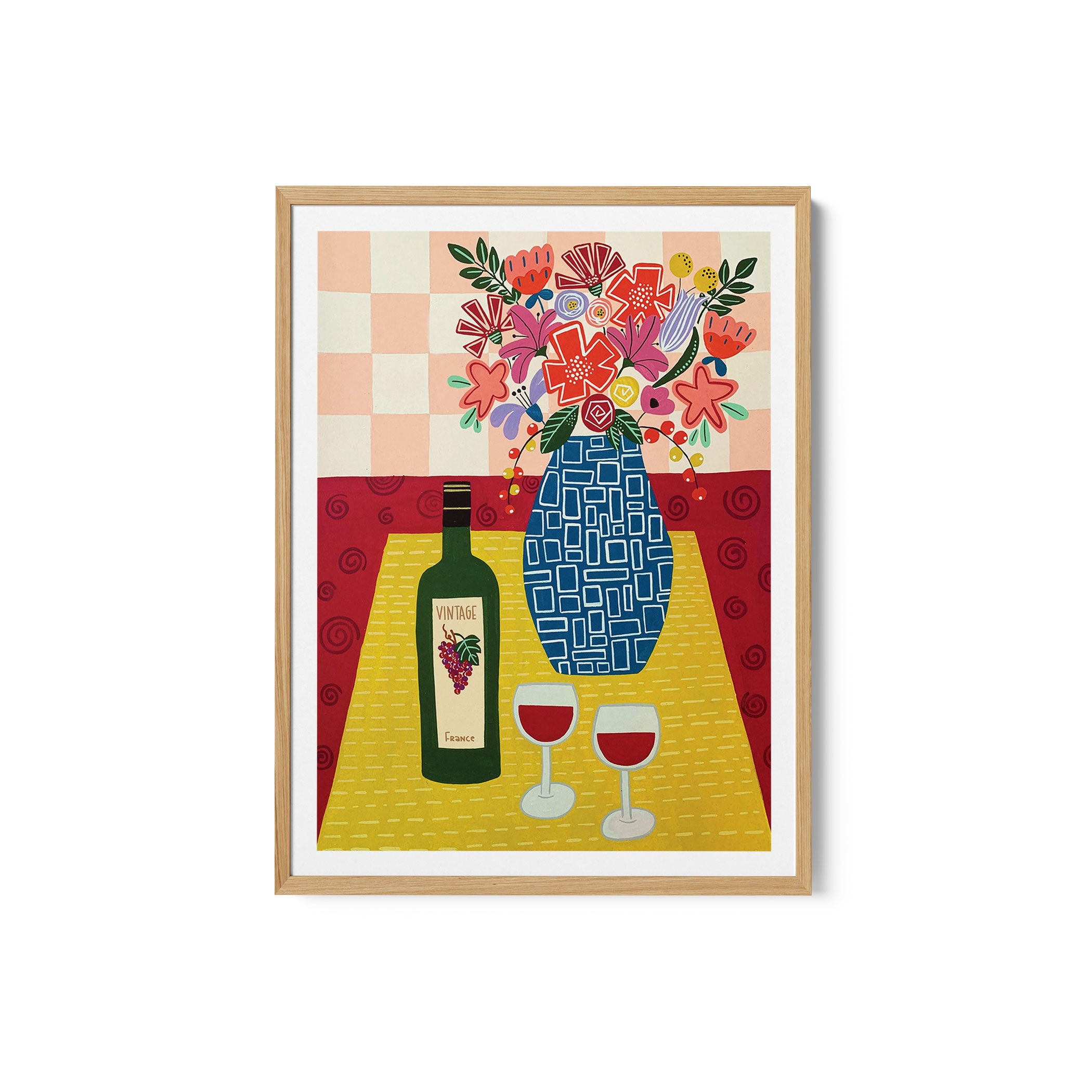 Floral Bouquet In A Geometric Blue Vase