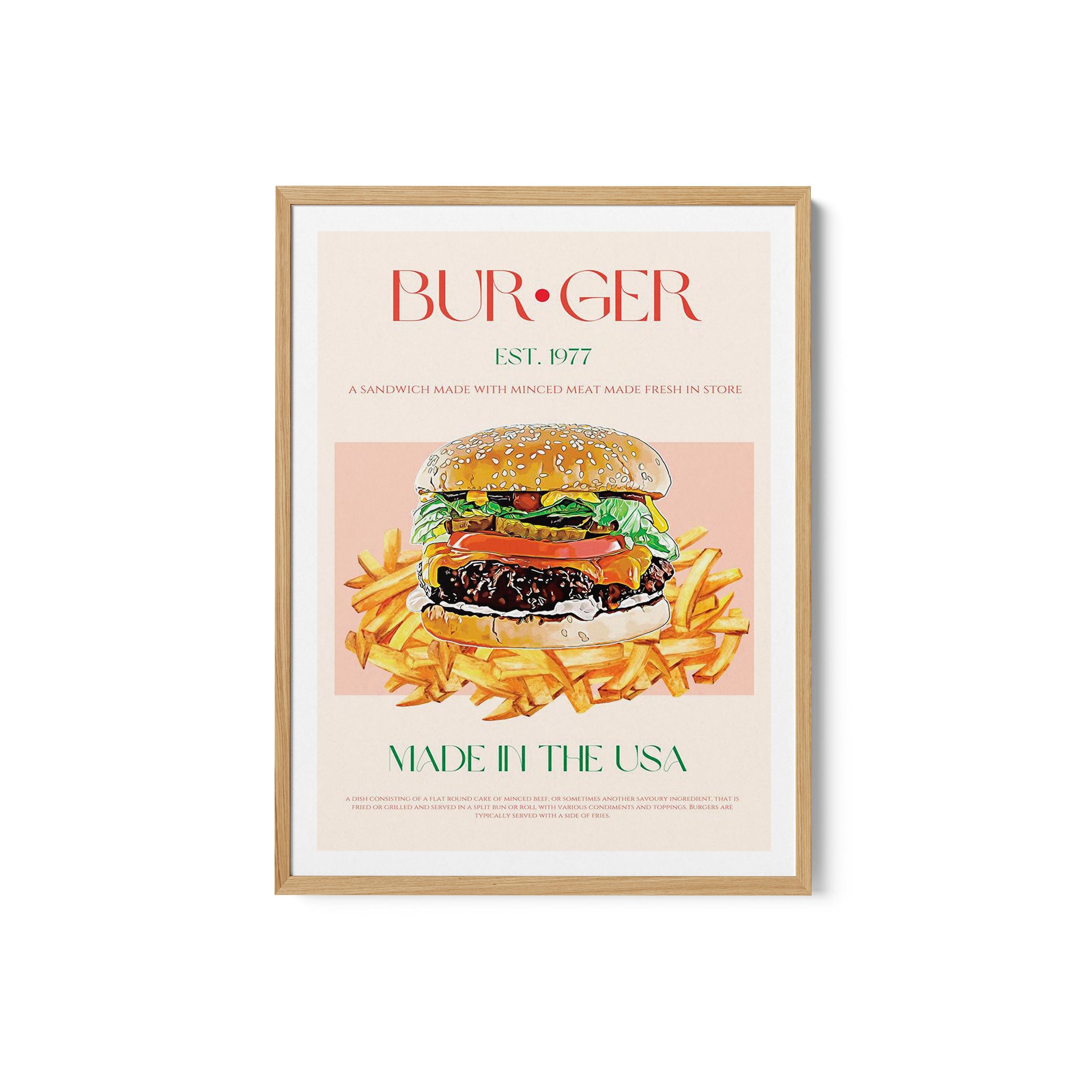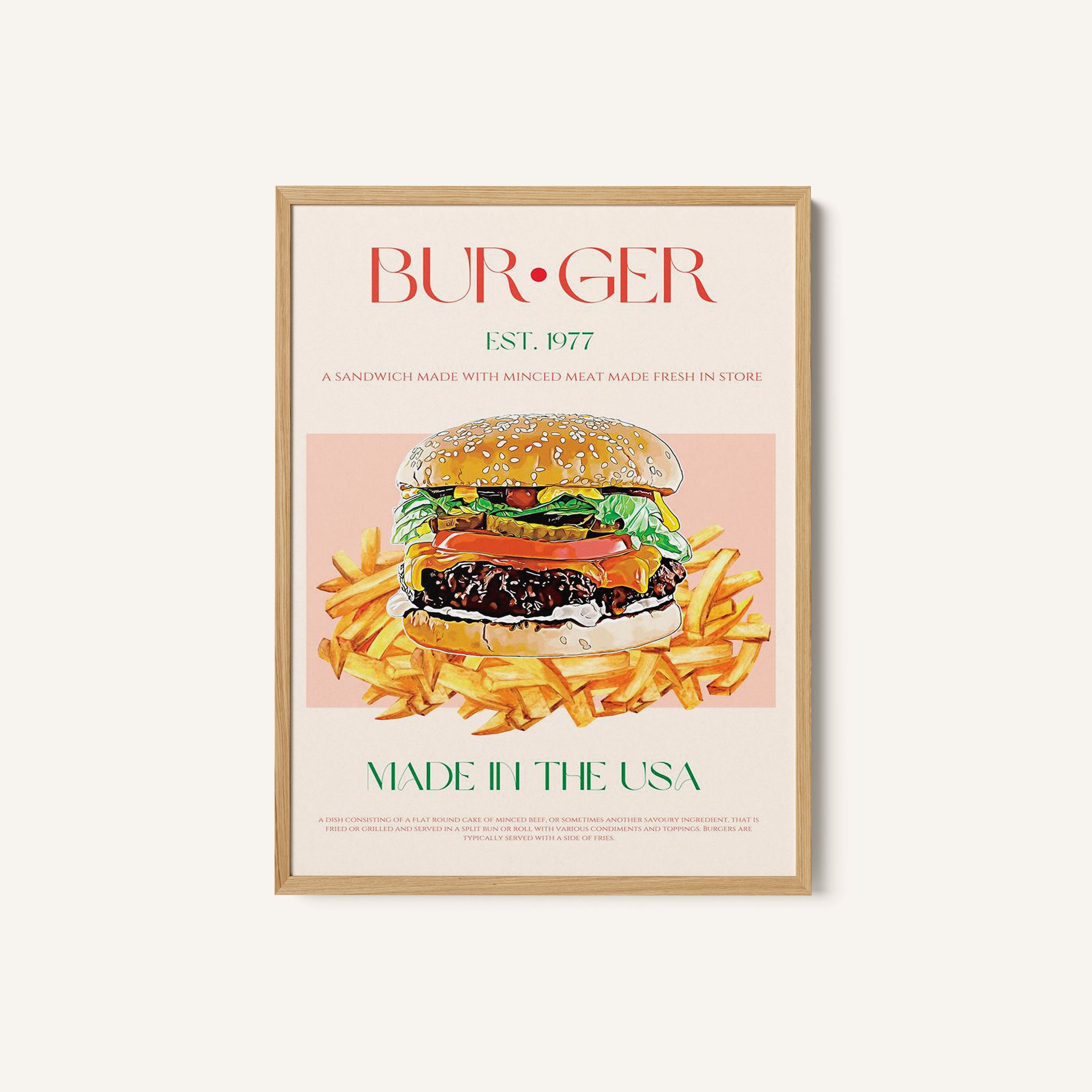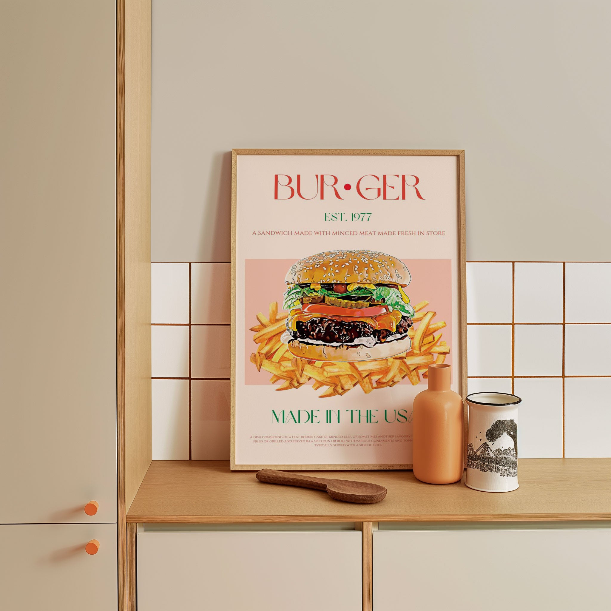 Turn your kitchen or café into a haven of slow mornings and gentle ambiance with this trendy wall art print. Classic American Bite from our Kitchen and Café Art Prints Collection, featuring clean, pop-art‑style typography. The playful yet graphic design tone fits right in with today’s trending food‑and‑drink decor, matching lines of witty kitchen quotes and minimal illustrations that instantly tell you this is all about coffee, tea or juice.