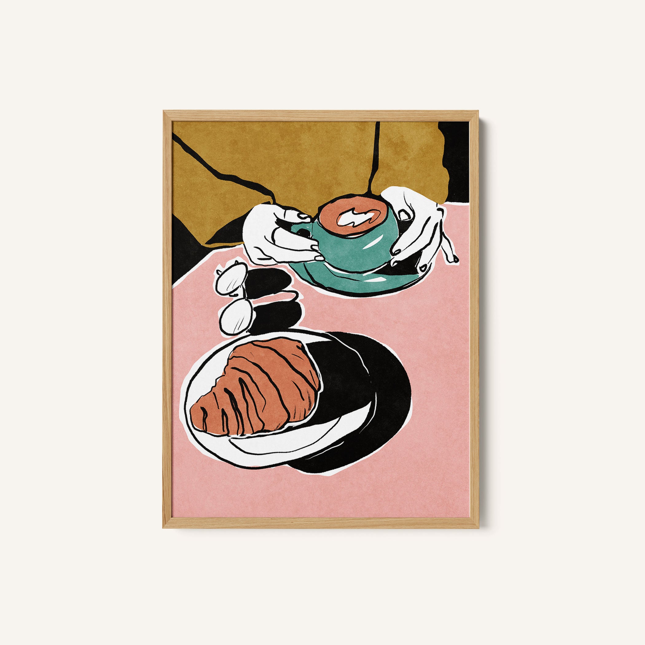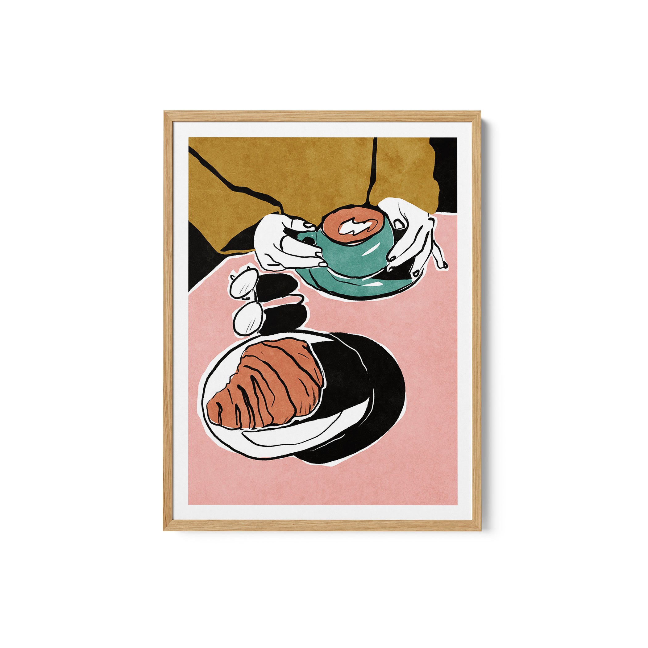 Turn your kitchen or café into a haven of slow mornings and gentle ambiance with this trendy wall art print. Croissant et Coffee au Lait from our Kitchen and Café Art Prints Collection, featuring clean, pop-art‑style typography. The playful yet graphic design tone fits right in with today’s trending food‑and‑drink decor, matching lines of witty kitchen quotes and minimal illustrations that instantly tell you this is all about coffee, tea or juice.