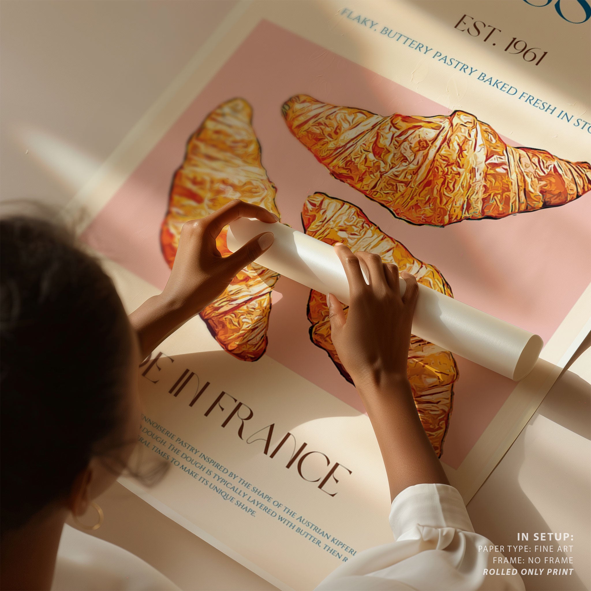 Transform your kitchen, café, or favorite serving space into a corner of creative flair with this trendy wall art print. Flaky French Delight from our Kitchen and Cafe Art Collection features an artfully inspired illustration that exudes a bold yet minimalist vibe. This modern artwork brings a stylish, design-forward mood that pairs perfectly with today’s love for culinary spaces that reflect art, individuality, and taste. Ideal for anyone who appreciates beauty, self-expression, and contemporary decor in the heart of the kitchen or the soul of a café.