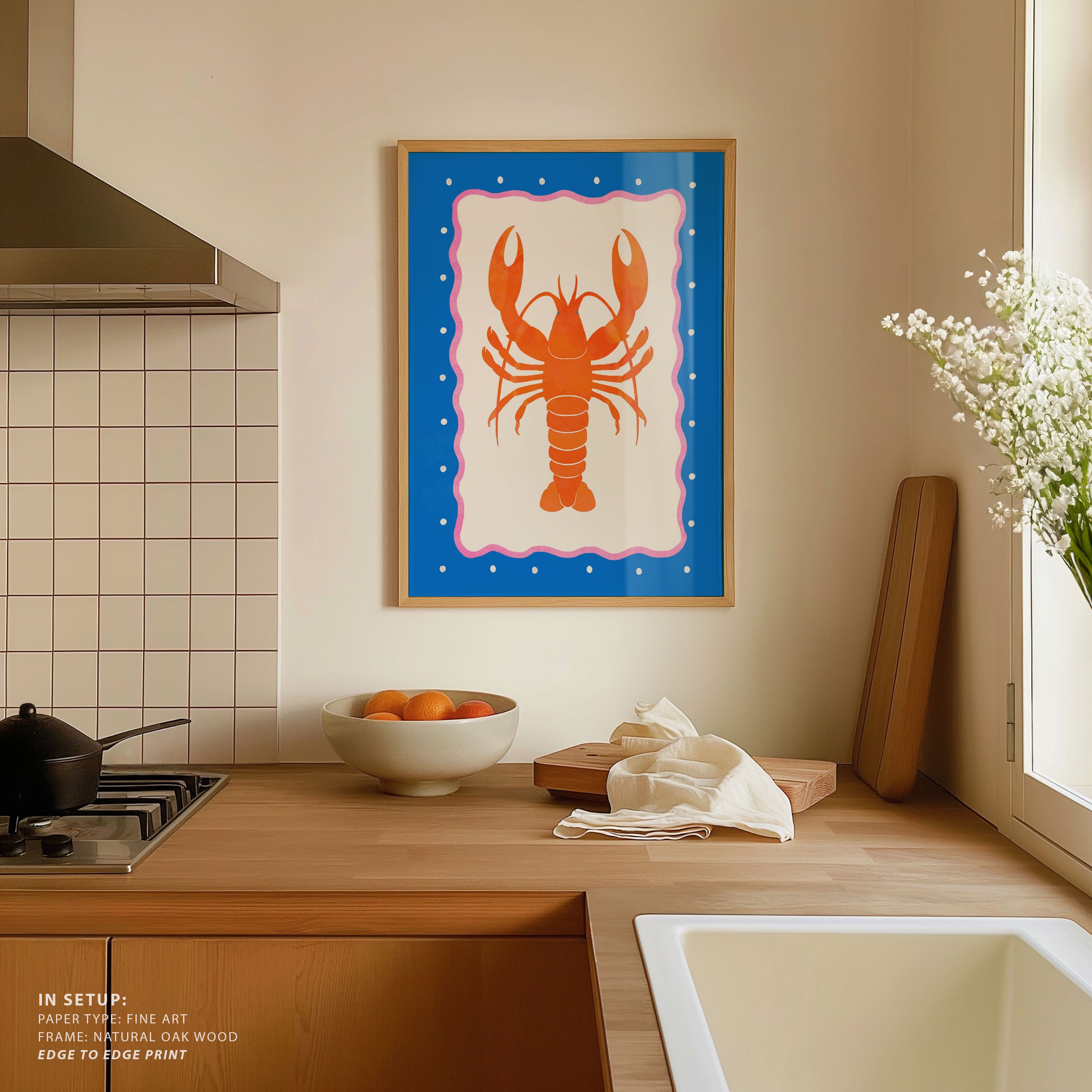 Transform your kitchen, café, or favorite serving space into a corner of creative flair with this trendy wall art print. Lobster from our Kitchen and Cafe Art Collection features an artfully inspired illustration that exudes a bold yet minimalist vibe. This modern artwork brings a stylish, design-forward mood that pairs perfectly with today’s love for culinary spaces that reflect art, individuality, and taste. Ideal for anyone who appreciates beauty, self-expression, and contemporary decor in the heart of the kitchen or the soul of a café.