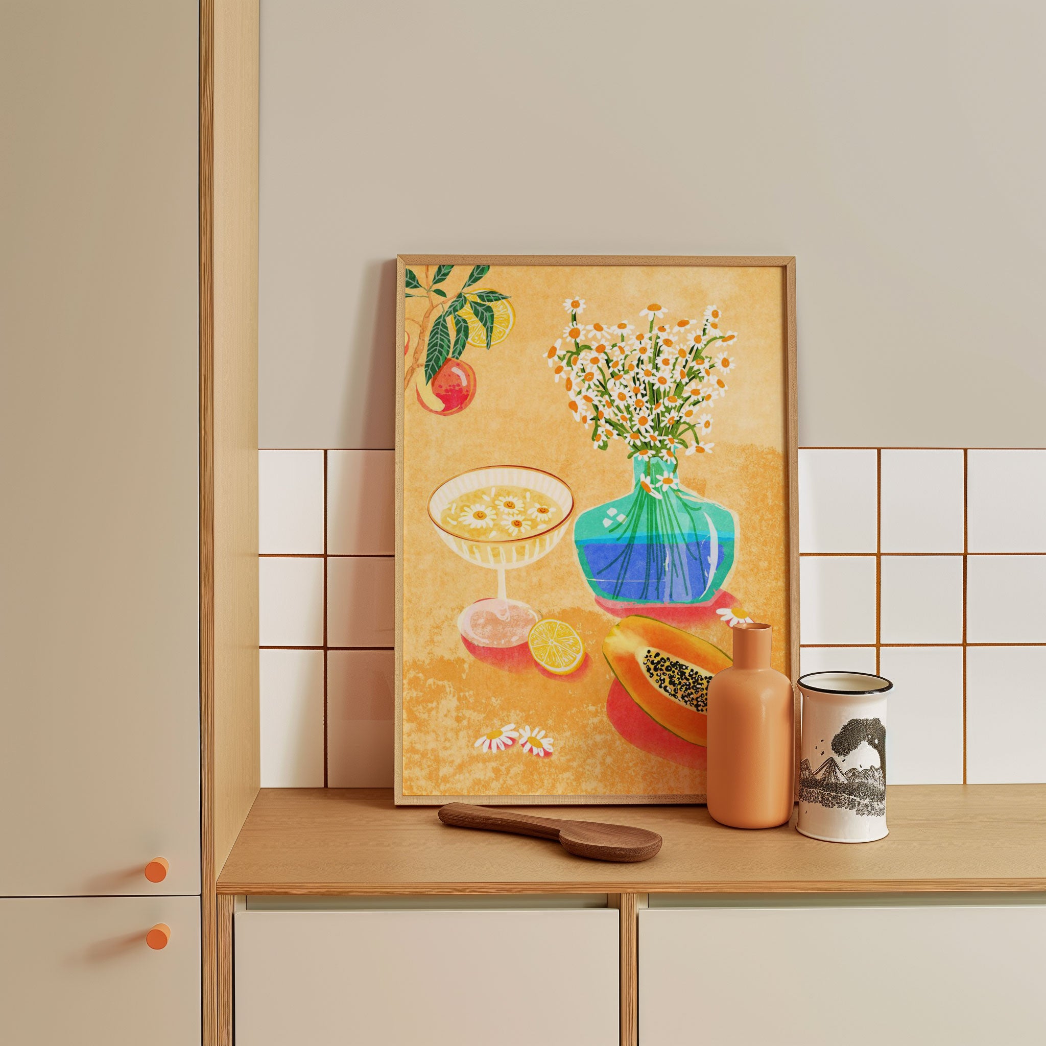 Transform your kitchen, café, or favorite serving space into a corner of creative flair with this trendy wall art print. Summer Day Vibes from our Kitchen and Cafe Art Collection features an artfully inspired illustration that exudes a bold yet minimalist vibe. This modern artwork brings a stylish, design-forward mood that pairs perfectly with today’s love for culinary spaces that reflect art, individuality, and taste. Ideal for anyone who appreciates beauty, self-expression, and contemporary decor in the heart of the kitchen or the soul of a café.