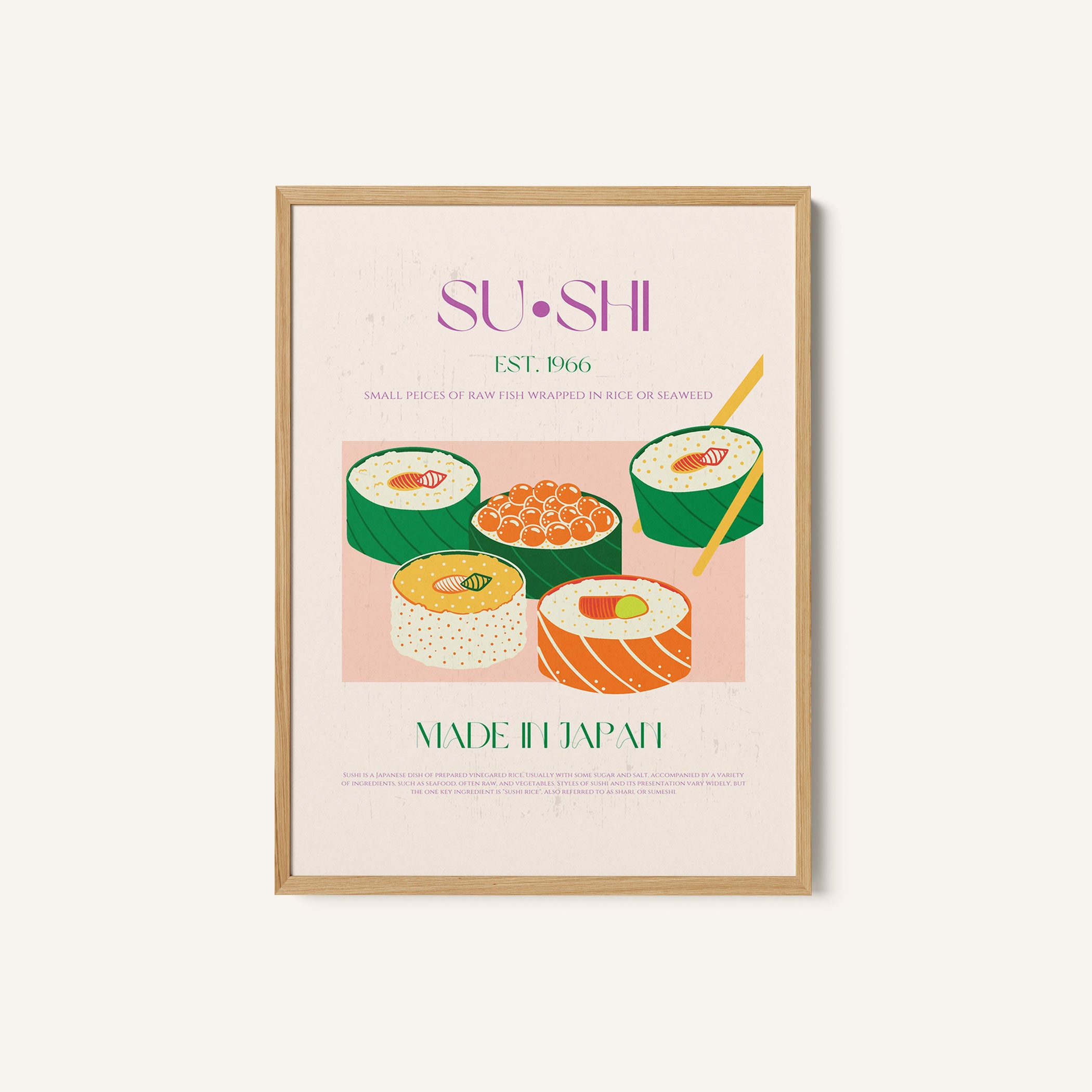 Transform your kitchen, café, or favorite serving space into a corner of creative flair with this trendy wall art print. Sushi Delight from our Kitchen and Cafe Art Collection features an artfully inspired illustration that exudes a bold yet minimalist vibe. This modern artwork brings a stylish, design-forward mood that pairs perfectly with today’s love for culinary spaces that reflect art, individuality, and taste. Ideal for anyone who appreciates beauty, self-expression, and contemporary decor in the heart of the kitchen or the soul of a café.