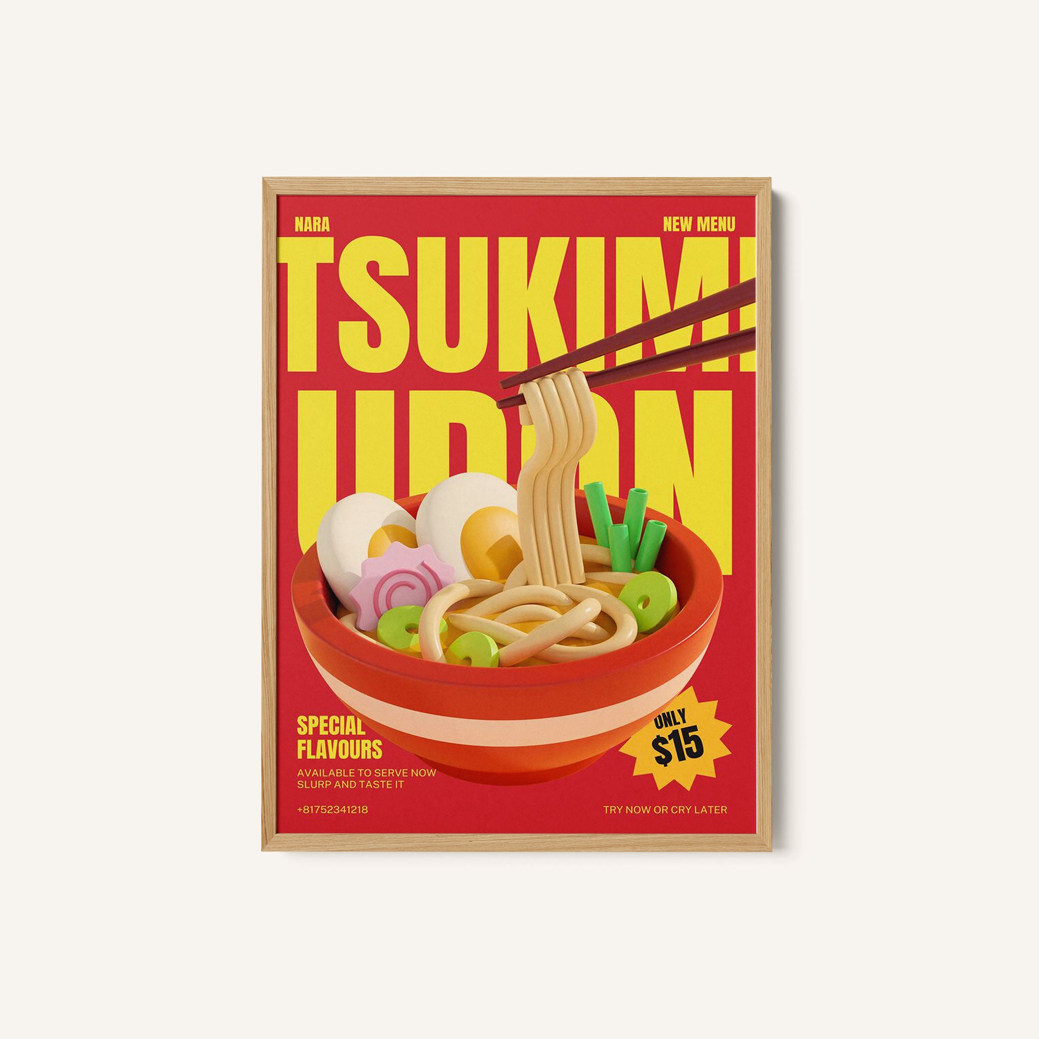 Transform your kitchen, café, or favorite serving space into a corner of creative flair with this trendy wall art print. Tsukimi Udon Menu from our Kitchen and Cafe Art Collection features an artfully inspired illustration that exudes a bold yet minimalist vibe. This modern artwork brings a stylish, design-forward mood that pairs perfectly with today’s love for culinary spaces that reflect art, individuality, and taste. Ideal for anyone who appreciates beauty, self-expression, and contemporary decor in the heart of the kitchen or the soul of a café.