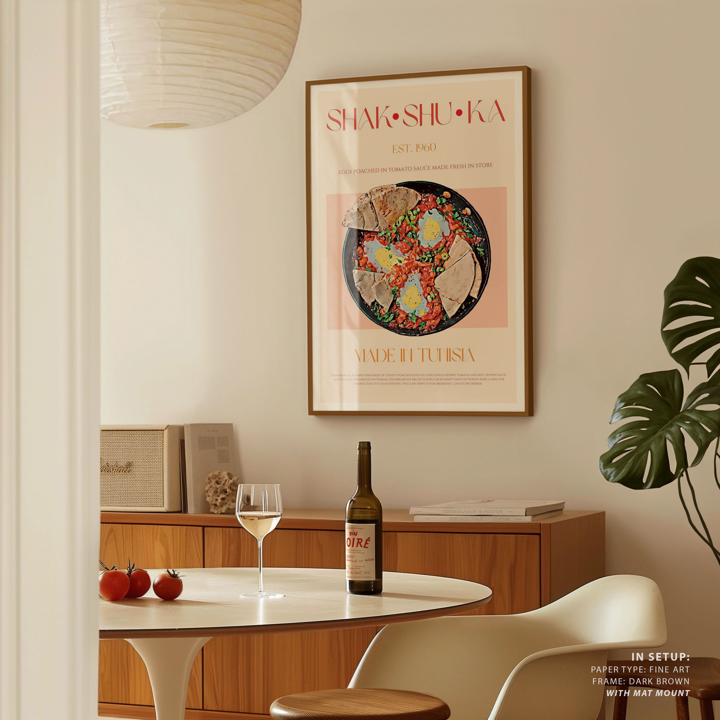 Transform your kitchen, café, or favorite serving space into a corner of creative flair with this trendy wall art print. Tunisian Shakshuka from our Kitchen and Cafe Art Collection features an artfully inspired illustration that exudes a bold yet minimalist vibe. This modern artwork brings a stylish, design-forward mood that pairs perfectly with today’s love for culinary spaces that reflect art, individuality, and taste. Ideal for anyone who appreciates beauty, self-expression, and contemporary decor in the heart of the kitchen or the soul of a café.