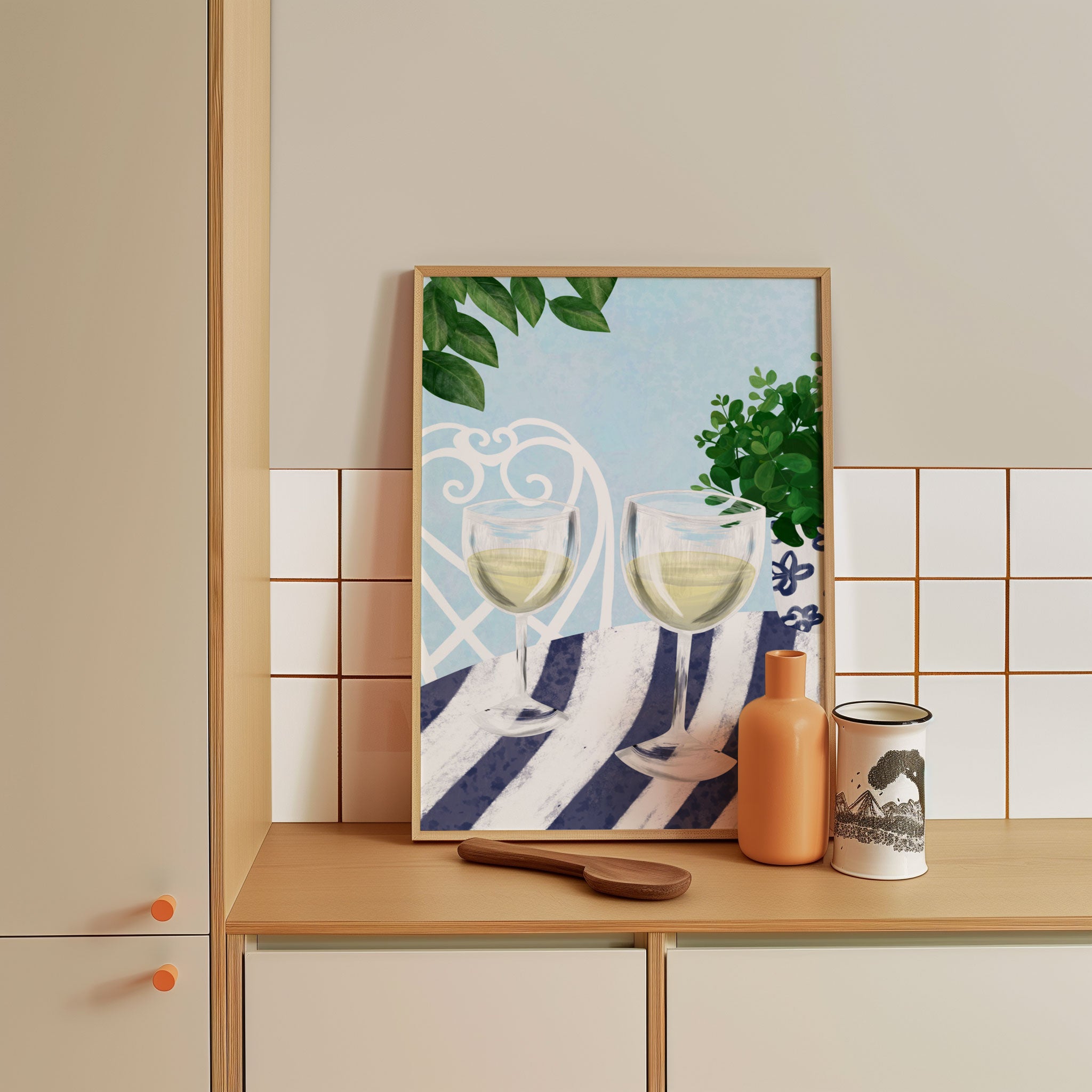Transform your kitchen, café, or favorite serving space into a corner of creative flair with this trendy wall art print. White Wine Under the Tree from our Kitchen and Cafe Art Collection features an artfully inspired illustration that exudes a bold yet minimalist vibe. This modern artwork brings a stylish, design-forward mood that pairs perfectly with today’s love for culinary spaces that reflect art, individuality, and taste. Ideal for anyone who appreciates beauty, self-expression, and contemporary decor in the heart of the kitchen or the soul of a café.