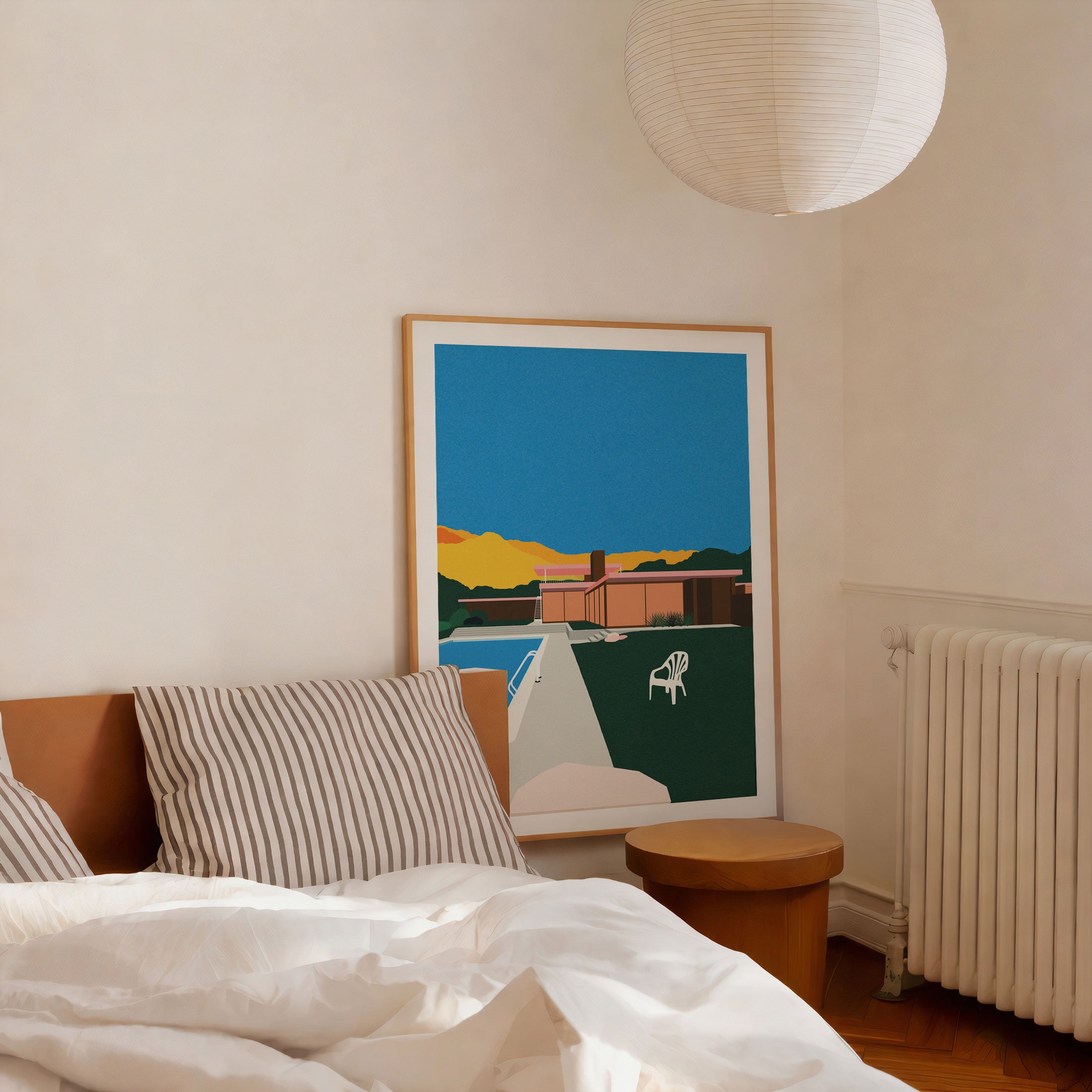 Elevate modern interiors with refined visual storytelling and bold artistic expression in this captivating artwork, Kaufmann Desert House Poolside, from our Rosi Feist Art Prints Collection. Designed to celebrate surreal visual art and contemporary collage aesthetics, this artwork blends dreamlike landscapes, symbolic human figures, and poetic contrasts to create a striking yet harmonious visual presence. Rooted in modern artistic expression, it adds depth, emotion, and creative intrigue to modern, eclectic, and art-inspired interiors.
