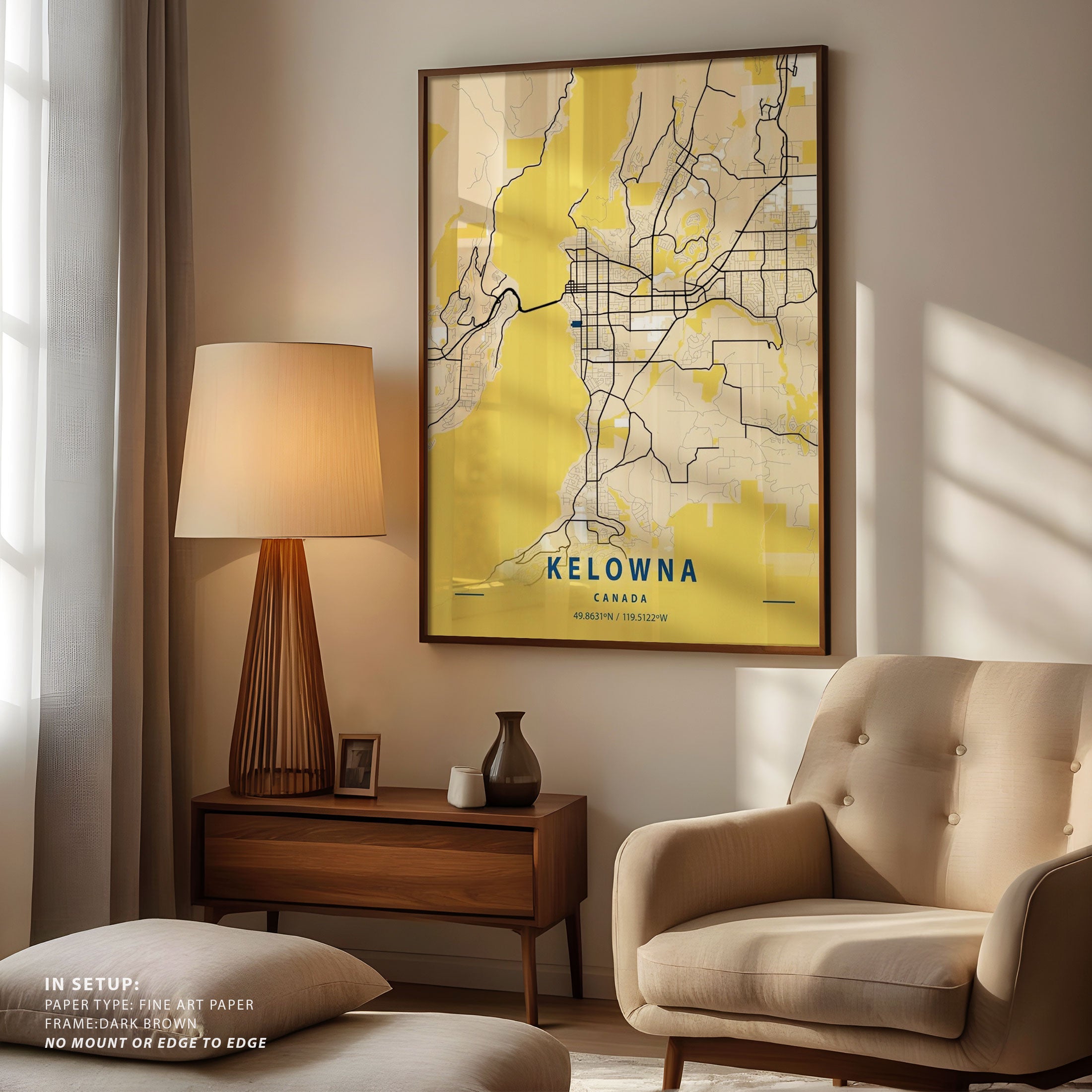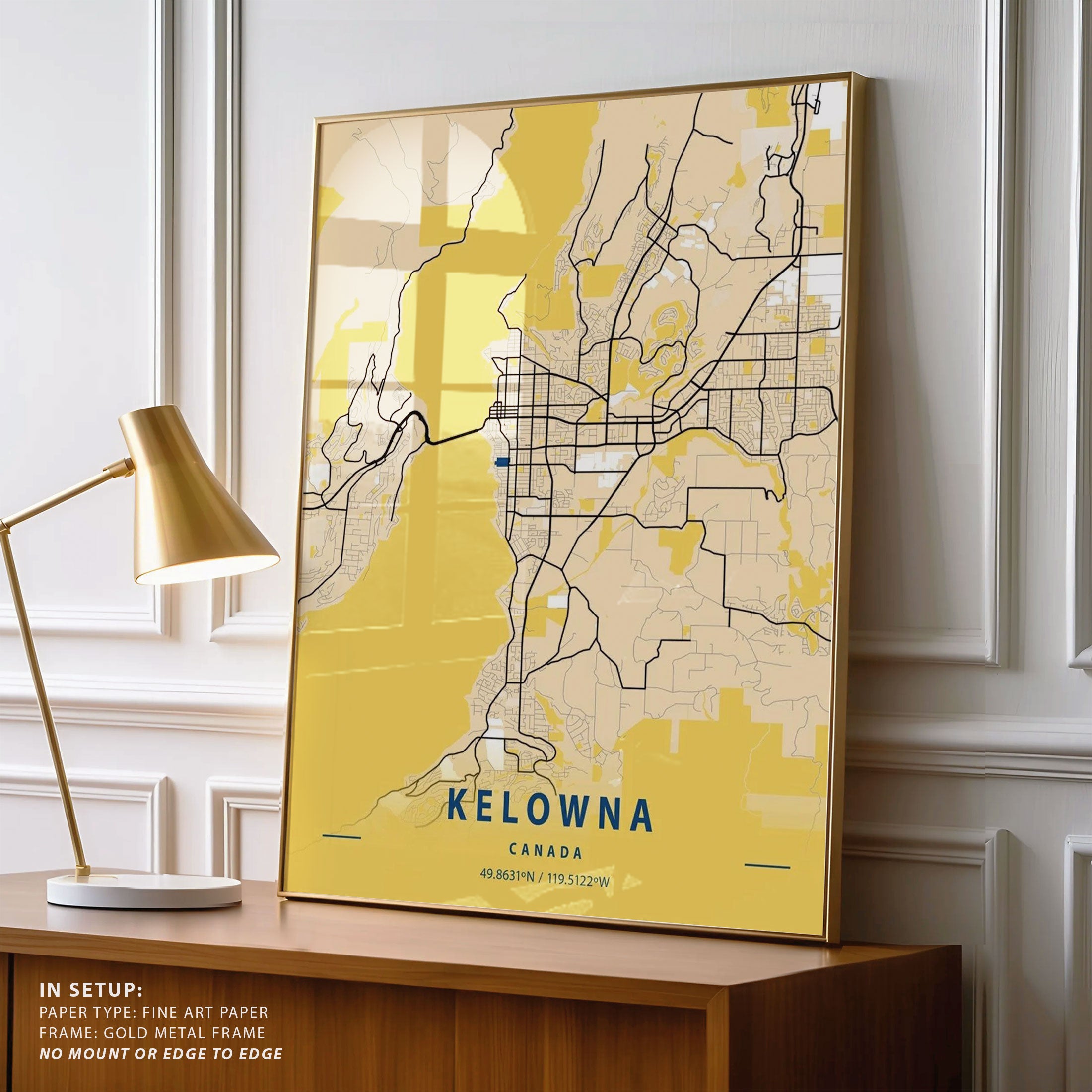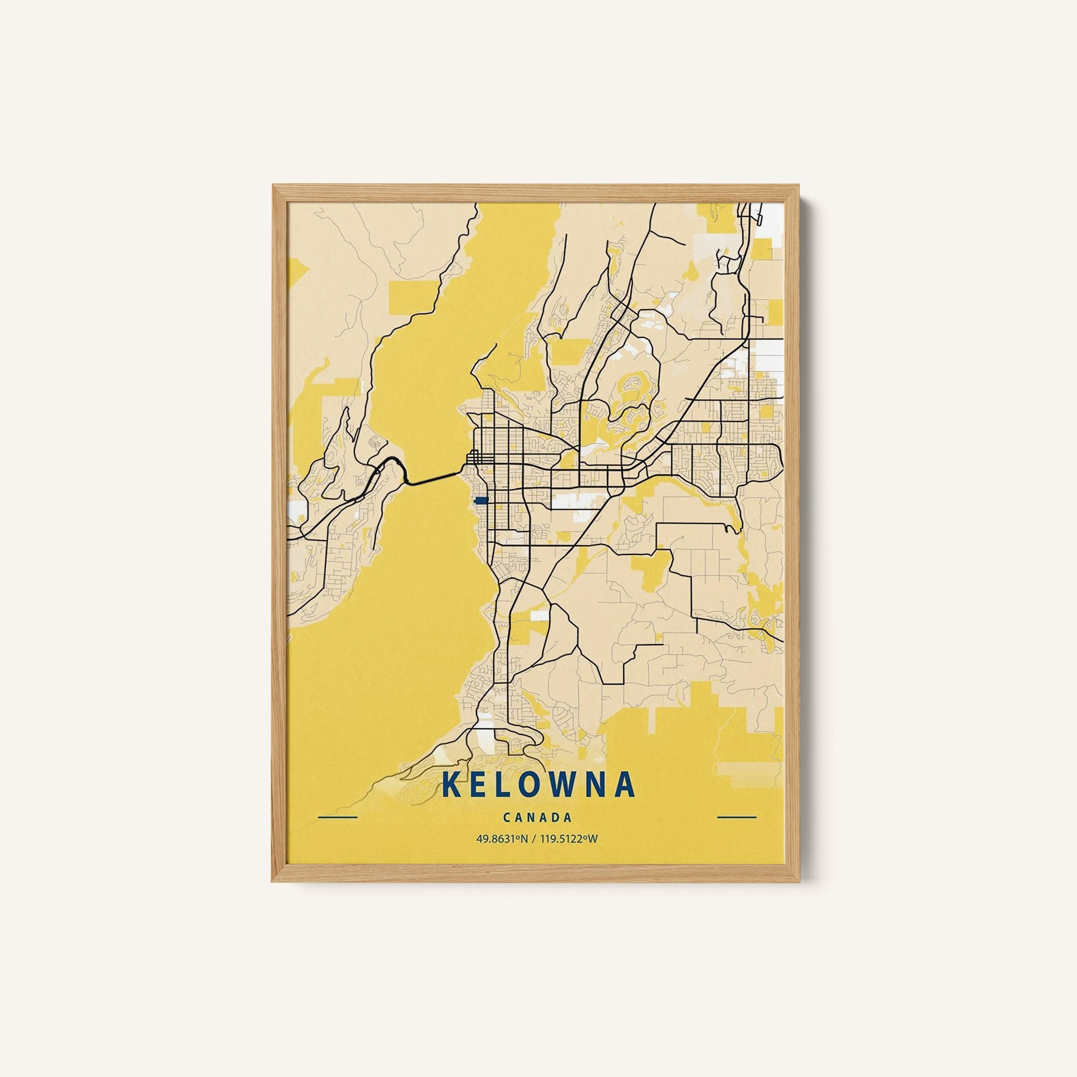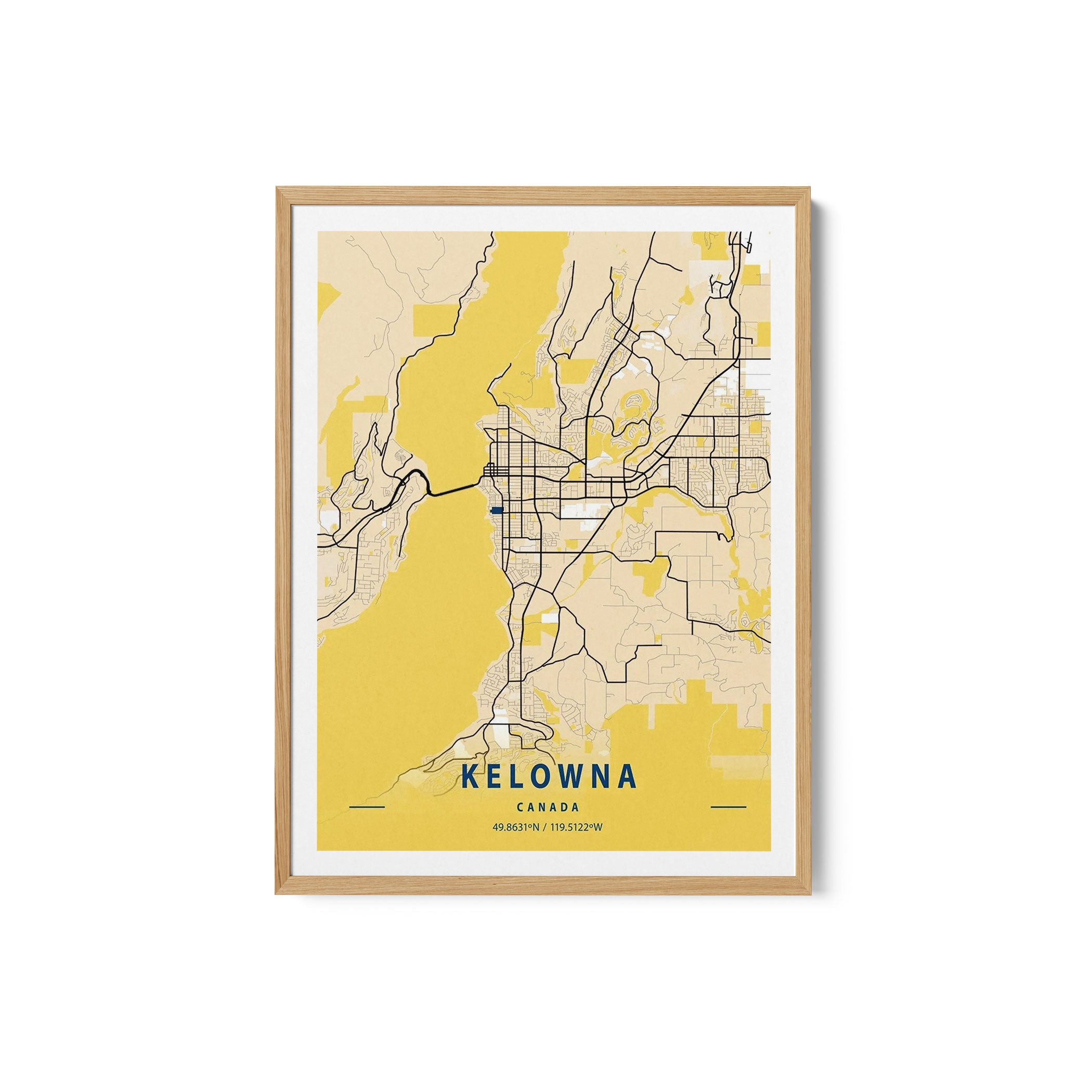 Kelowna Canada Yellow City Map