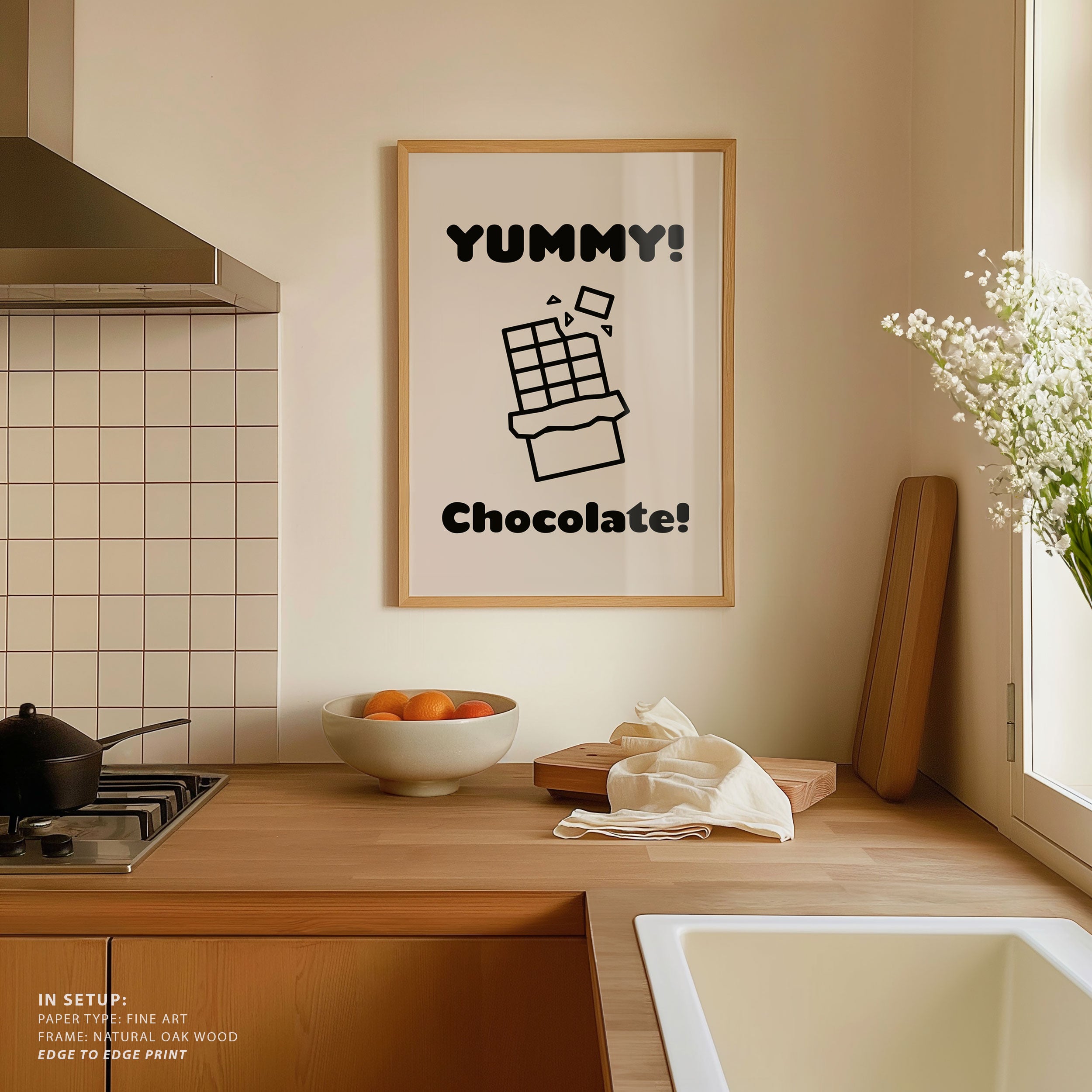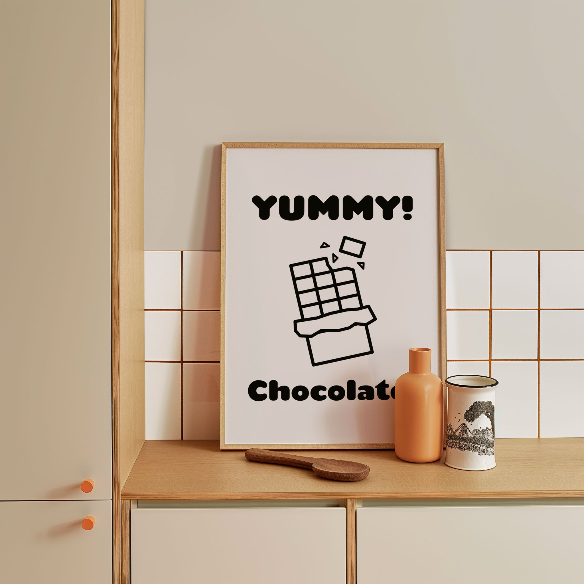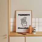 Turn your kitchen or café into a haven of slow mornings and gentle ambiance with this trendy wall art print. Chocolate from our Kitchen and Café Art Prints Collection, featuring clean, pop-art‑style typography. The playful yet graphic design tone fits right in with today’s trending food‑and‑drink decor, matching lines of witty kitchen quotes and minimal illustrations that instantly tell you this is all about coffee, tea or juice.