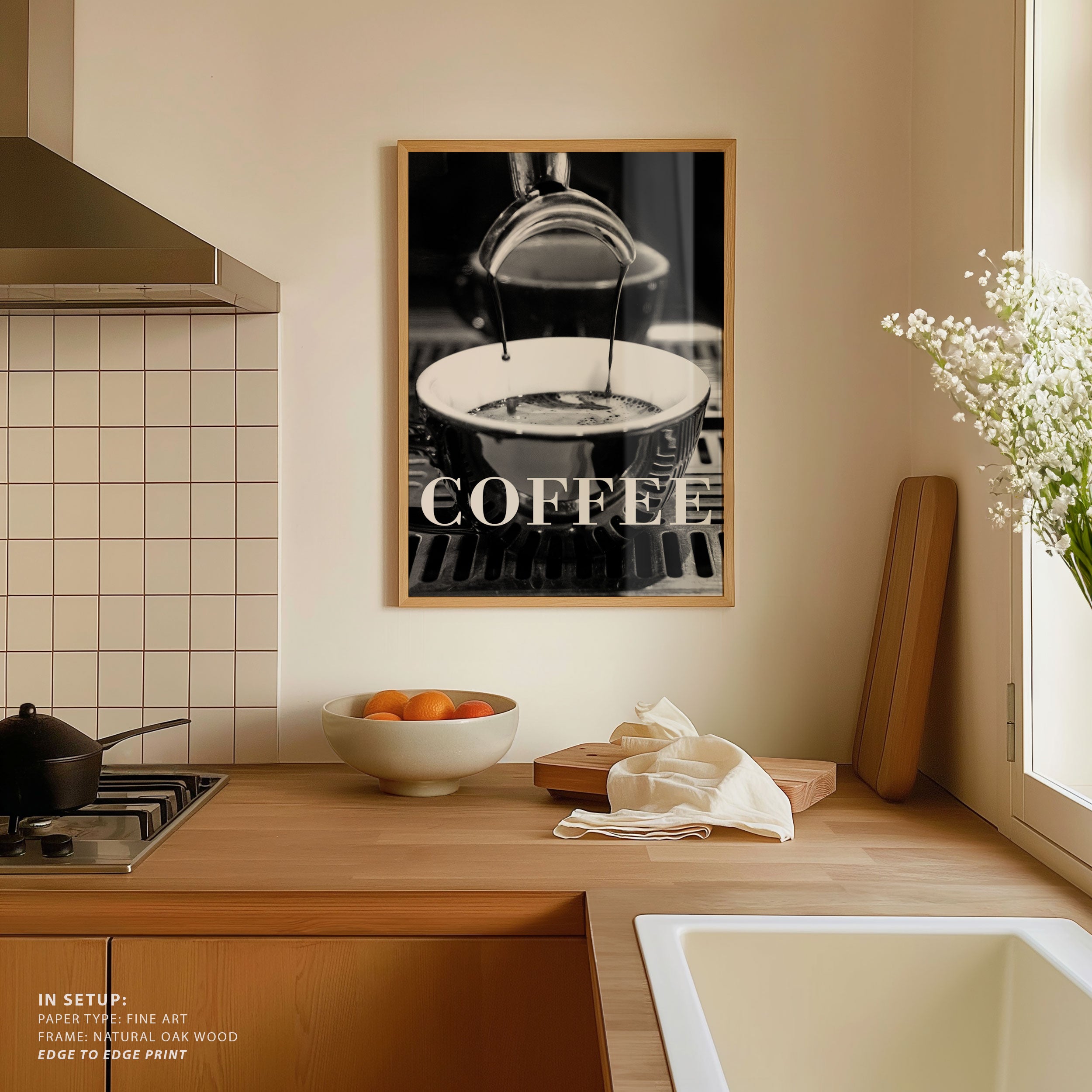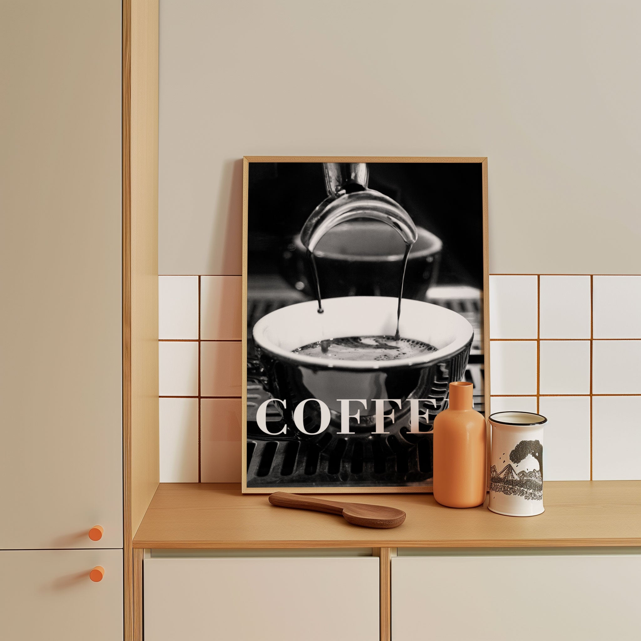 Turn your kitchen or café into a haven of slow mornings and gentle ambiance with this trendy wall art print. Coffee Text 2 from our Kitchen and Café Art Prints Collection, featuring clean, pop-art‑style typography. The playful yet graphic design tone fits right in with today’s trending food‑and‑drink decor, matching lines of witty kitchen quotes and minimal illustrations that instantly tell you this is all about coffee, tea or juice.