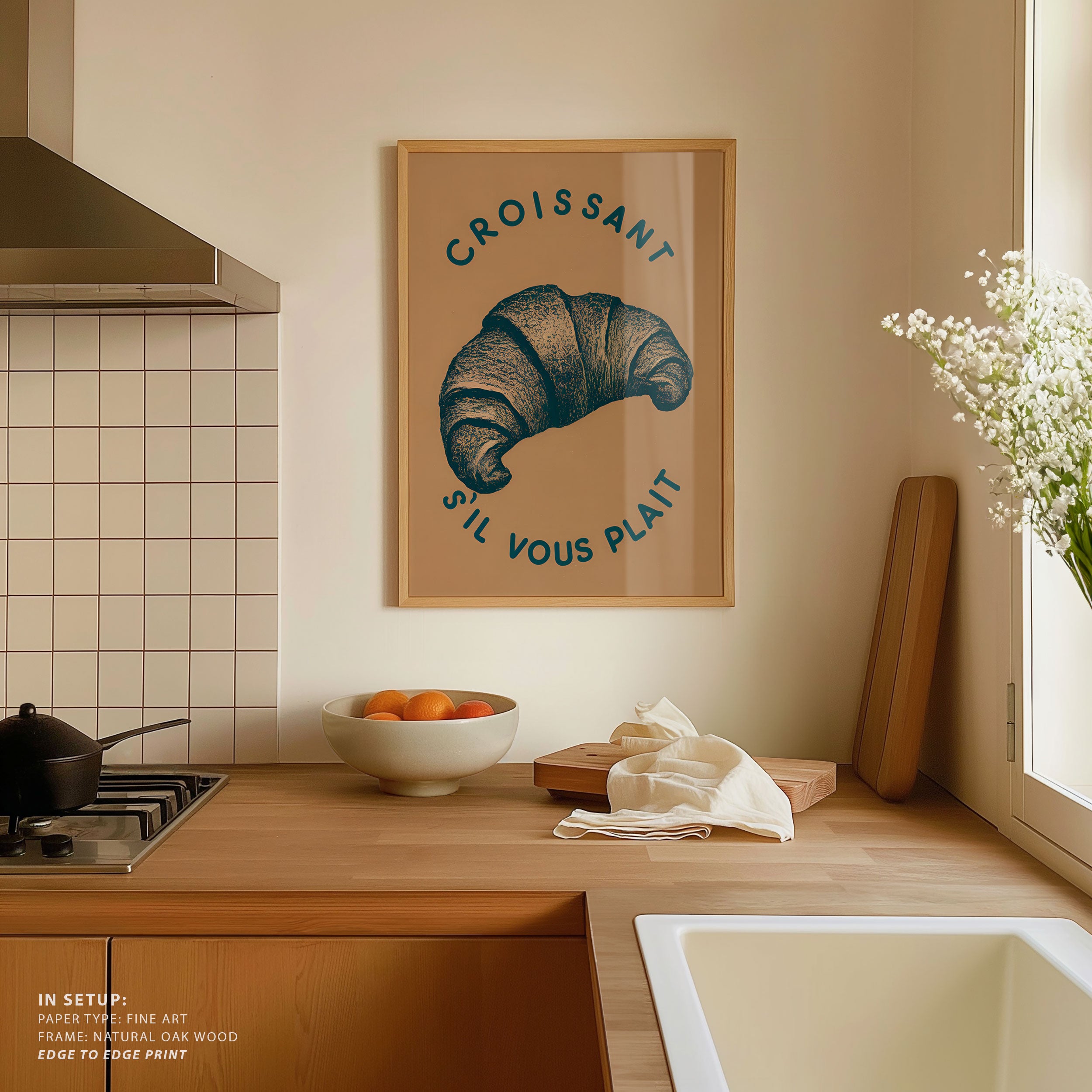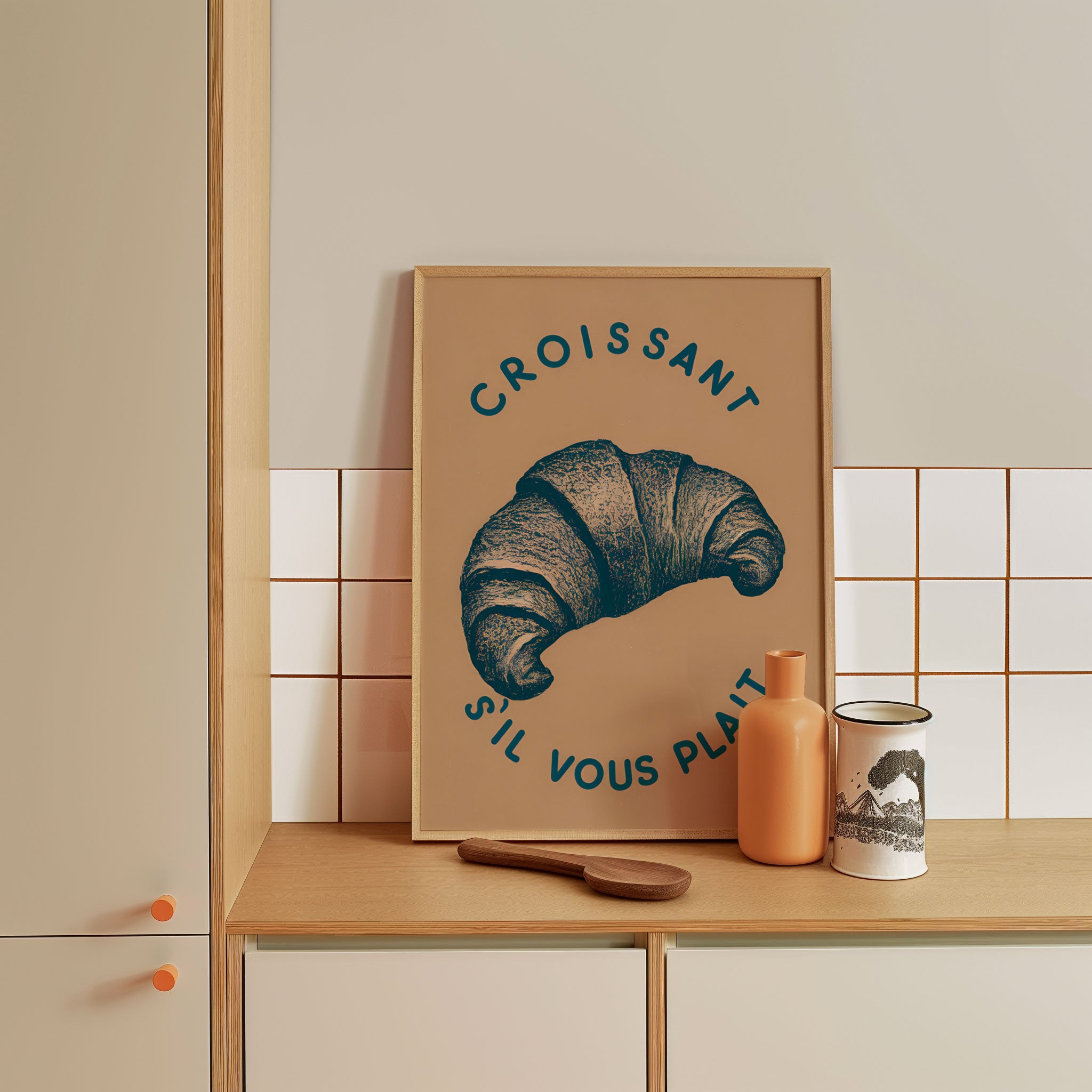 Turn your kitchen or café into a haven of slow mornings and gentle ambiance with this trendy wall art print. Croissant from our Kitchen and Café Art Prints Collection, featuring clean, pop-art‑style typography. The playful yet graphic design tone fits right in with today’s trending food‑and‑drink decor, matching lines of witty kitchen quotes and minimal illustrations that instantly tell you this is all about coffee, tea or juice.