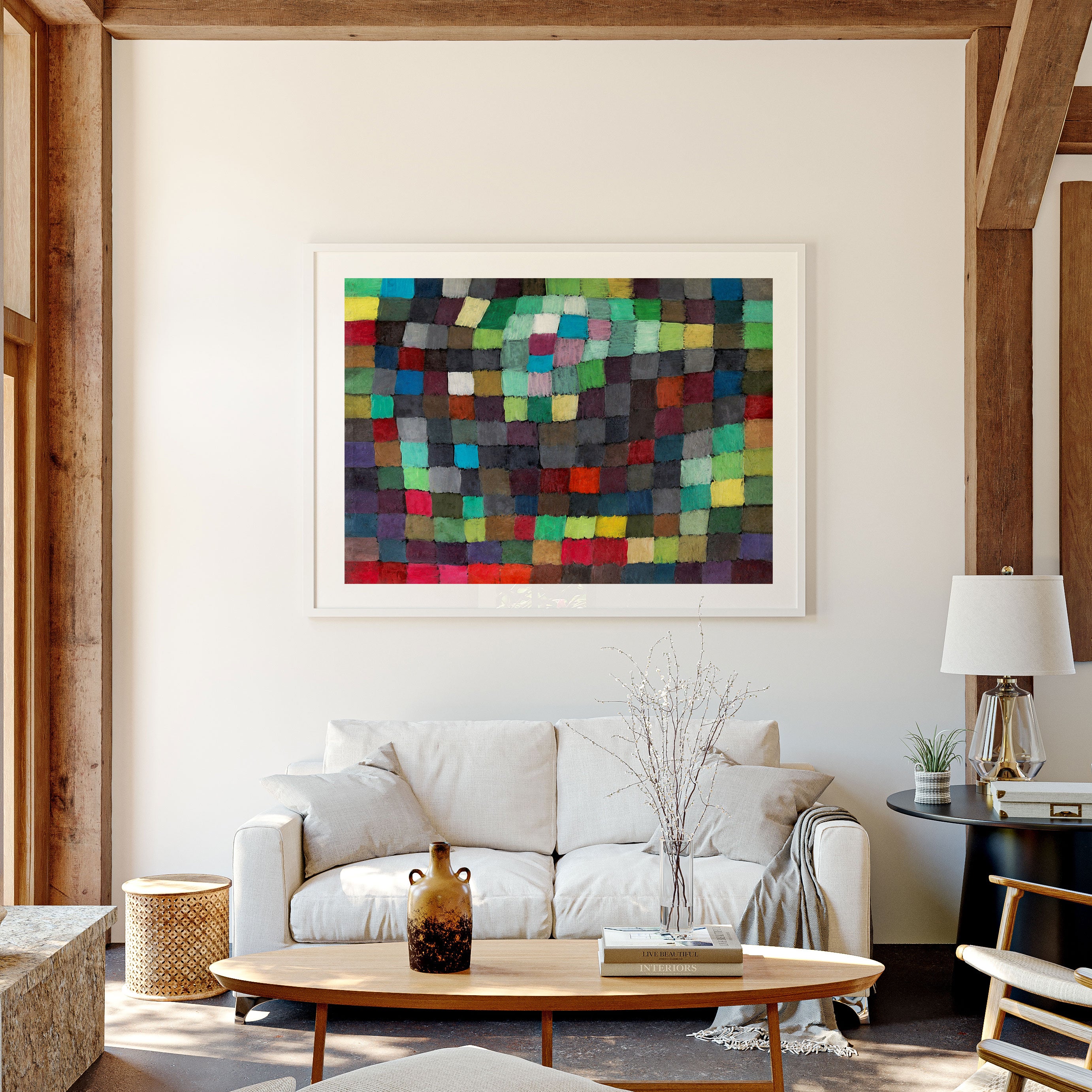 A carefully chosen multi-colour art print can instantly elevate the look and feel of any room.