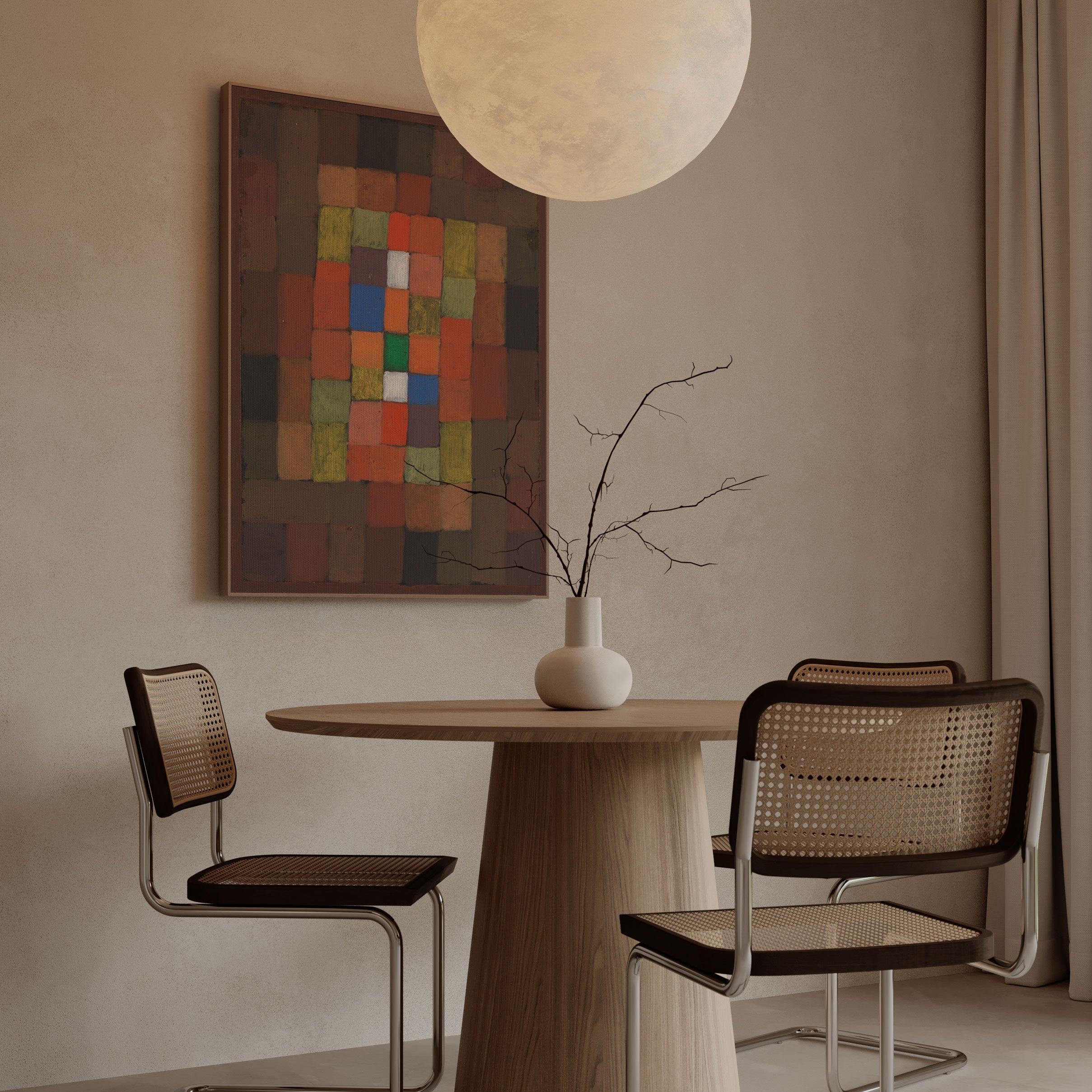 Bring elegance and harmony into your space with this beautiful artwork, Static-Dynamic Gradation, from our Paul Klee Art Prints Collection. This piece reveals a quiet yet compelling interplay of rich tones, structured forms, and expressive brushwork that captures both warmth and depth. Subtle painting details, classic fine-art textures, and thoughtfully layered color transitions enhance its enduring charm. Its balanced composition and contemplative atmosphere introduce a refined and artistic presence to any interior, enriching your space with the timeless poetry and distinctive vision of this iconic Cézanne-inspired artistic style.