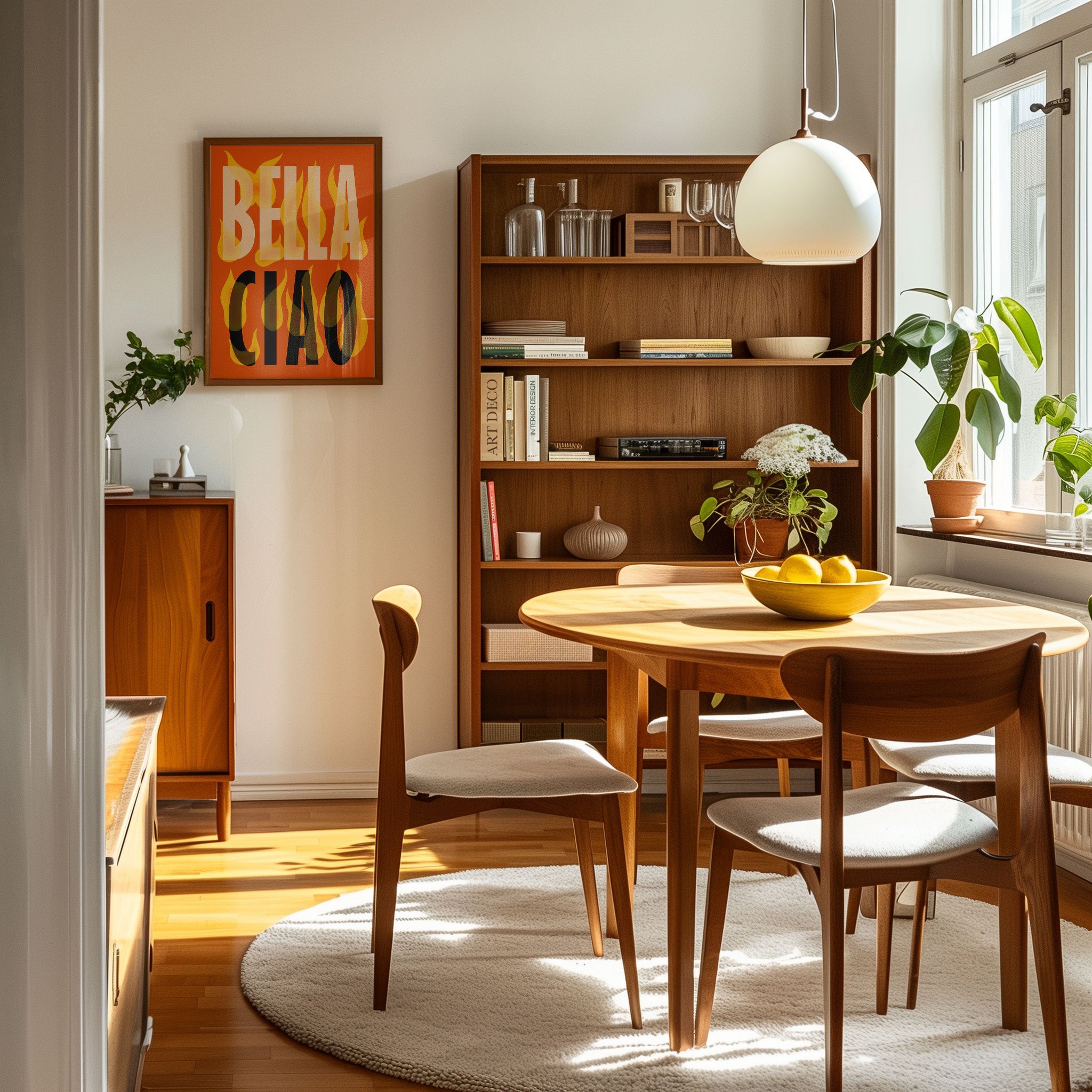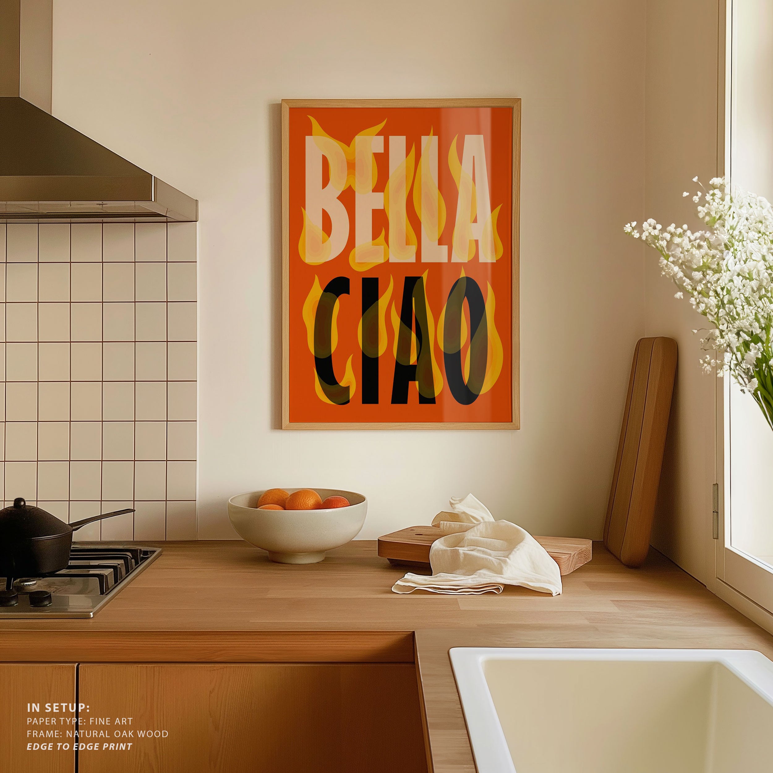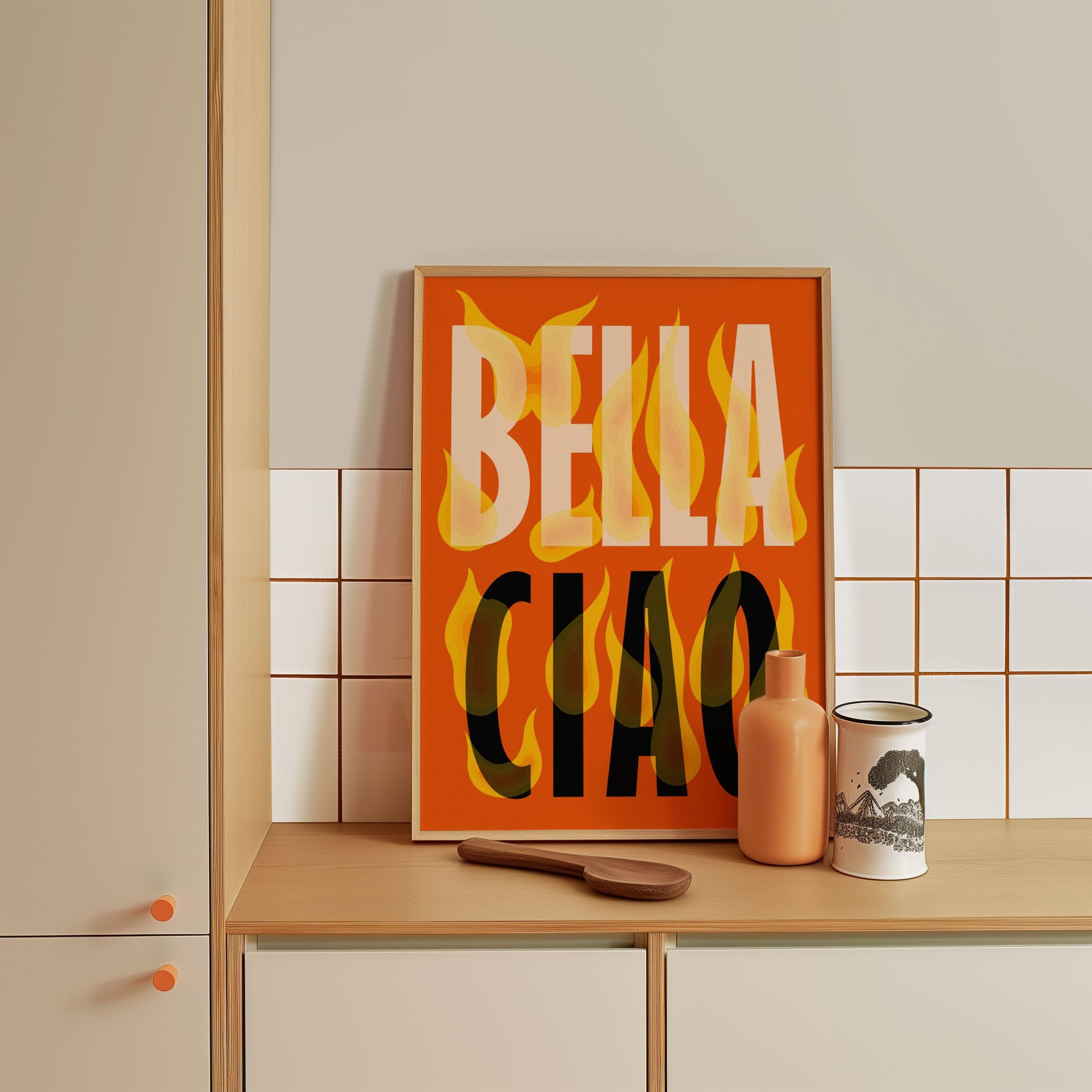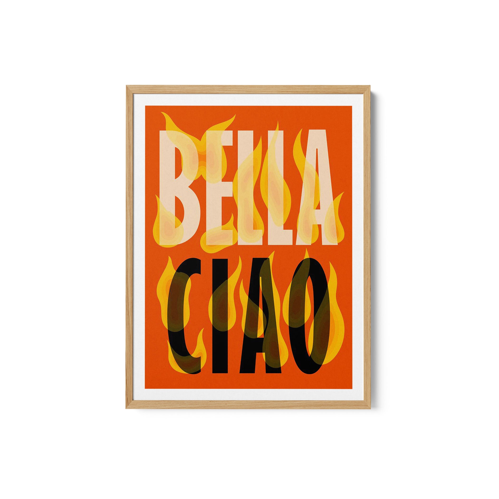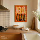 Turn your kitchen or café into a haven of slow mornings and gentle ambiance with this trendy wall art print. Bella Ciao from our Kitchen and Café Art Prints Collection, featuring clean, pop-art‑style typography. The playful yet graphic design tone fits right in with today’s trending food‑and‑drink decor, matching lines of witty kitchen quotes and minimal illustrations that instantly tell you this is all about coffee, tea or juice.