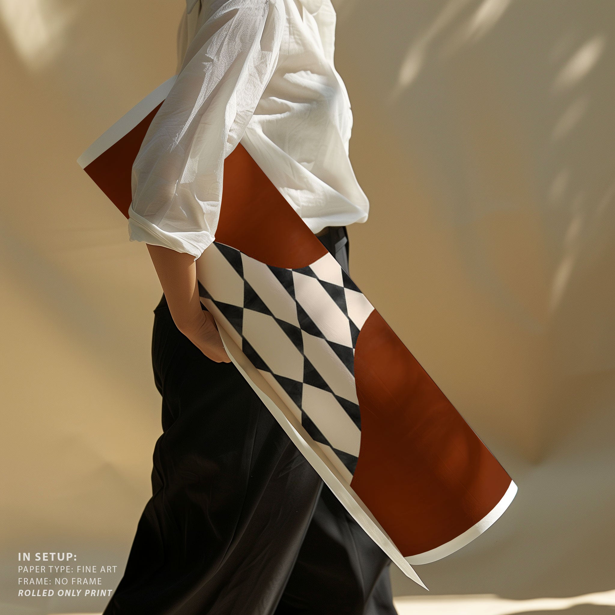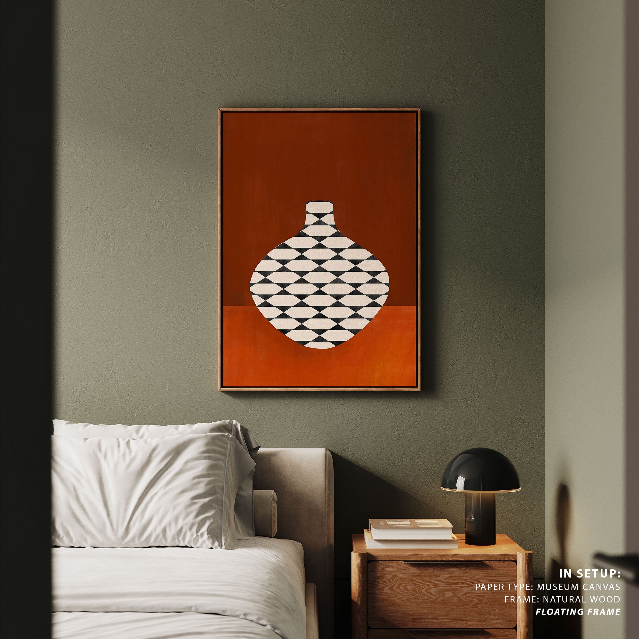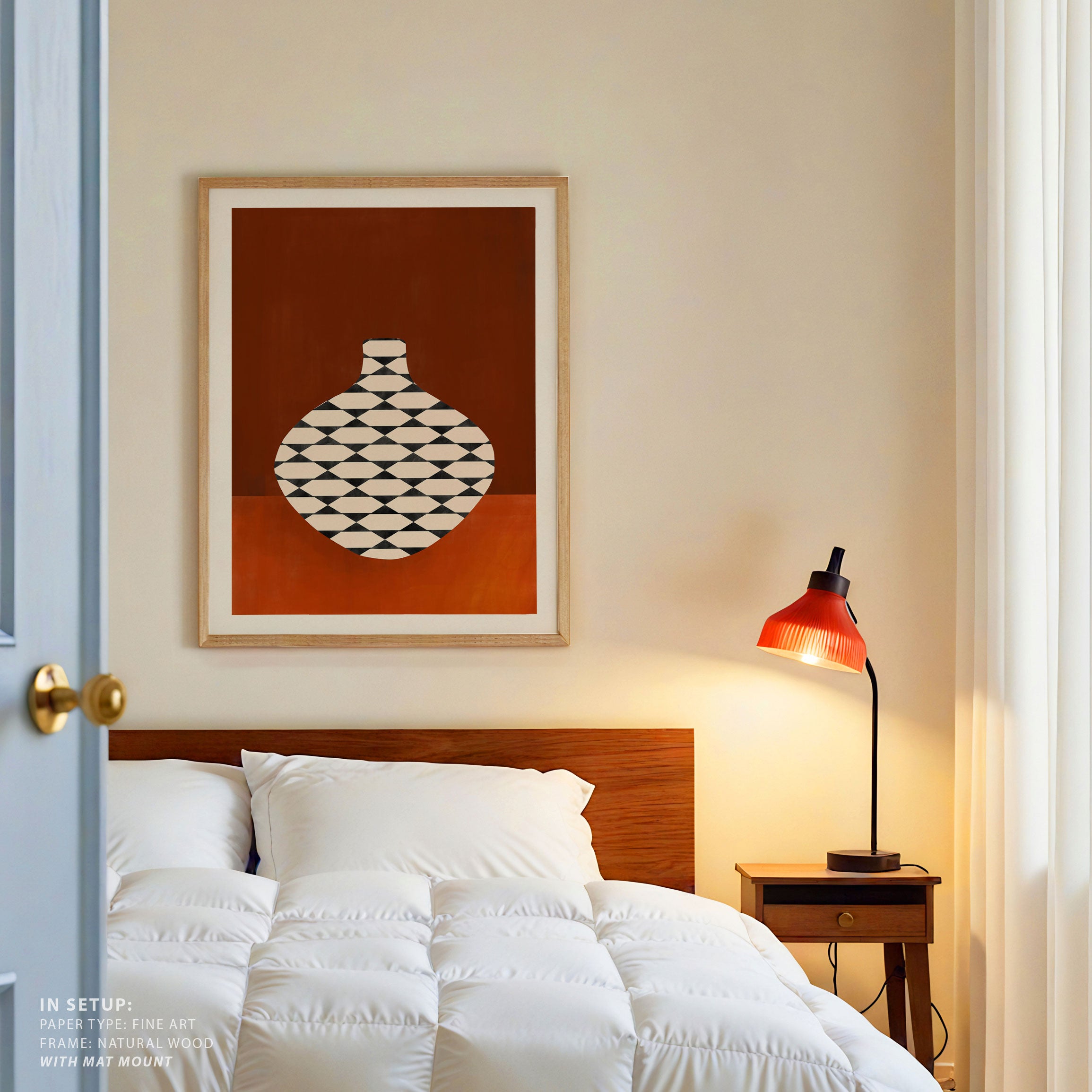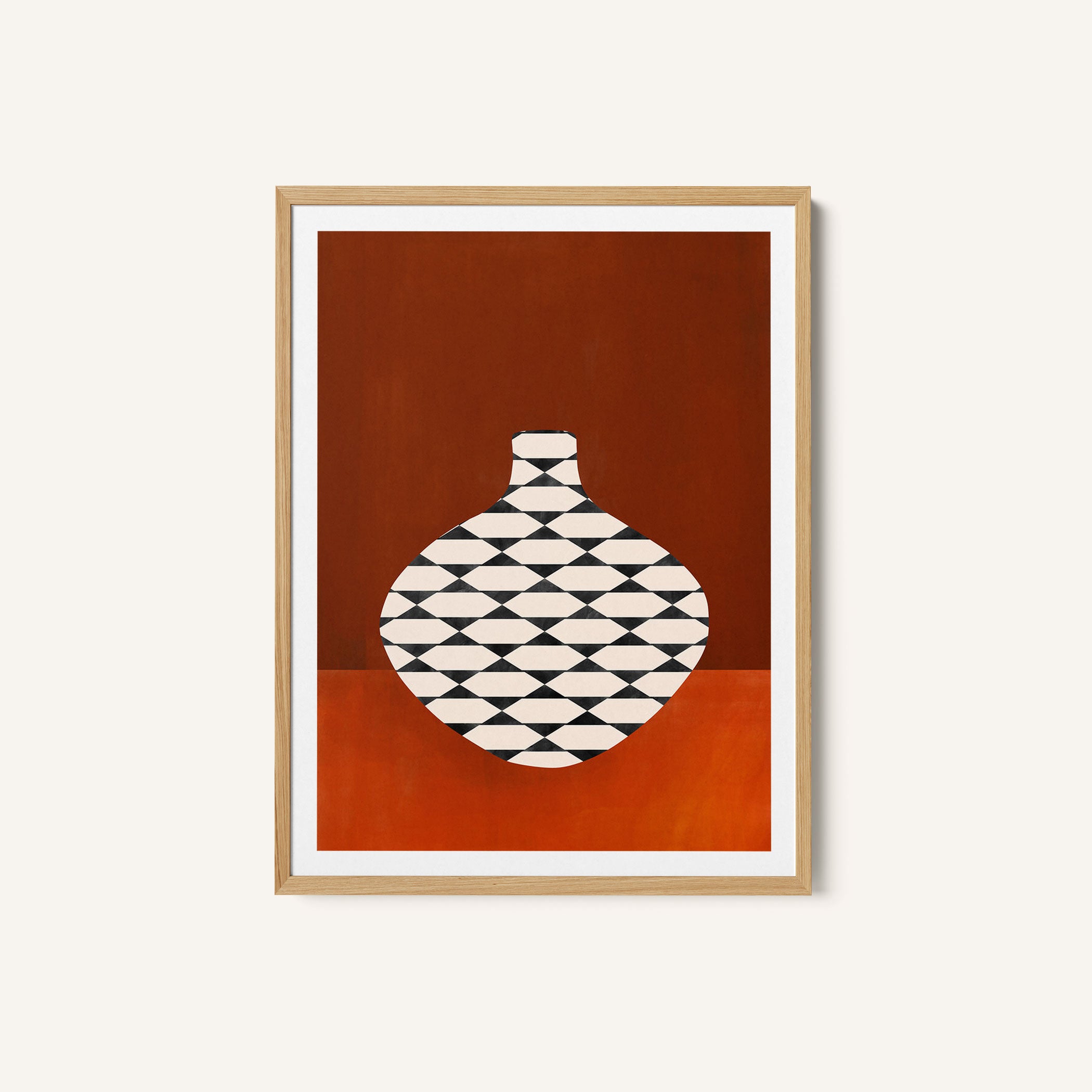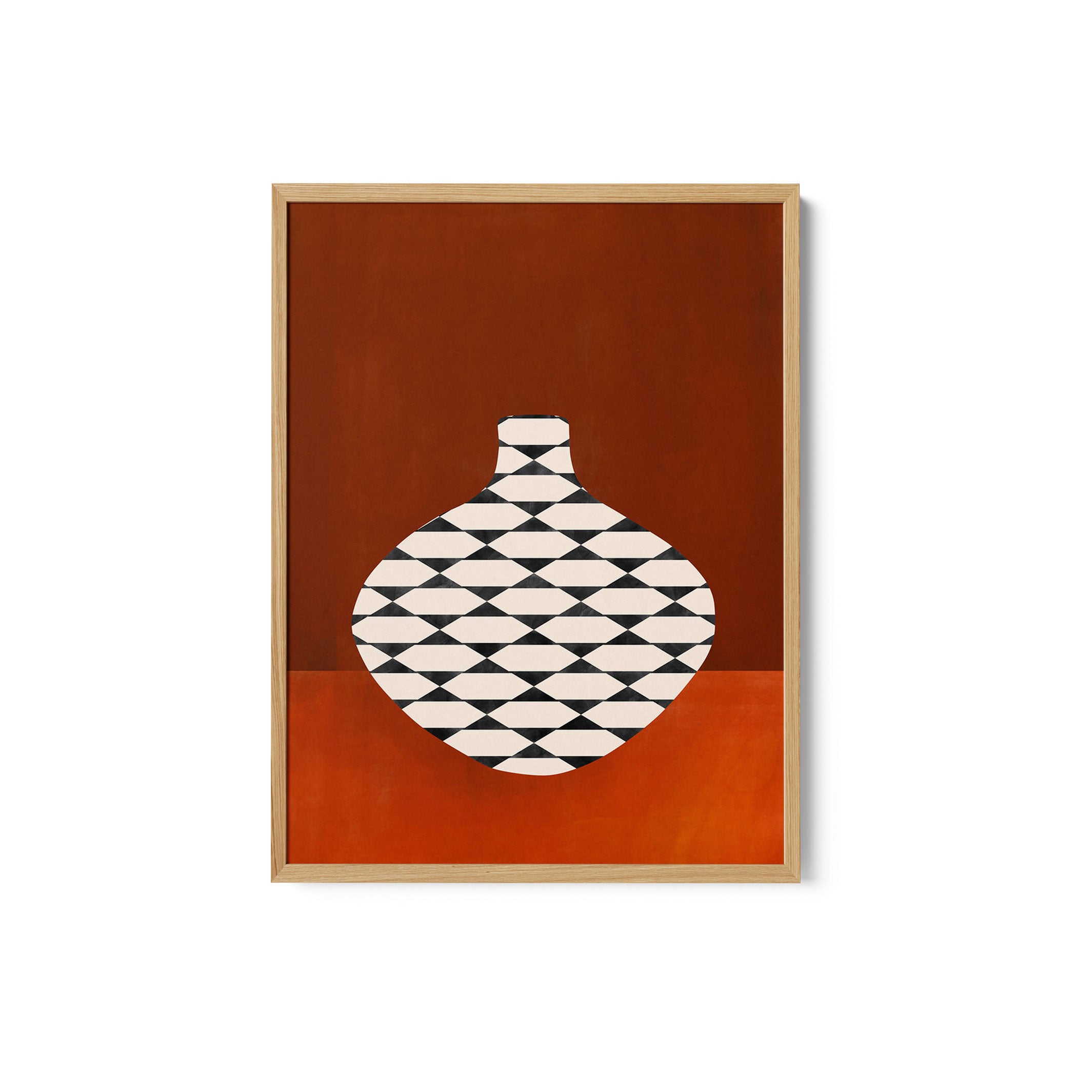 Introduce bold modern expression and imaginative visual storytelling into your space with this captivating artwork, Checkered Vase in Terracotta, from our Elena Ristova Art Prints Collection. Designed to celebrate bold illustration and imaginative narratives, this artwork blends expressive forms, dynamic shapes, and thoughtfully curated color palettes to create a striking yet balanced visual impact. Rooted in modern artistic aesthetics, it adds character, depth, and creative energy to modern, eclectic, and artistic interiors.
