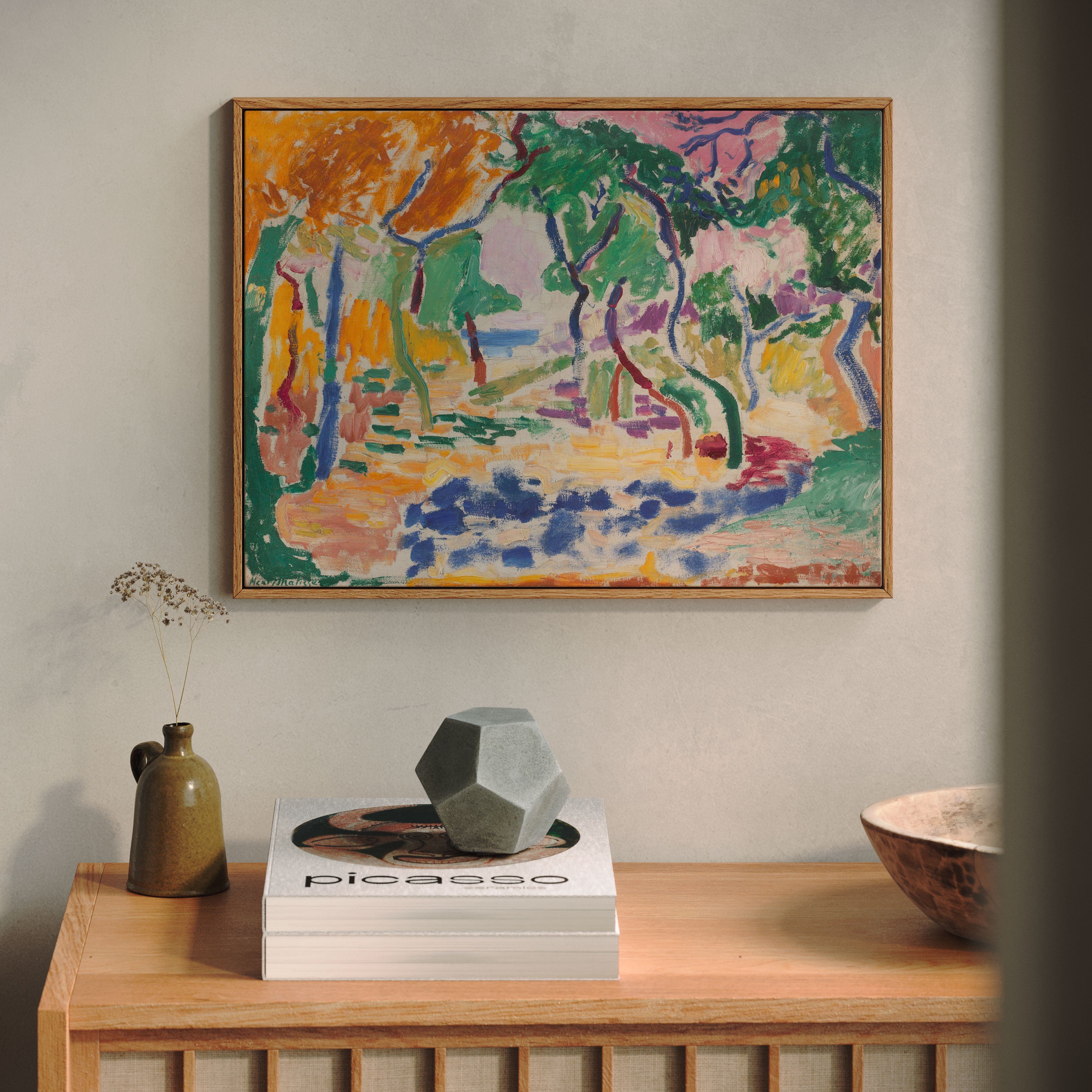 Bring elegance and harmony into your space with this beautiful artwork, The Landscape Near Collioure. Study for  The Joy of Life  1905, from our Henri Matisse Art collection. This piece reveals a serene interplay of natural light, soft color transitions, and expressive brushstrokes that capture the essence of a fleeting moment. Its gentle textures and luminous atmosphere add a peaceful and sophisticated touch to any interior, enriching your space with the quiet poetry of this iconic artistic style.