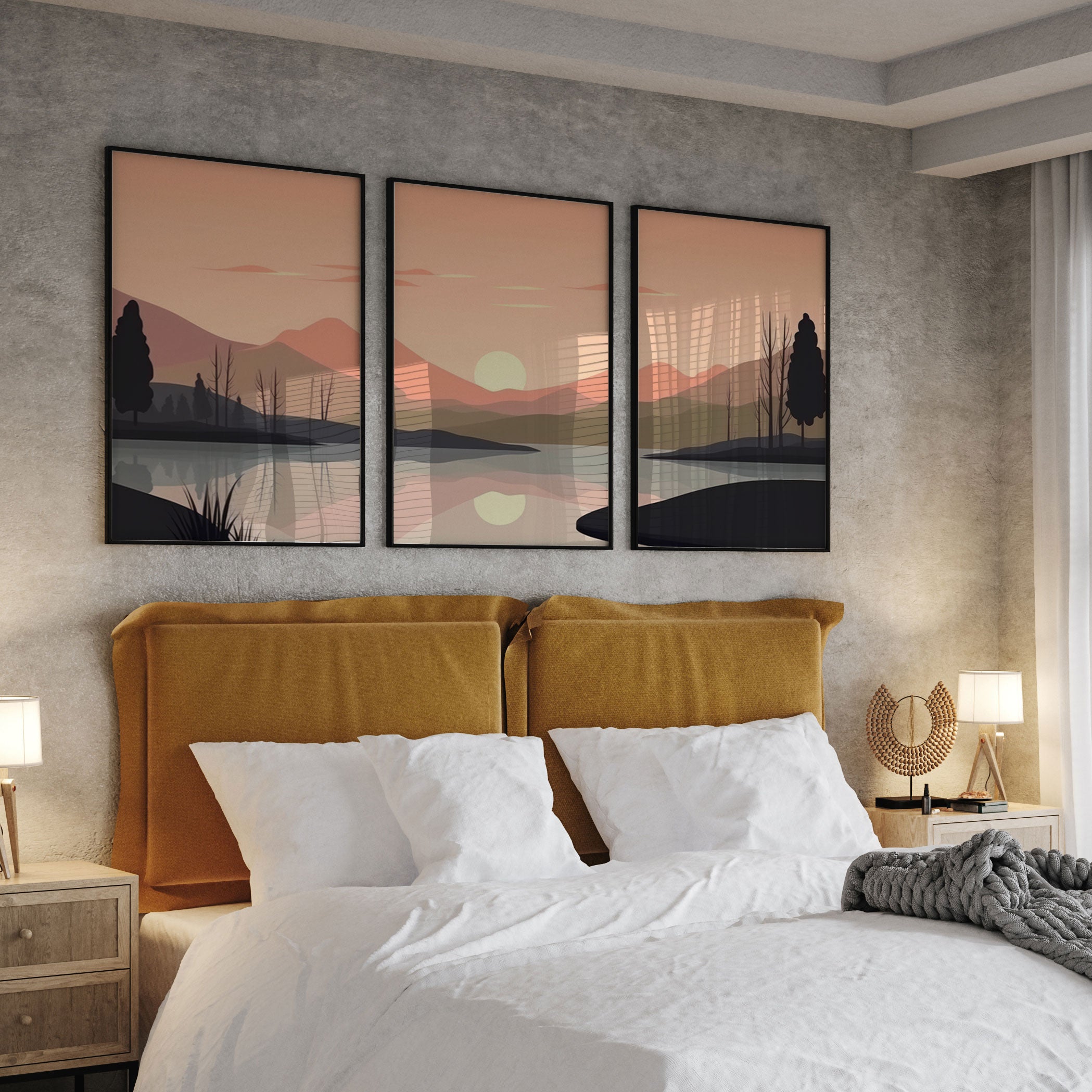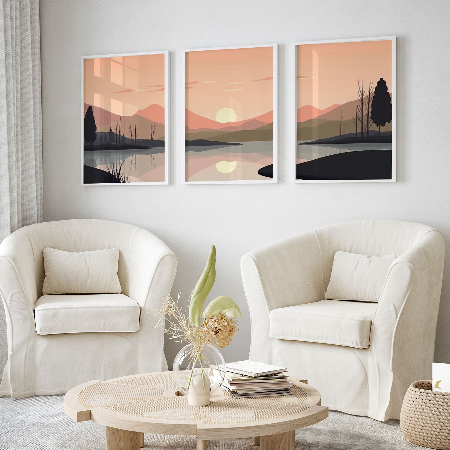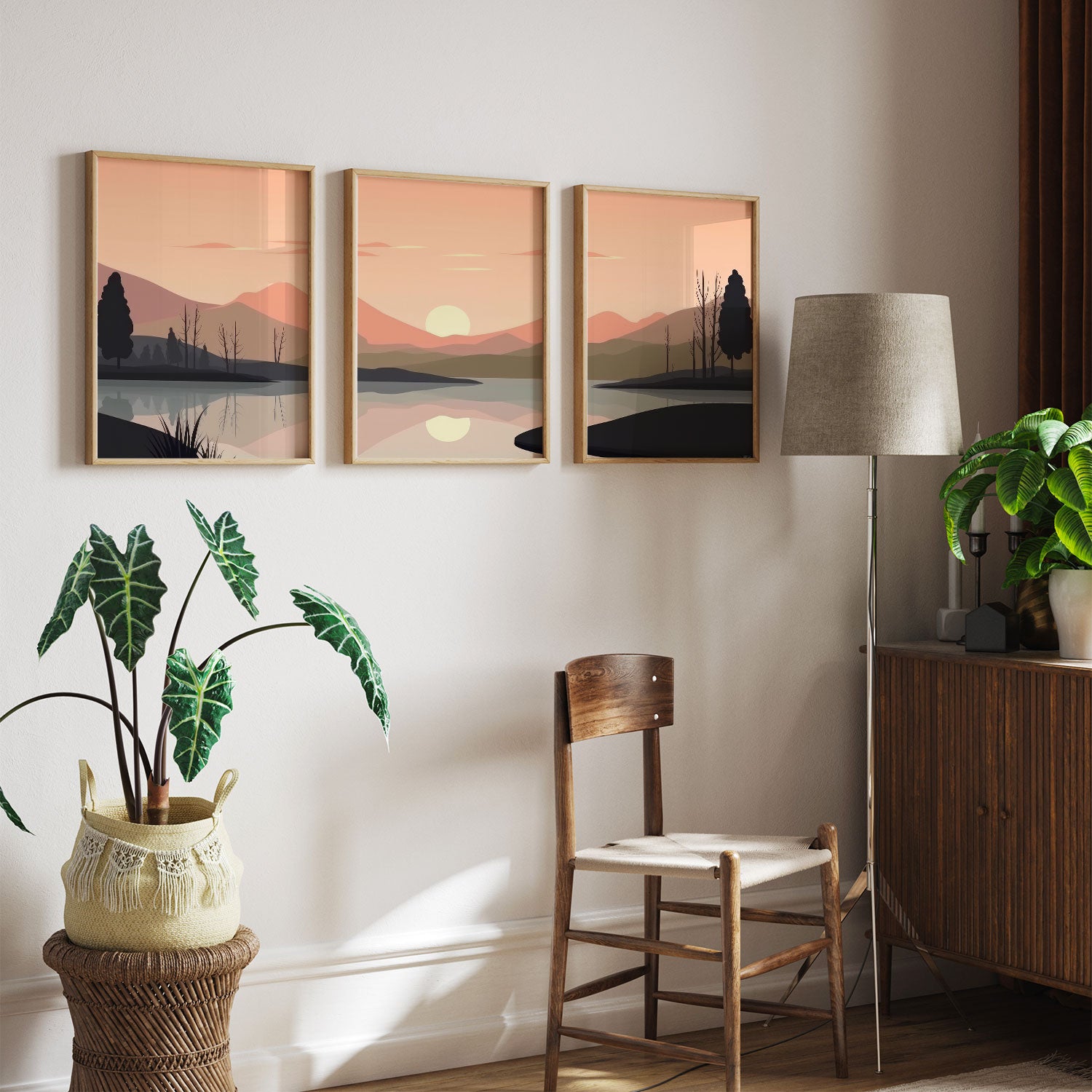 Minimalist Sunset Mountains Range - from our Set of 3 Art Prints Collection is printed on premium-quality canvas or fine art paper with a smooth matte finish and vibrant, long-lasting colors that bring each detail to life. These Set of 3 Wall Art Prints are made with exceptional color clarity and precision, following the same high standards used by professional galleries and art studios. Perfect for art lovers or anyone looking to add a touch of modern botanical elegance to their space, these prints look stunning in any bedroom, living room, bathroom, balcony, or office. Get inspired by our designer-curated art sets, and complete your space with handmade, custom frames crafted in-house for a beautifully finished look.