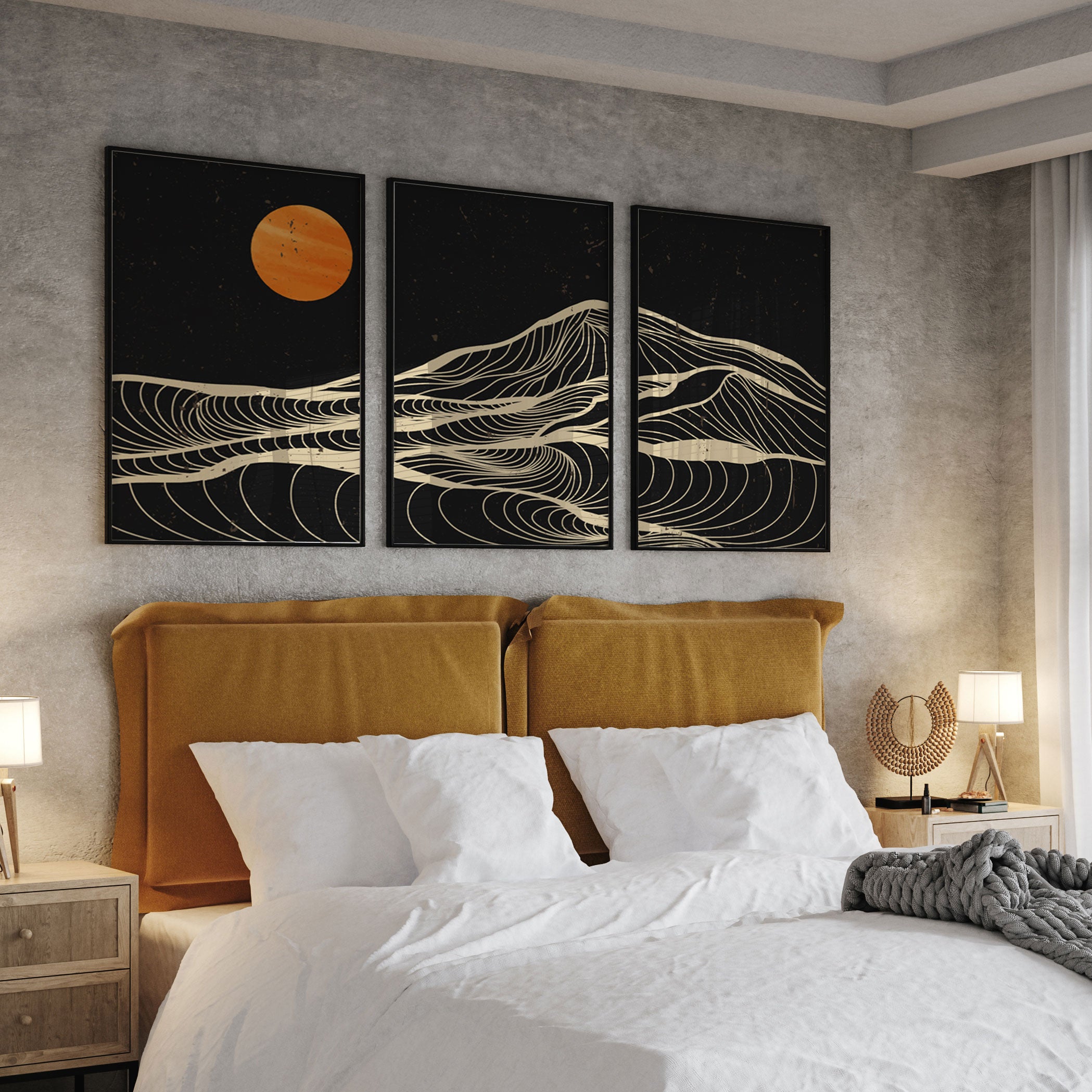 Modern Minimalist Midnight - from our Set of 3 Art Prints Collection is printed on premium-quality canvas or fine art paper with a smooth matte finish and vibrant, long-lasting colors that bring each detail to life. These Set of 3 Wall Art Prints are made with exceptional color clarity and precision, following the same high standards used by professional galleries and art studios. Perfect for art lovers or anyone looking to add a touch of modern botanical elegance to their space, these prints look stunning in any bedroom, living room, bathroom, balcony, or office. Get inspired by our designer-curated art sets, and complete your space with handmade, custom frames crafted in-house for a beautifully finished look.