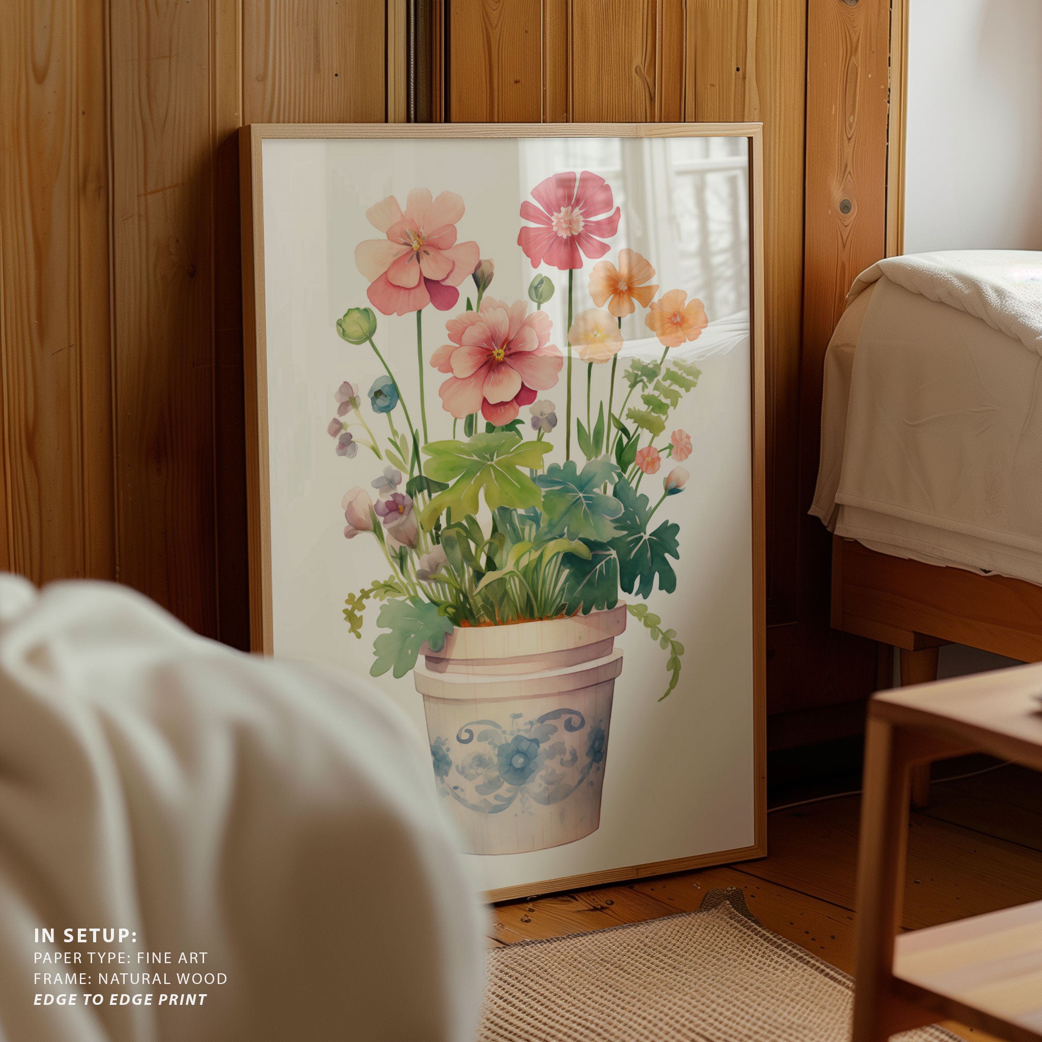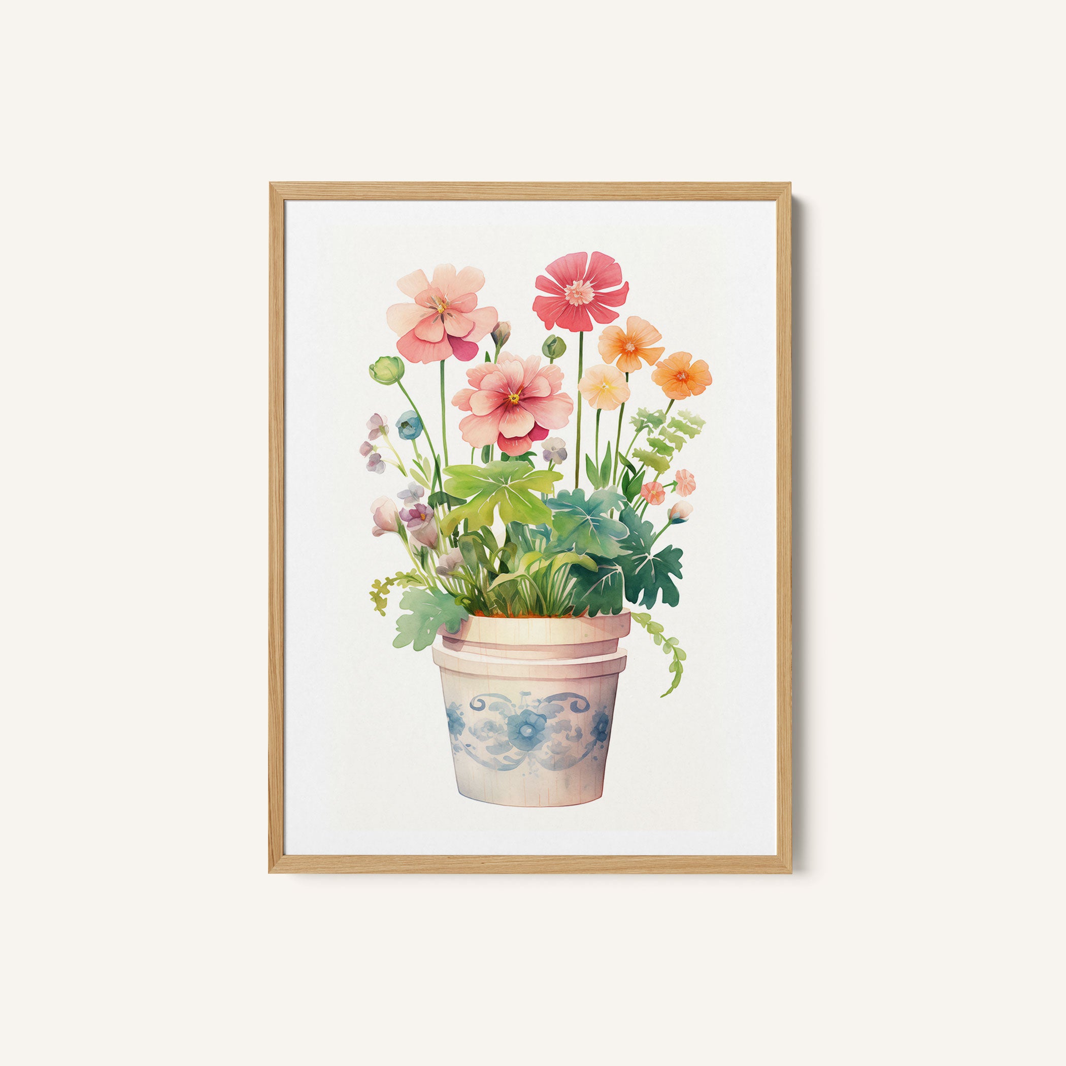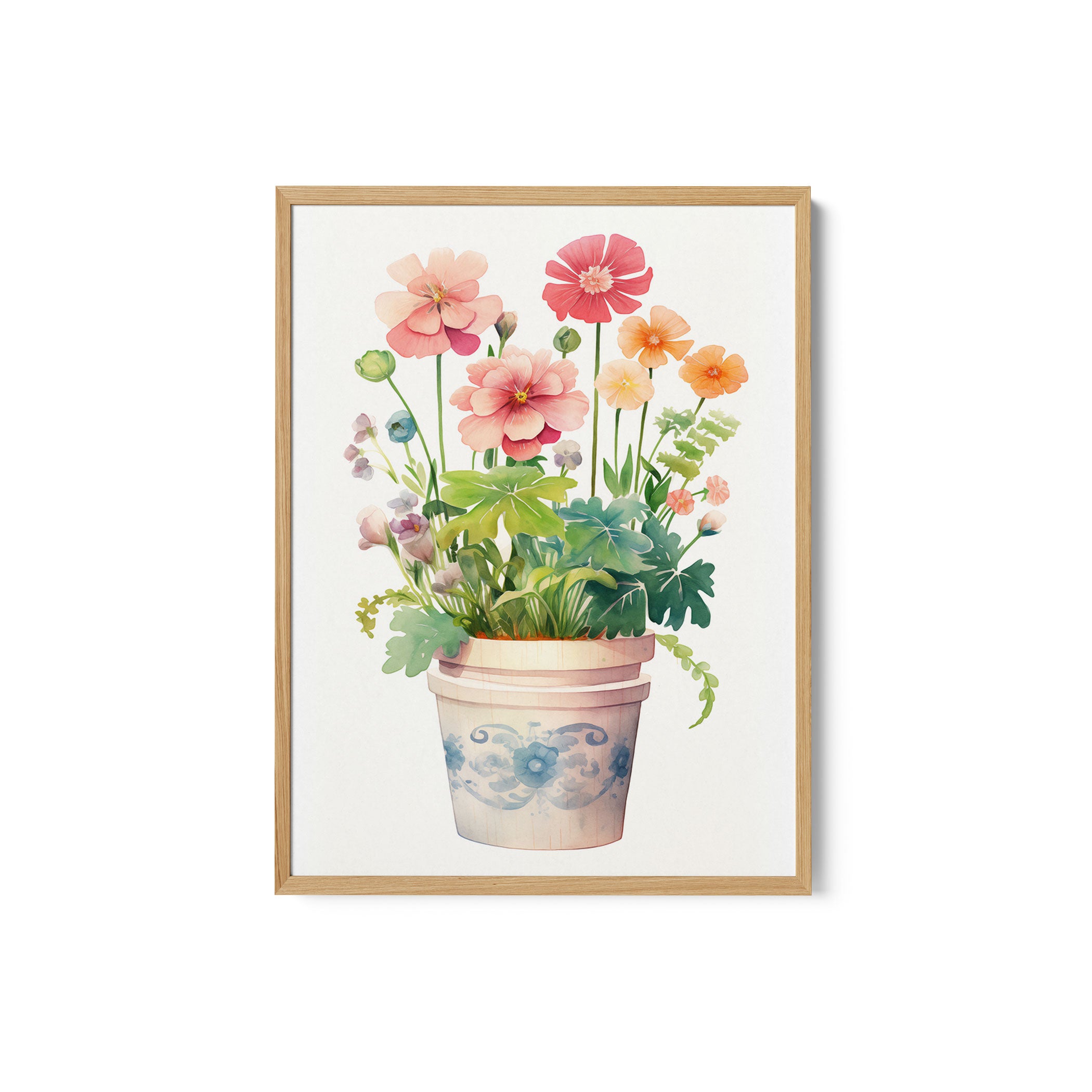 Elevate your space with the serene beauty of nature’s blooms. This art print, A Orange and Pink Flowers in a Decorative Pot, from our Botanical Art Print Collection celebrates organic forms and botanical grace, layering lush floral tones in a carefully curated palette that brings a calm, natural vibrancy to any room. Bring the gentle elegance of nature into your space with this captivating art print.