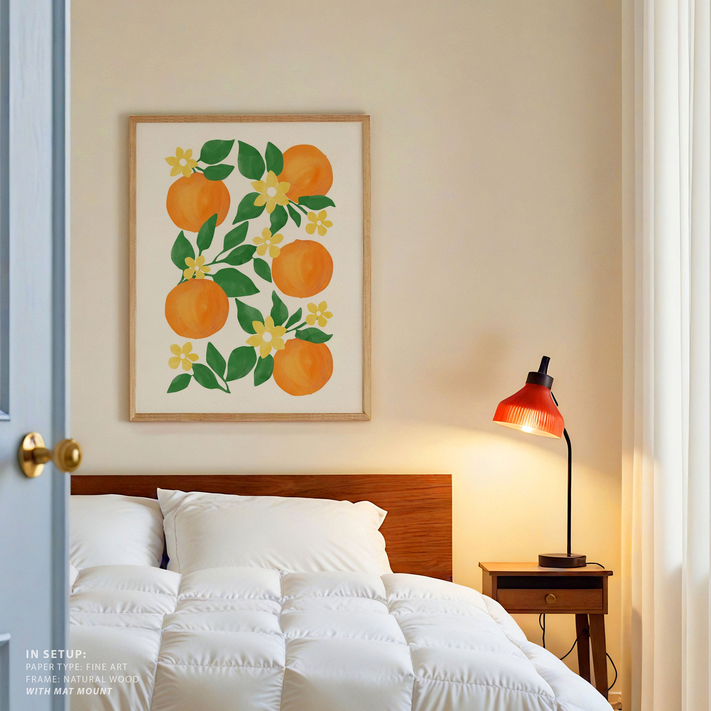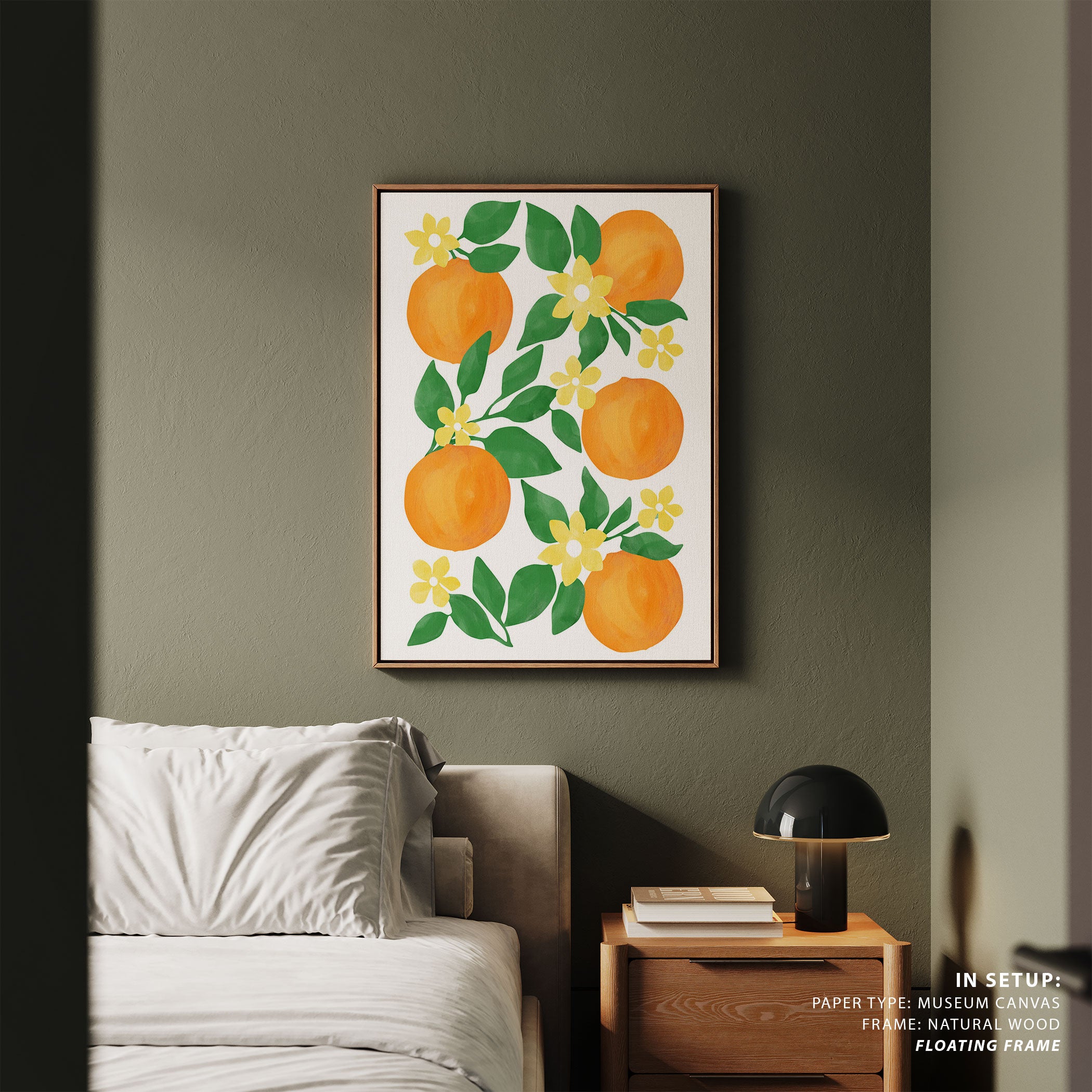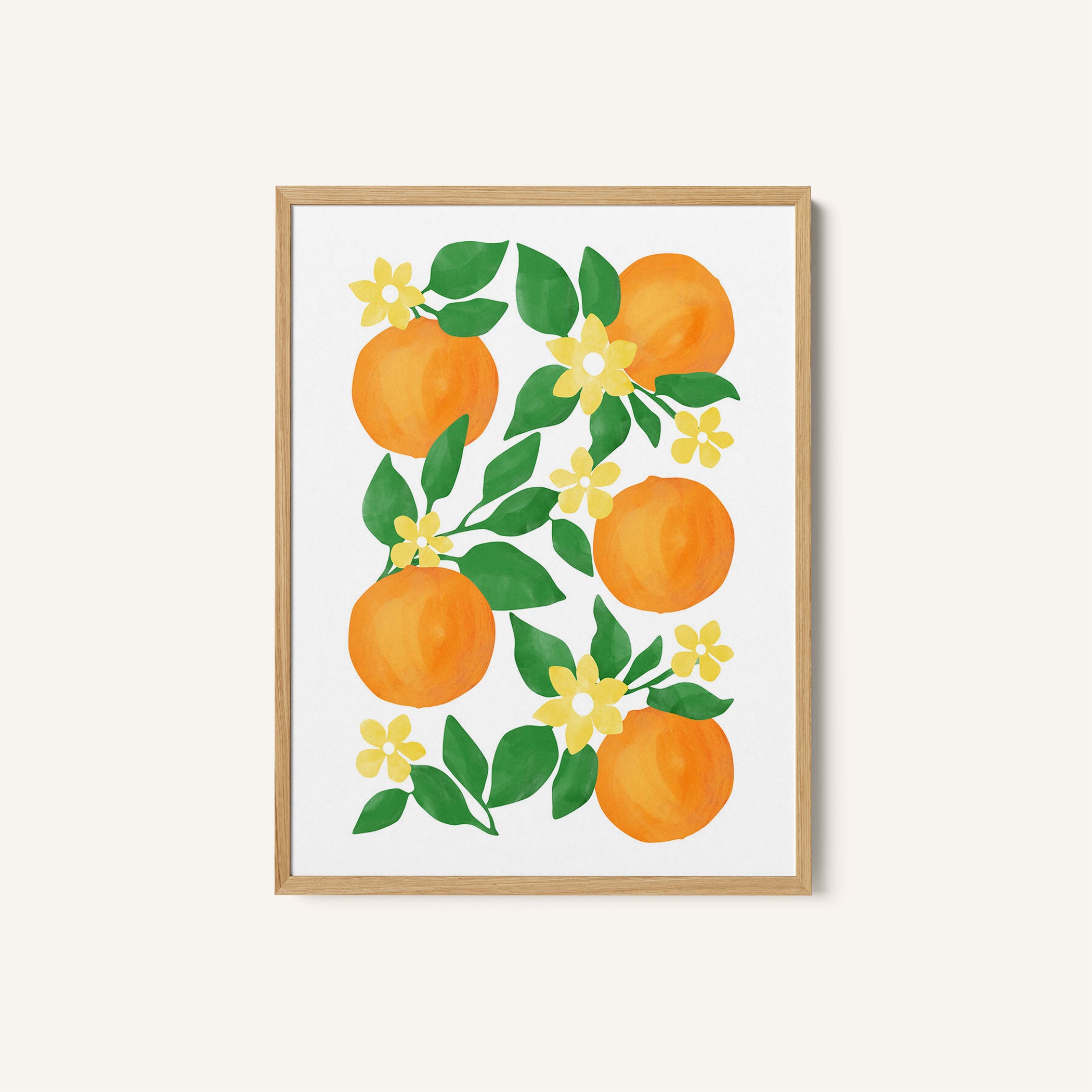 Introduce bold modern expression and imaginative visual storytelling into your space with this captivating artwork, Oranges with Green Leaves and Delicate Yellow Flowers, from our Elena Ristova Art Prints Collection. Designed to celebrate bold illustration and imaginative narratives, this artwork blends expressive forms, dynamic shapes, and thoughtfully curated color palettes to create a striking yet balanced visual impact. Rooted in modern artistic aesthetics, it adds character, depth, and creative energy to modern, eclectic, and artistic interiors.