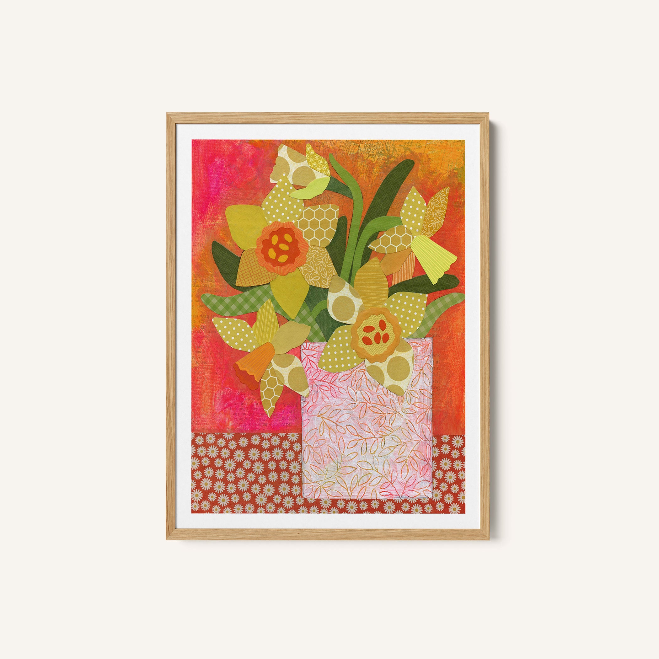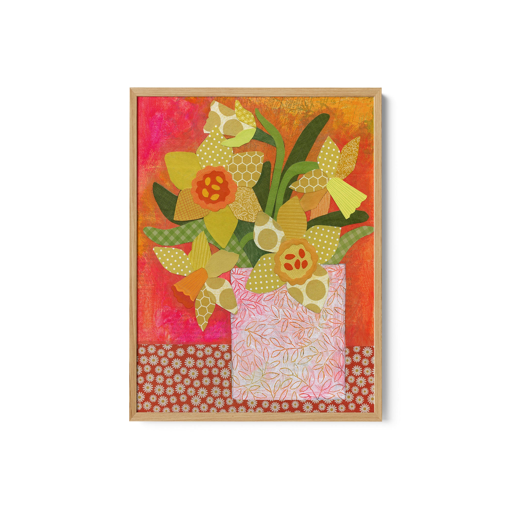 Elevate your space with the serene beauty of nature’s blooms. This art print, A Patchwork Daffodil Still Life, from our Botanical Art Print Collection celebrates organic forms and botanical grace, layering lush floral tones in a carefully curated palette that brings a calm, natural vibrancy to any room. Bring the gentle elegance of nature into your space with this captivating art print.