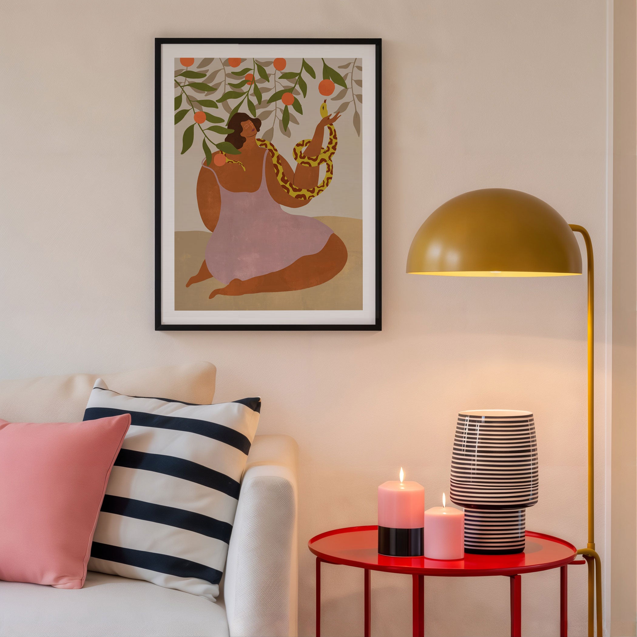 Infuse your space with modern expression and artistic storytelling through this captivating artwork, Smell the Orange, from our Arty Guava Art Prints Collection. Designed to celebrate bold illustration and imaginative narratives, this artwork blends expressive figures, dynamic forms, and thoughtfully curated color palettes to create a striking yet balanced visual impact. Rooted in contemporary and folk-inspired aesthetics, it adds character, depth, and creative energy to modern, eclectic, artistic, and contemporary interiors.