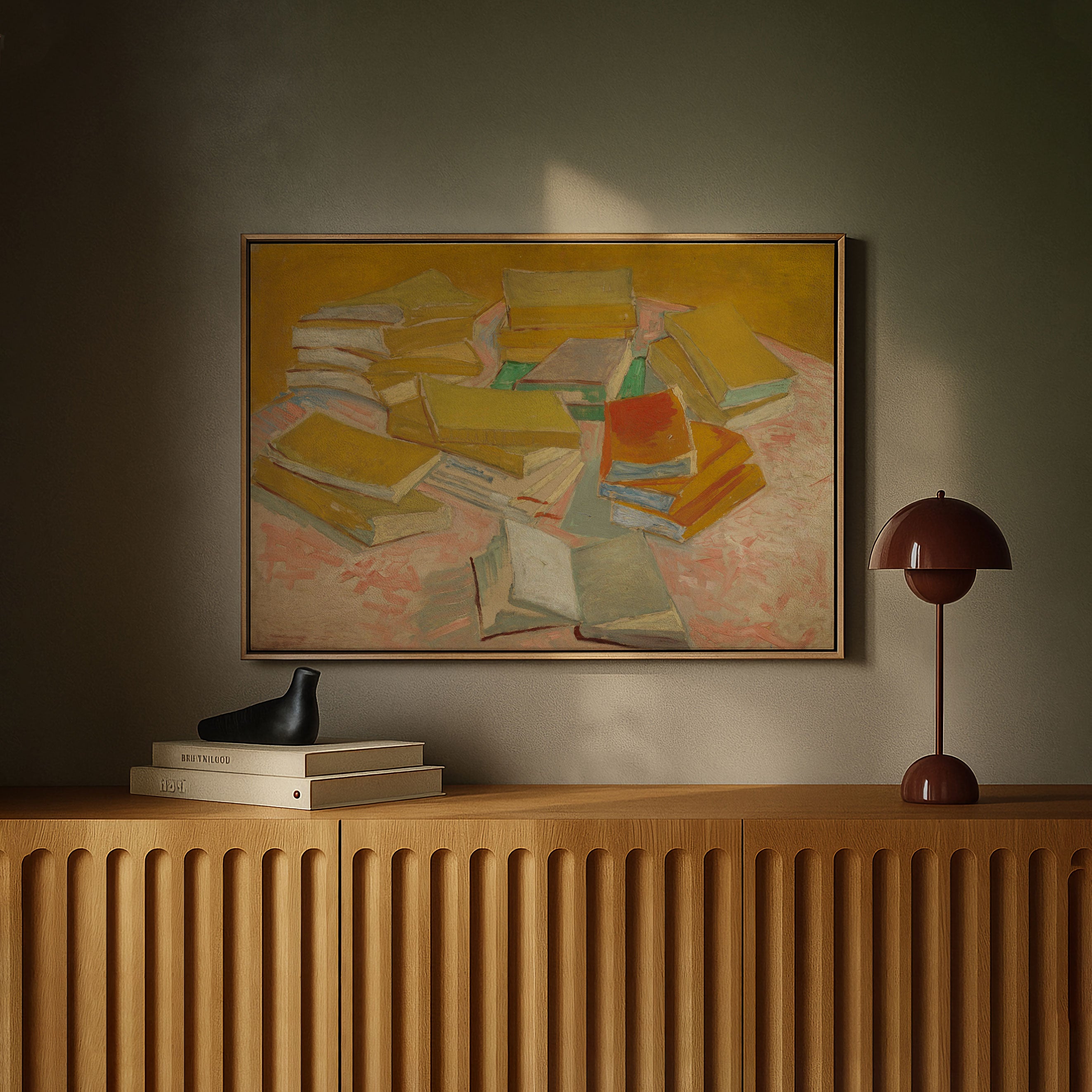 Bring elegance and harmony into your space with this beautiful artwork, Stacks of French Novels, from our Vincent Van Gogh Art Prints Collection. This piece reveals a quiet yet compelling interplay of rich tones, gentle shapes, and expressive brushwork that captures both warmth and depth. Subtle painting details, classic art textures, and refined color transitions enhance its enduring charm. Its balanced contrasts and serene atmosphere introduce a thoughtful and artistic presence to any interior, enriching your space with the timeless poetry of this iconic artistic style.
