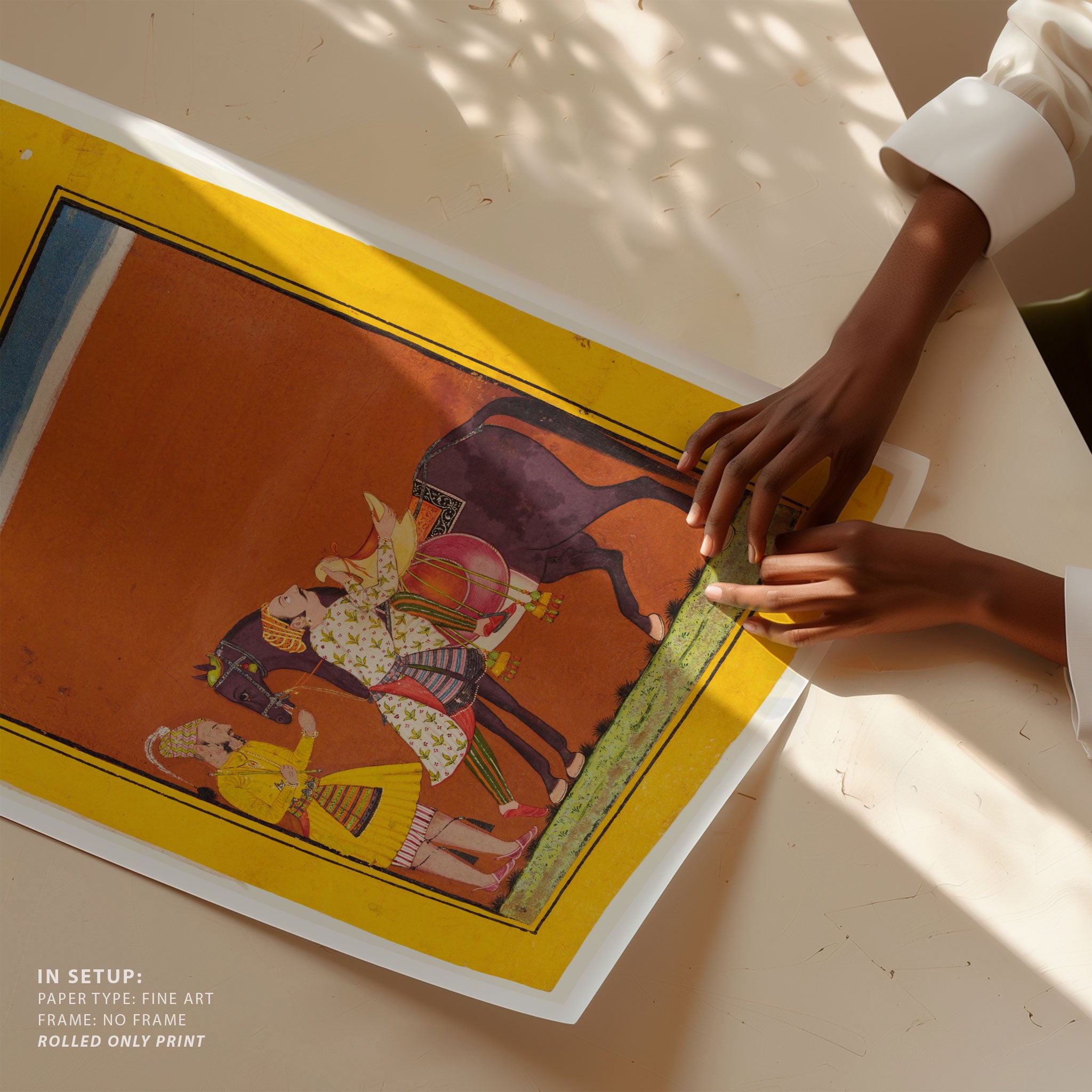 Bring elegance and cultural harmony into your space with this beautiful artwork, The Warrior Mounting His Steed, from our Classical Indian Art Collection. This timeless artwork features expressive figures, symbolic motifs, intricate detailing, and harmonious compositions inspired by India’s rich artistic traditions. Perfect for traditional, heritage, eclectic, and contemporary interiors, Indian folk and classical wall art adds depth, warmth, and a sense of history and storytelling to every interior.