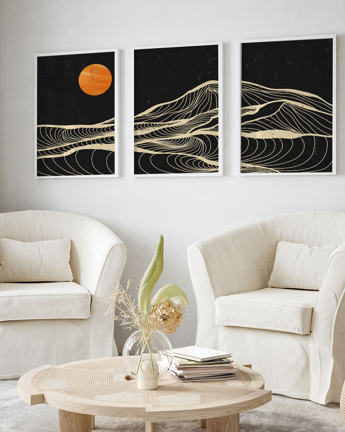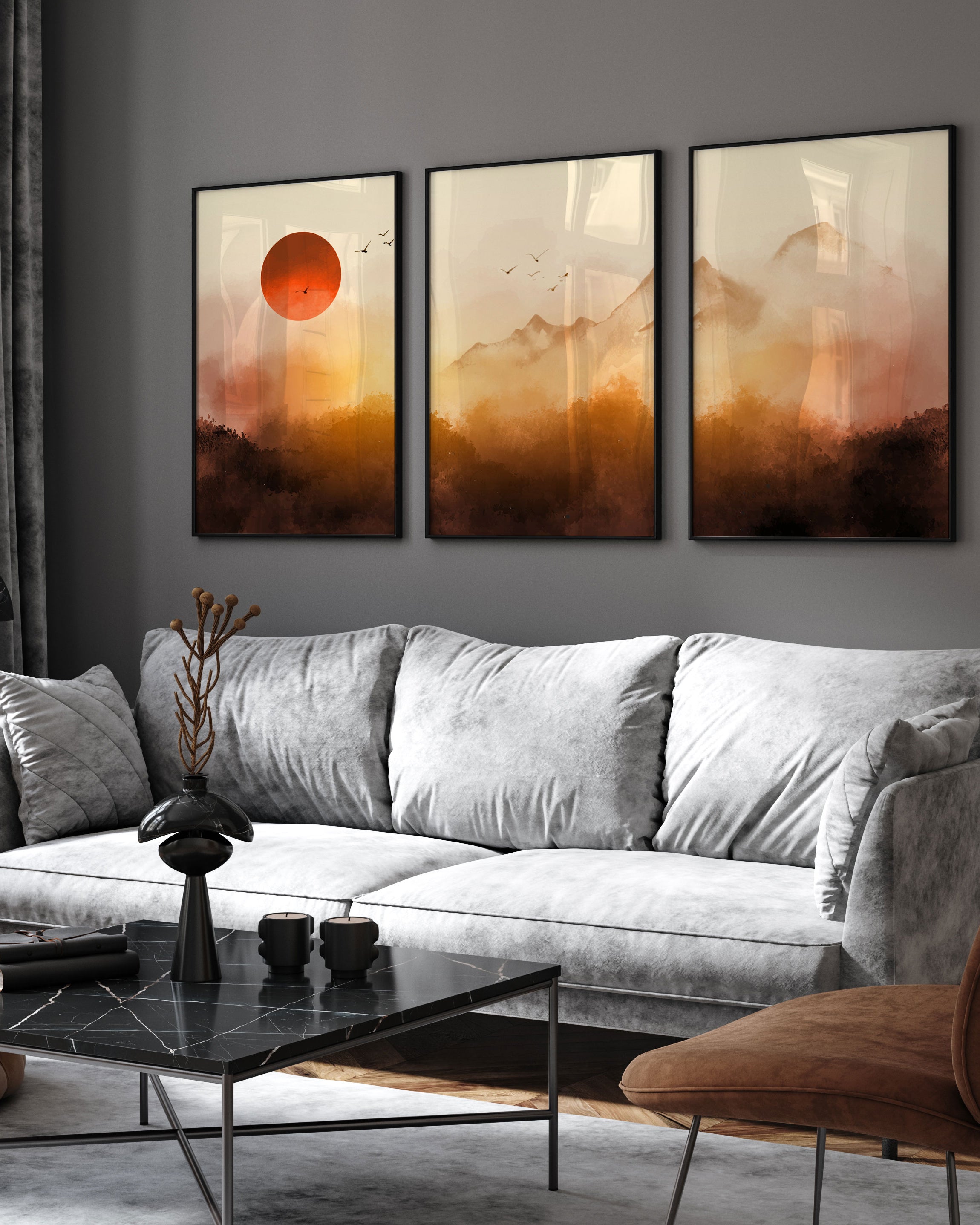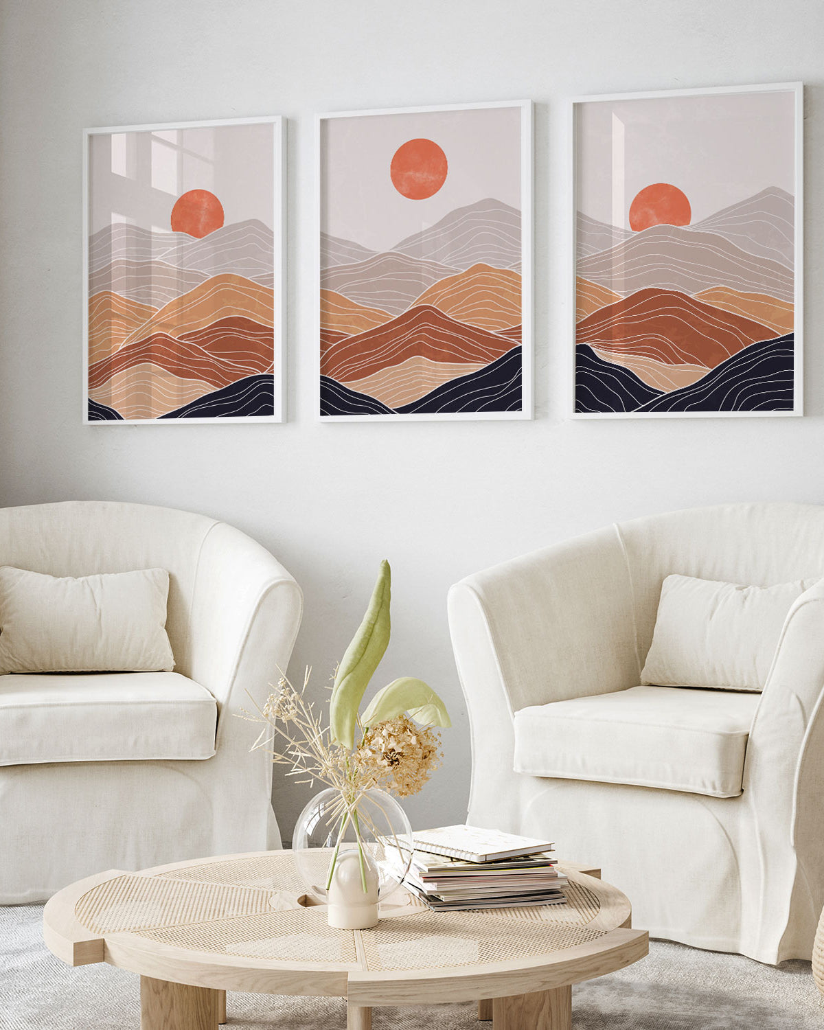 From soft terracotta and burnt orange tones to vibrant tangerine and rust hues, orange art prints offer warmth and personality.