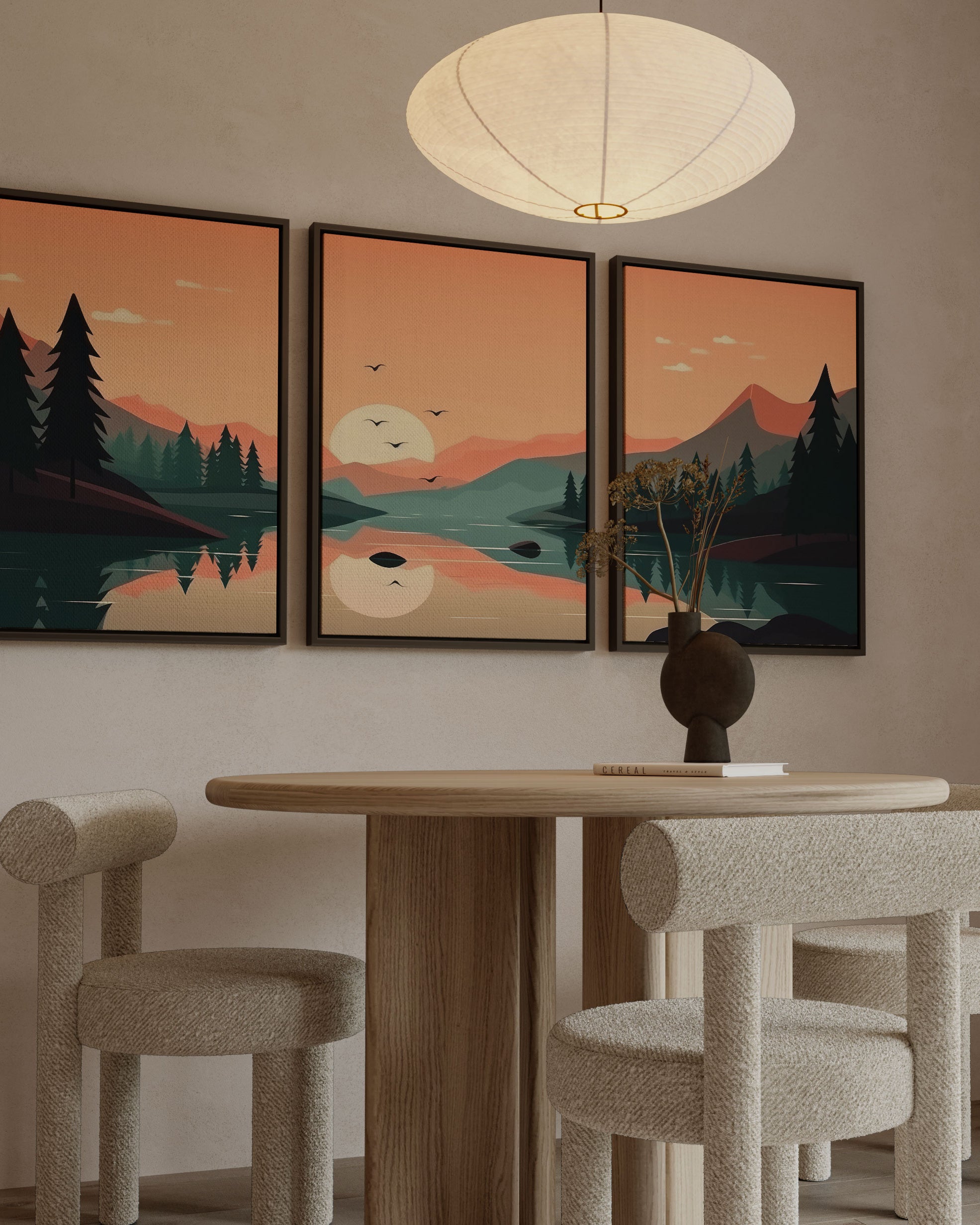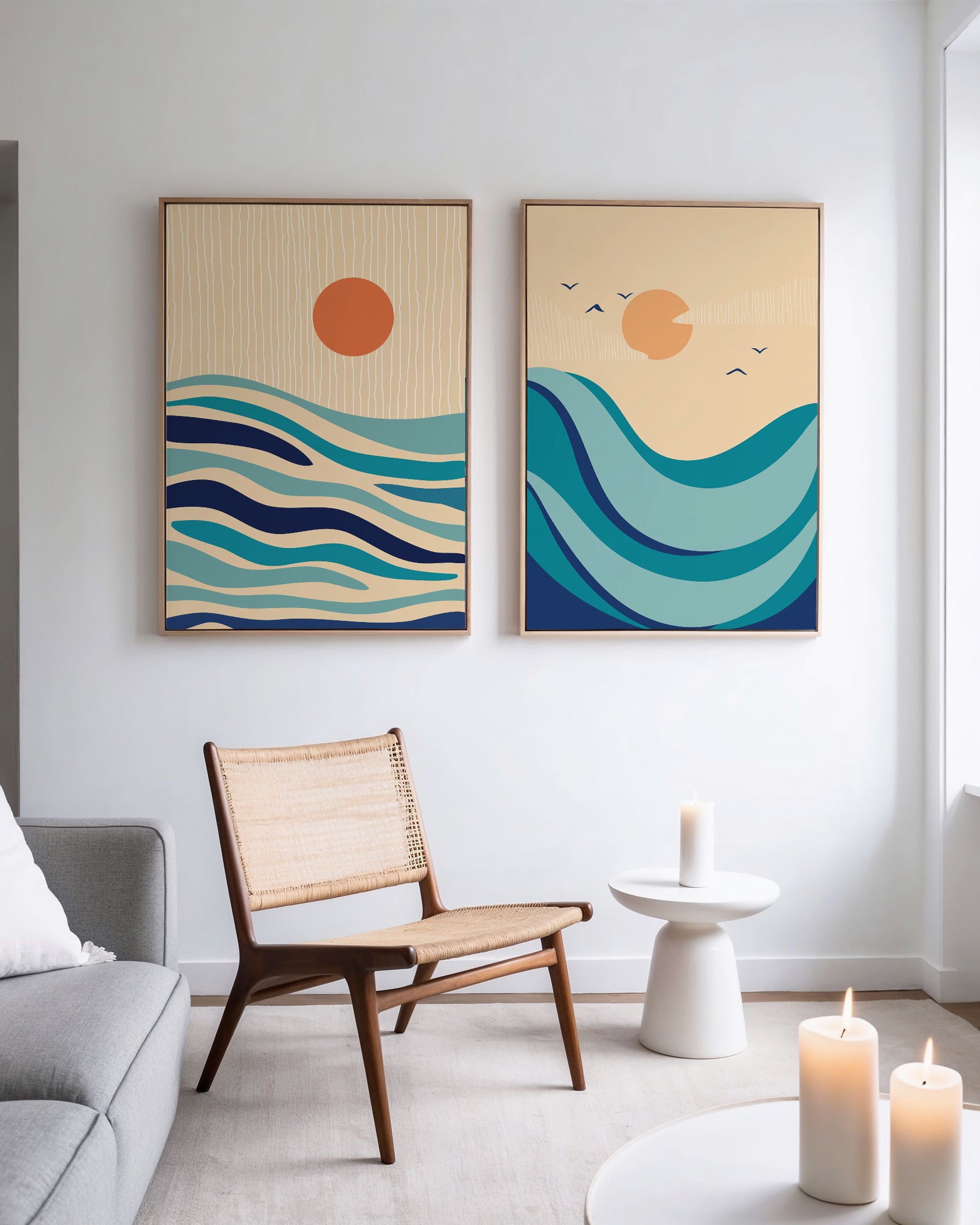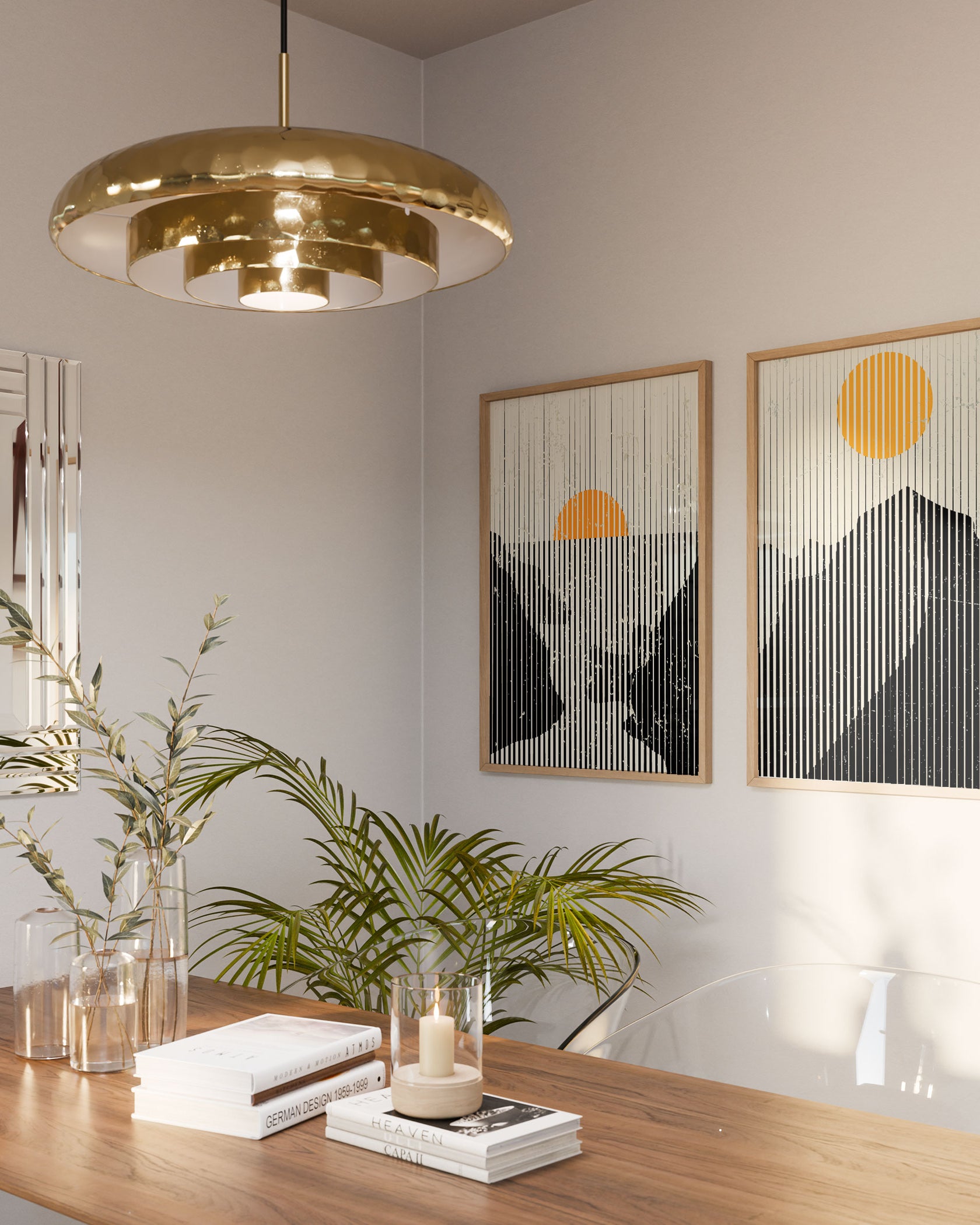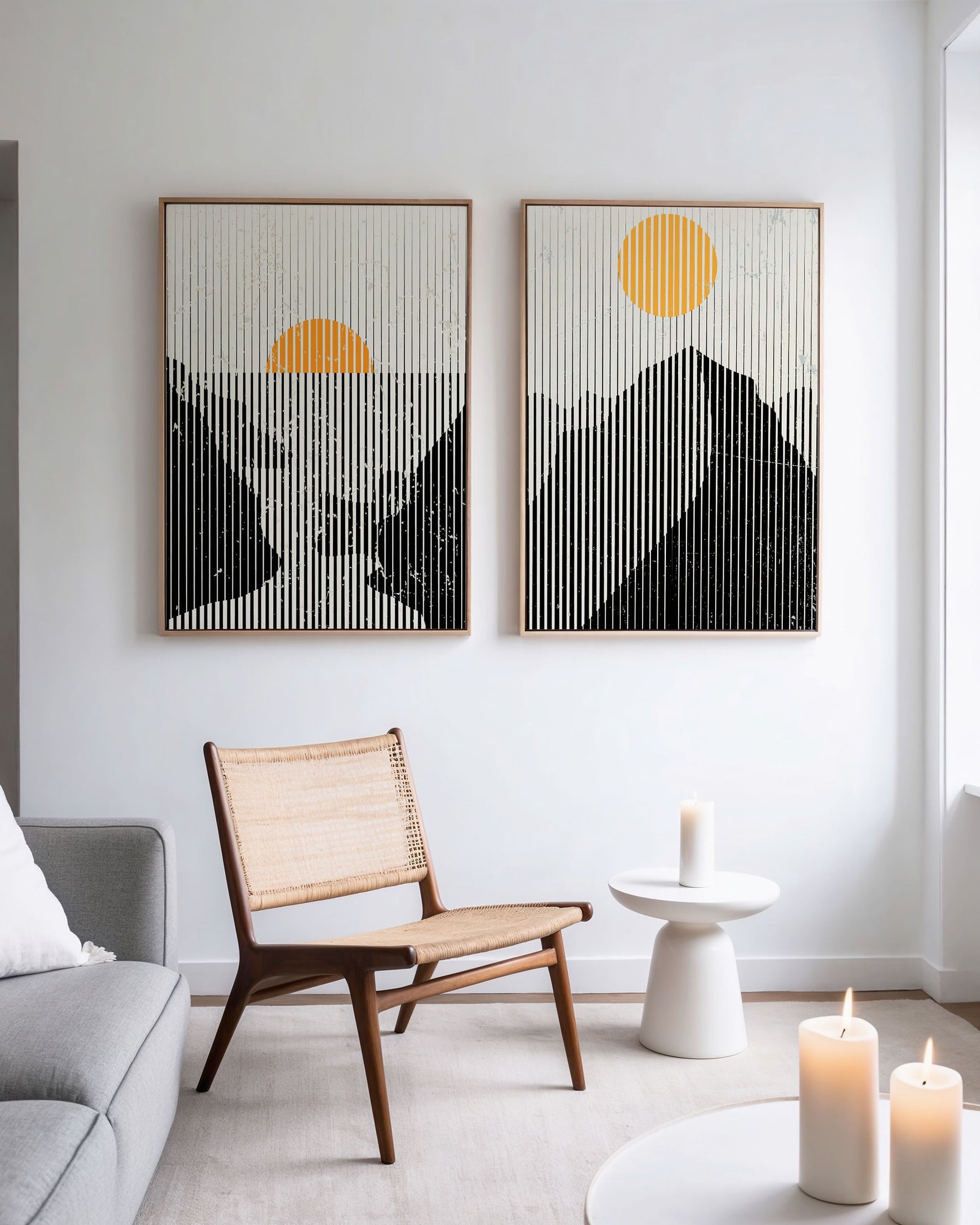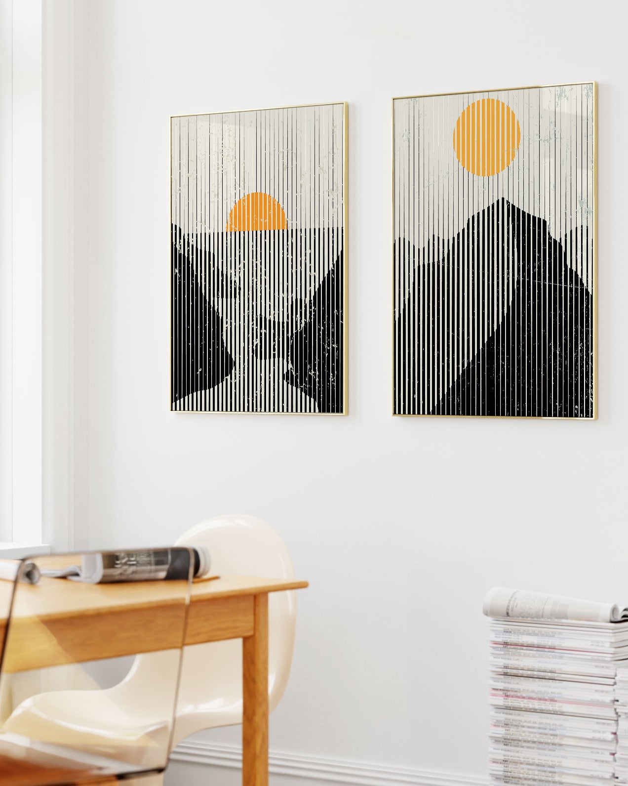 Orange art prints bring energy and character, making interiors feel thoughtfully styled.
