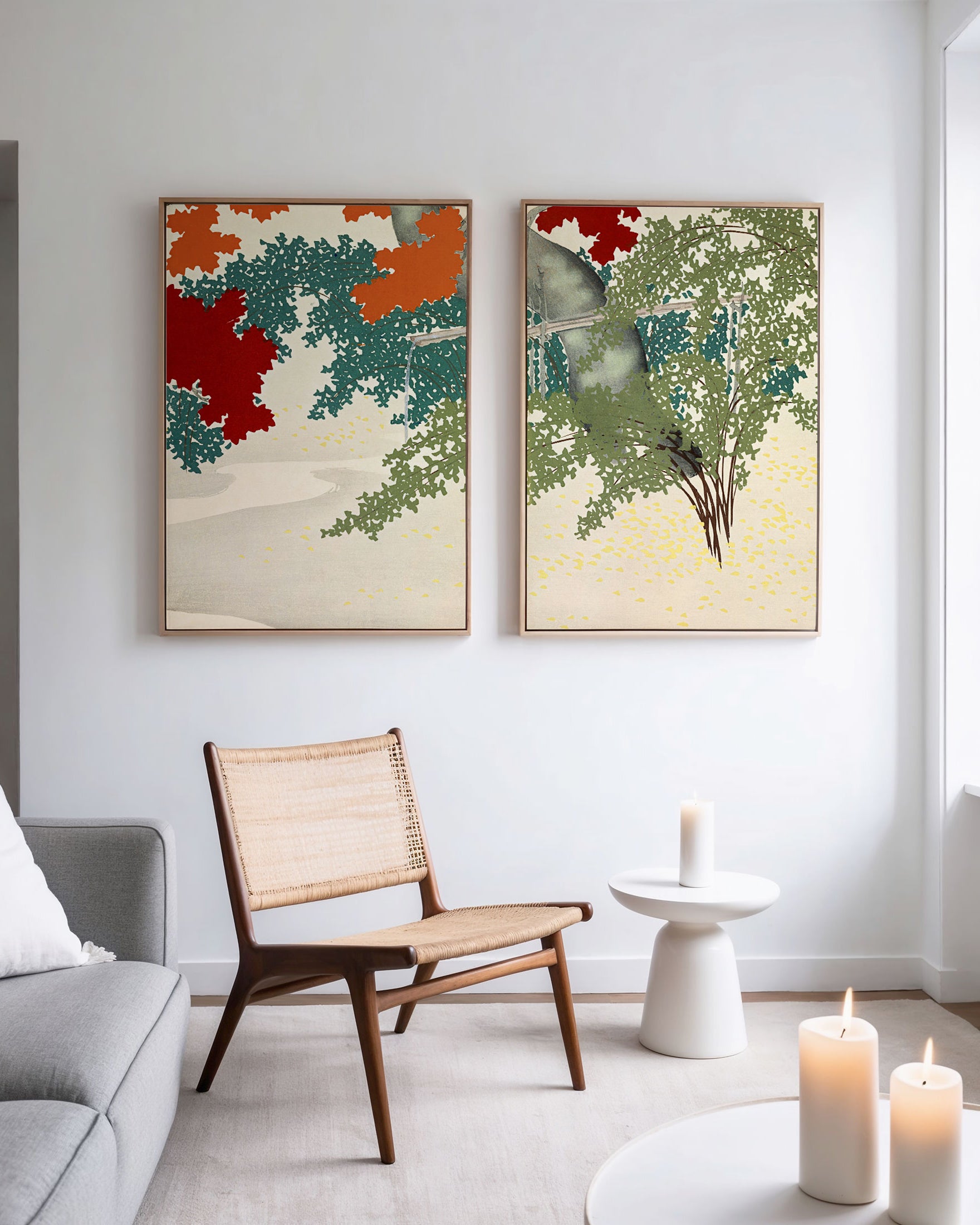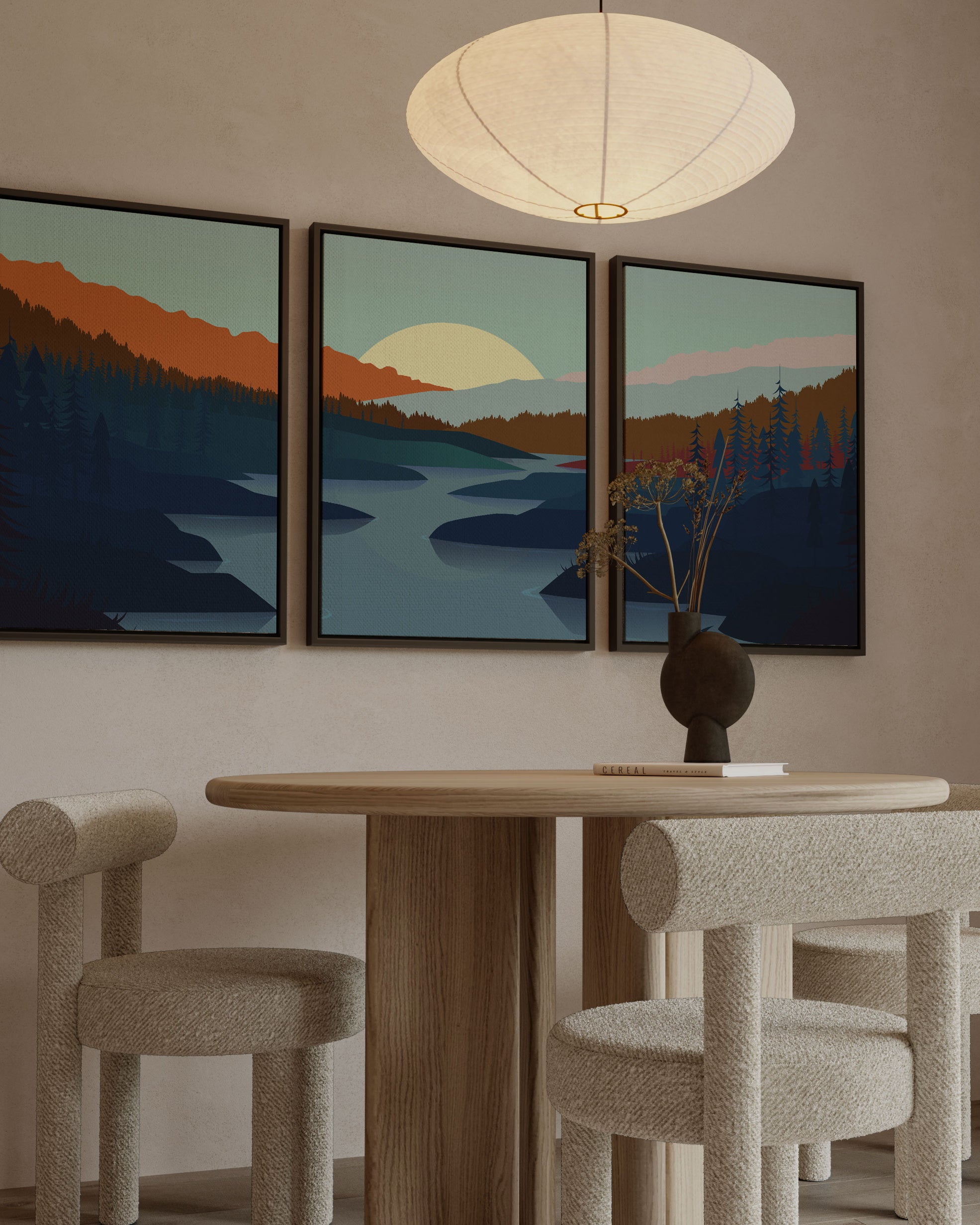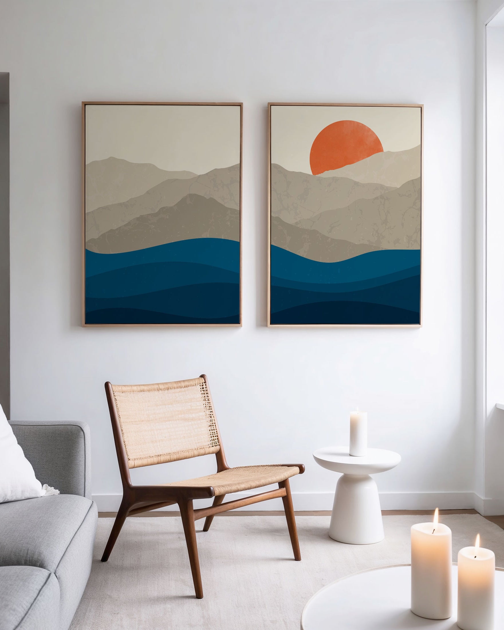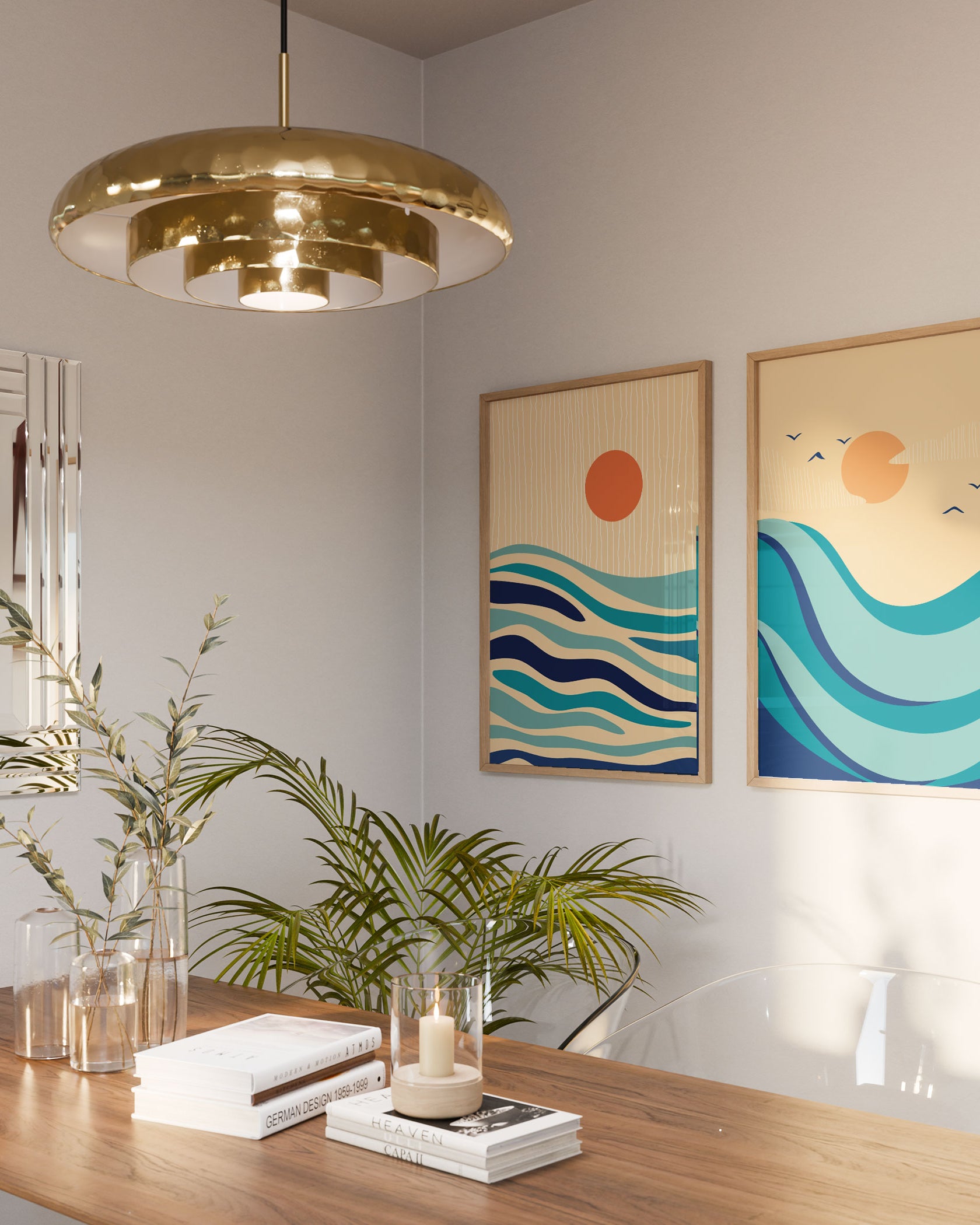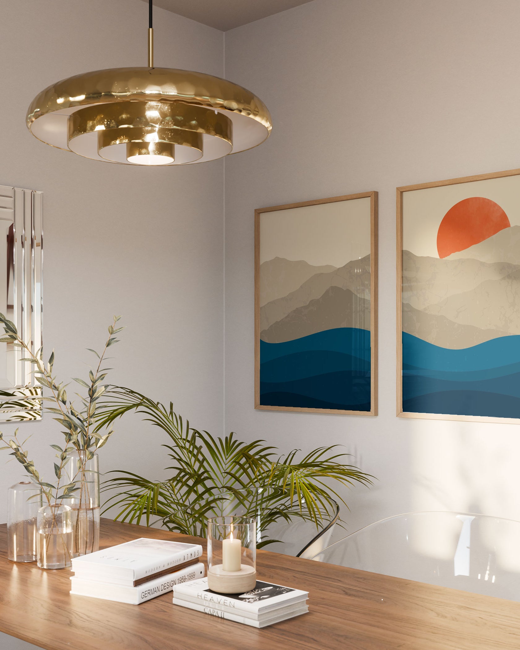 Orange art prints bring energy and character, making interiors feel thoughtfully styled.