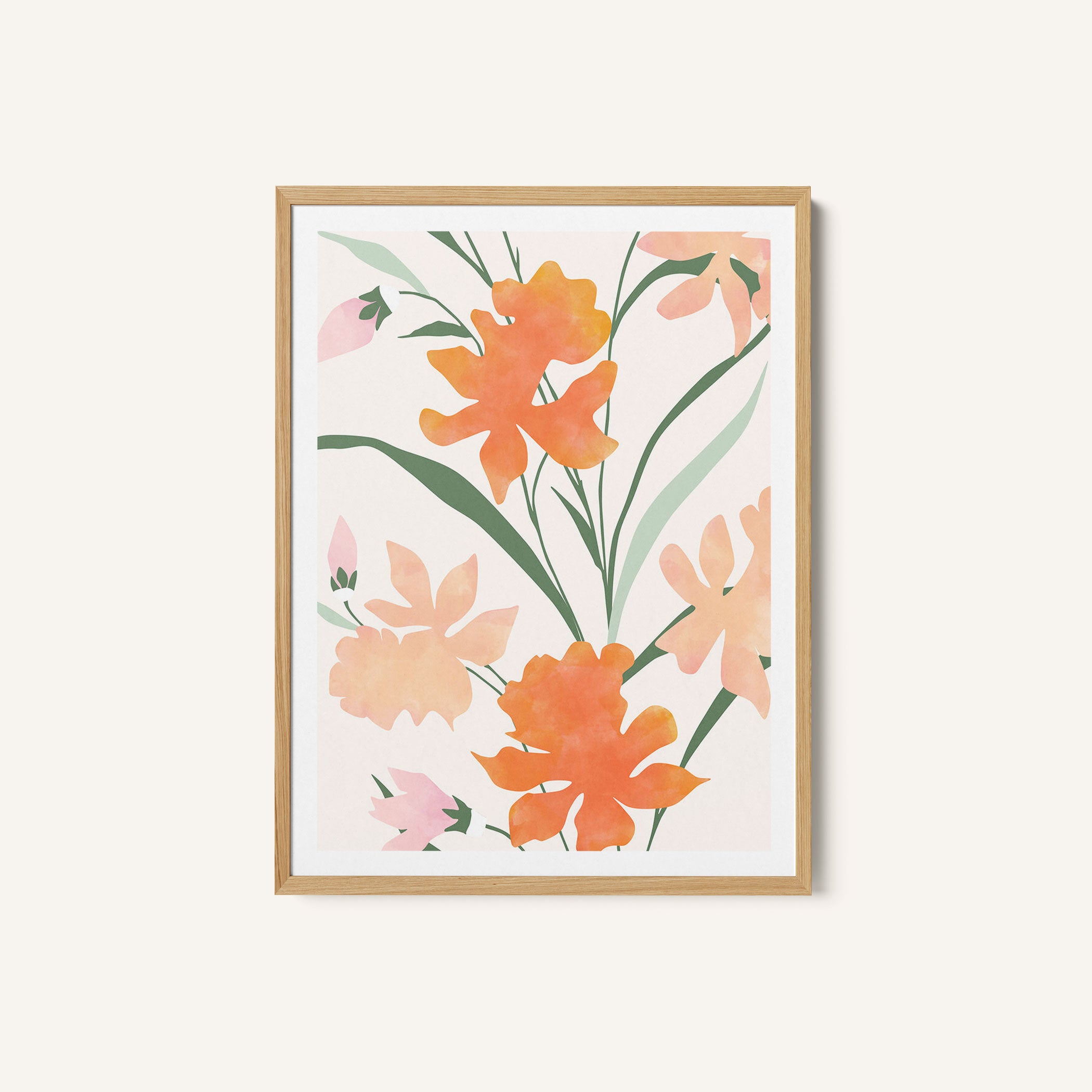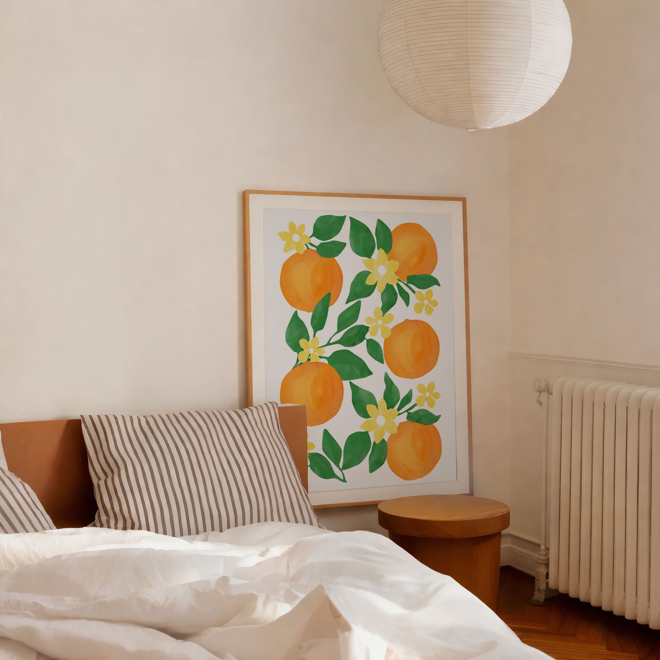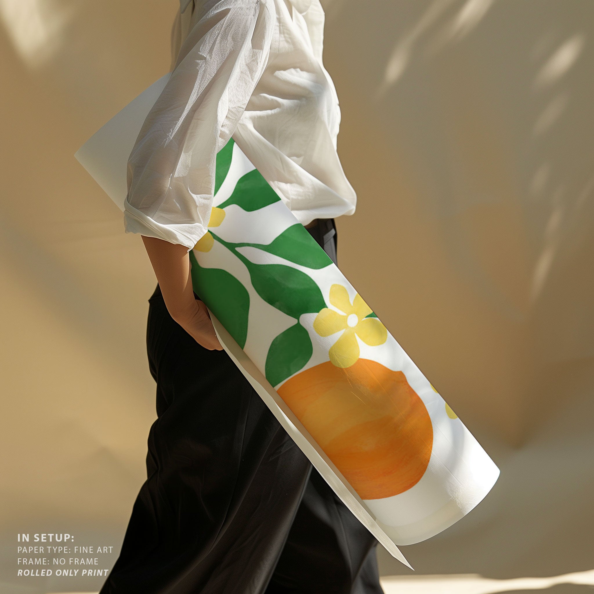 Oranges with Green Leaves and Delicate Yellow Flowers