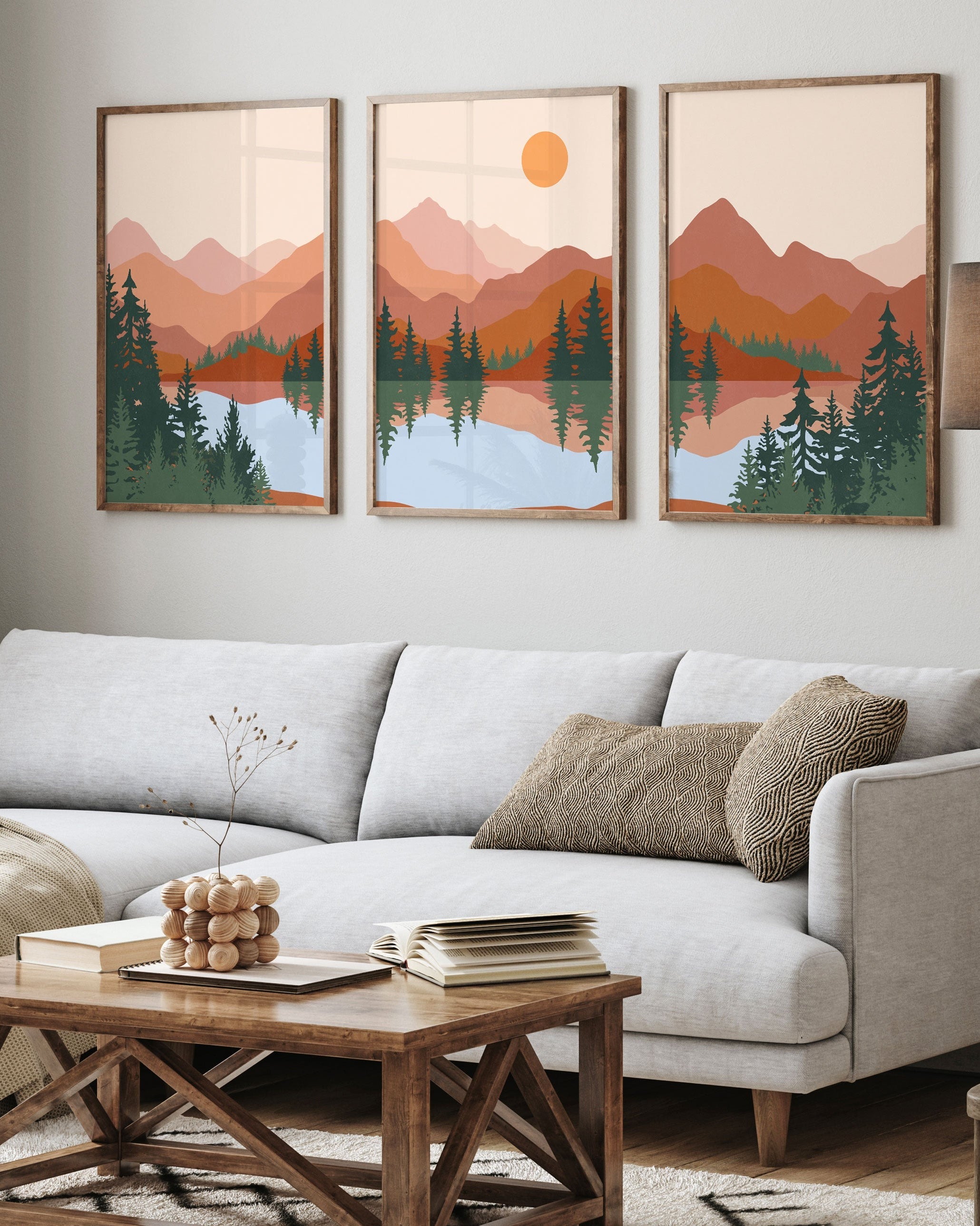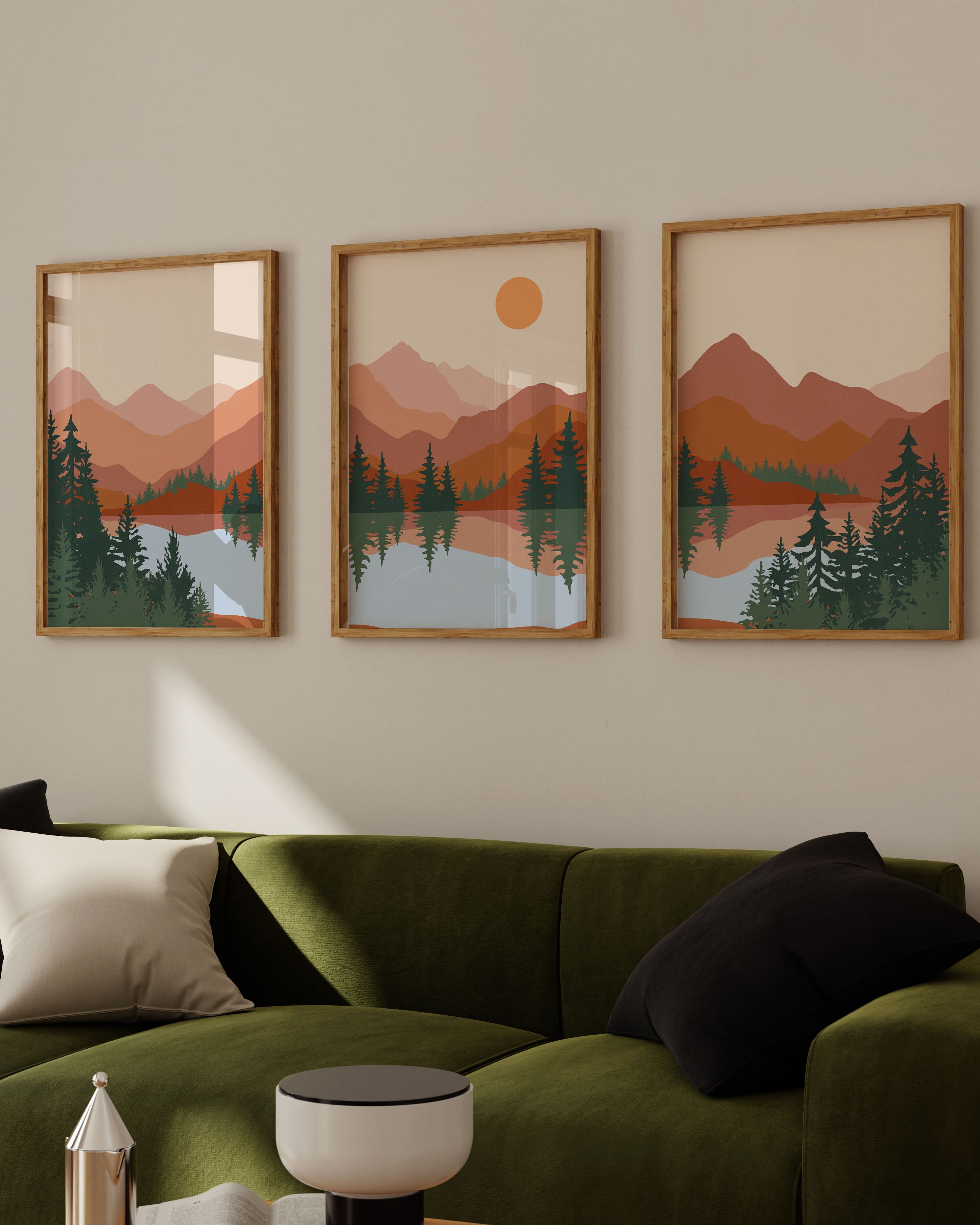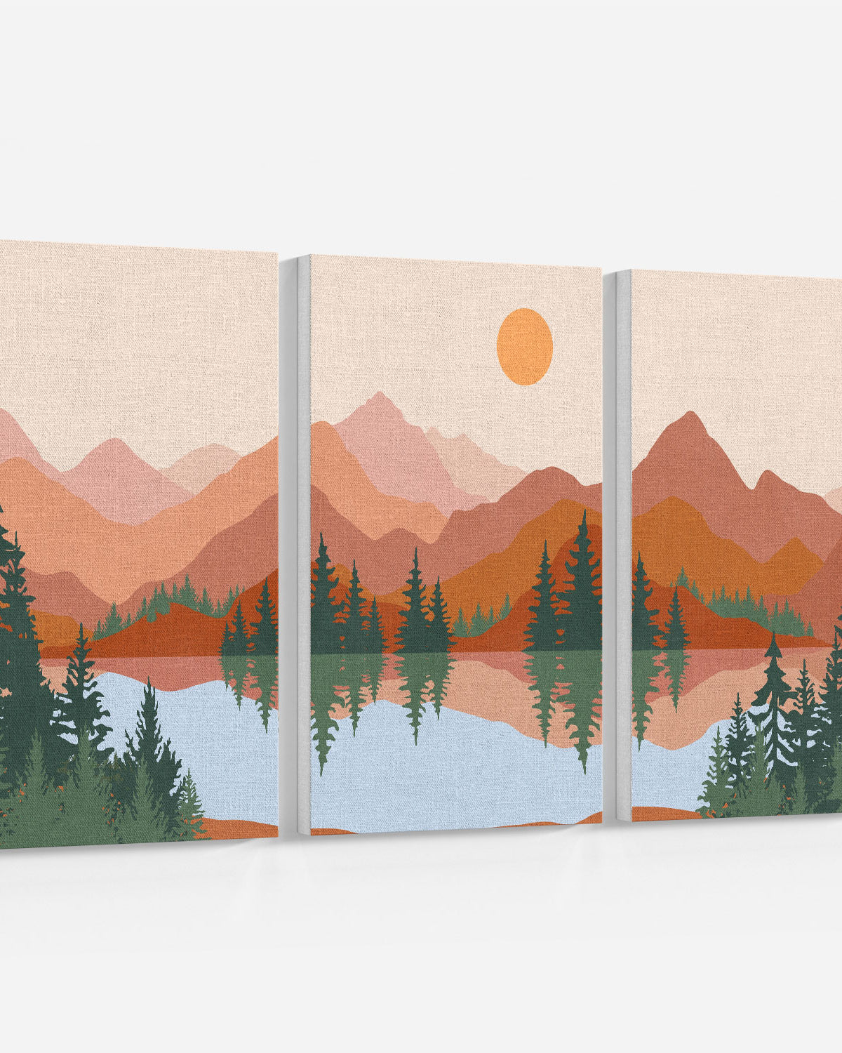Abstract Mountain Lake Trees Set of 3 Set Of Three Paintings